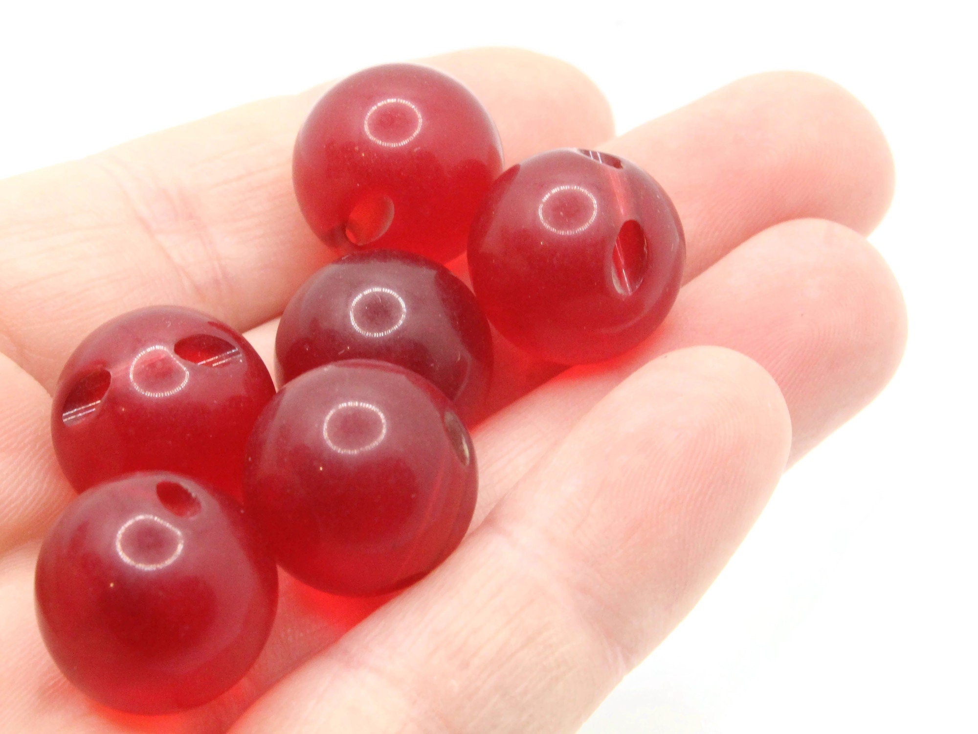 6 16mm 5/8 Inch Red Ball Buttons Vintage Lucite Buttons