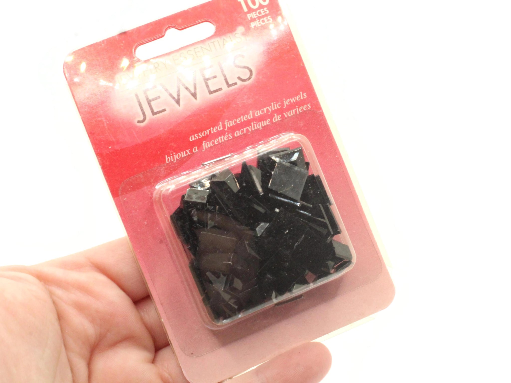 100 Pretty black cabochons put out by the company Jewelry Essentials in their Jewels line. The box says assorted, I see mostly square shaped jewels. These are Vintage acrylic cabochons, originally produced in the early 2000s.