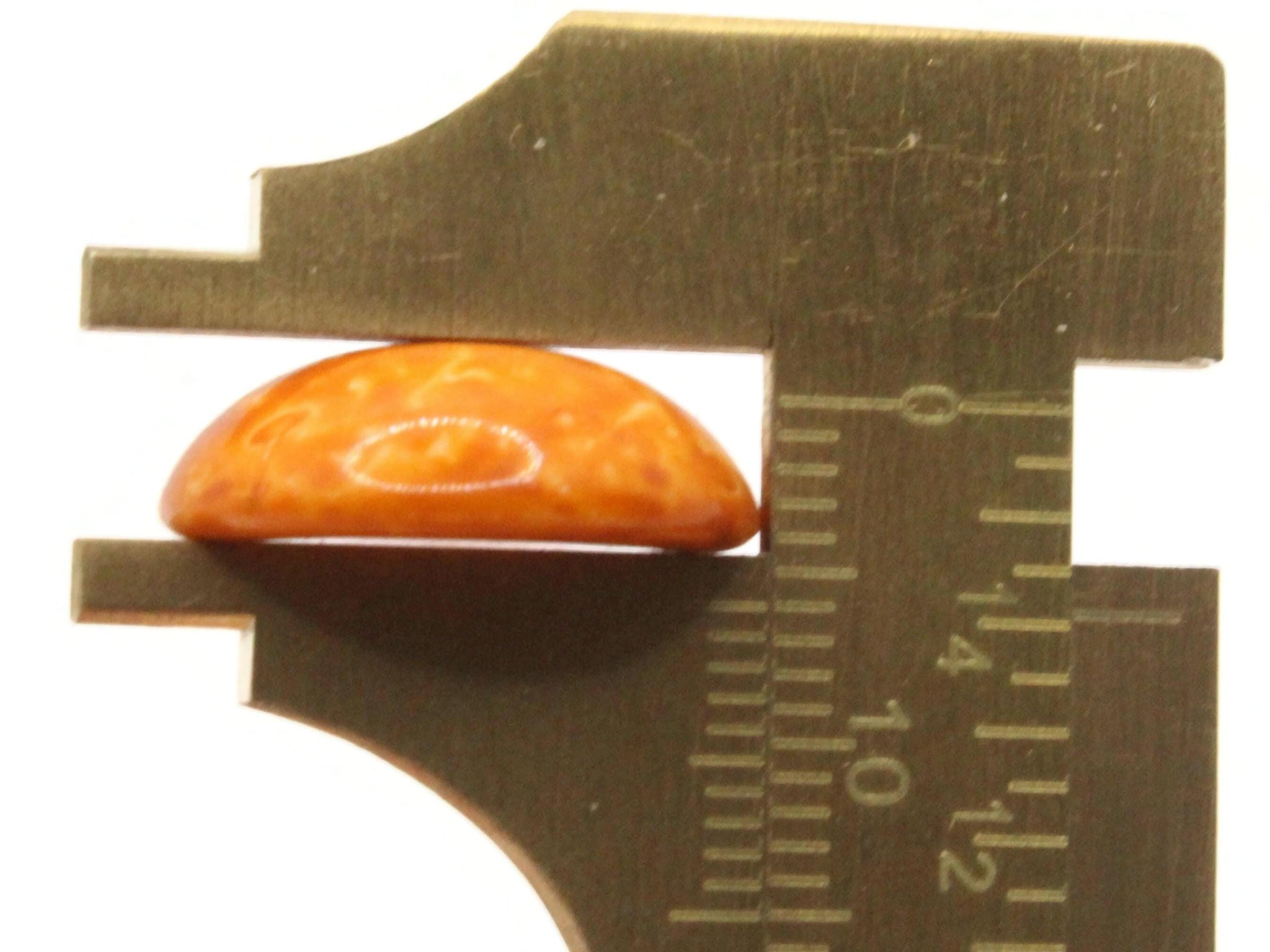 These cabochons are gorgeous. Really pretty Orange with some white and occasionally brown spots giving a stone appearance. These are made of lucite, so much lighter weight then stone would be. One does have an unusual mark as shown in pictures, so I debated removing it from the pack, but left it in case it can be loved and used by some crafty maker. The pack is priced as 10 cabochons, that one is a bonus.