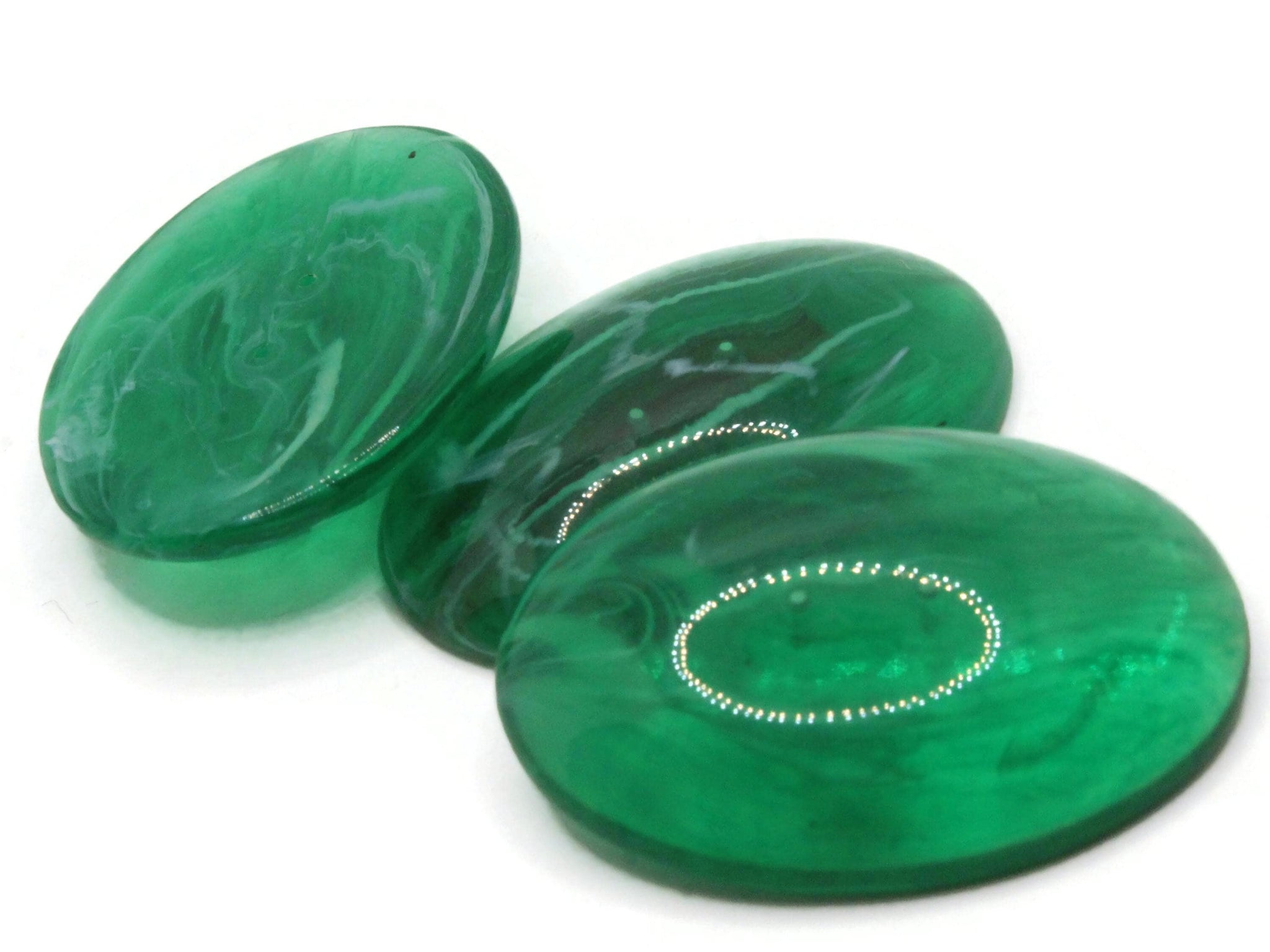 3 40mm x 30mm Swirling Green FlatbackOval Vintage Lucite Cabochons