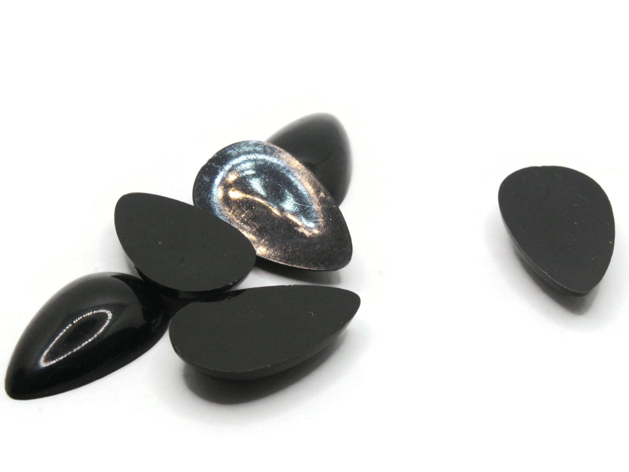 Lovely black flat back cabochons. Large teardrop, very pretty color.