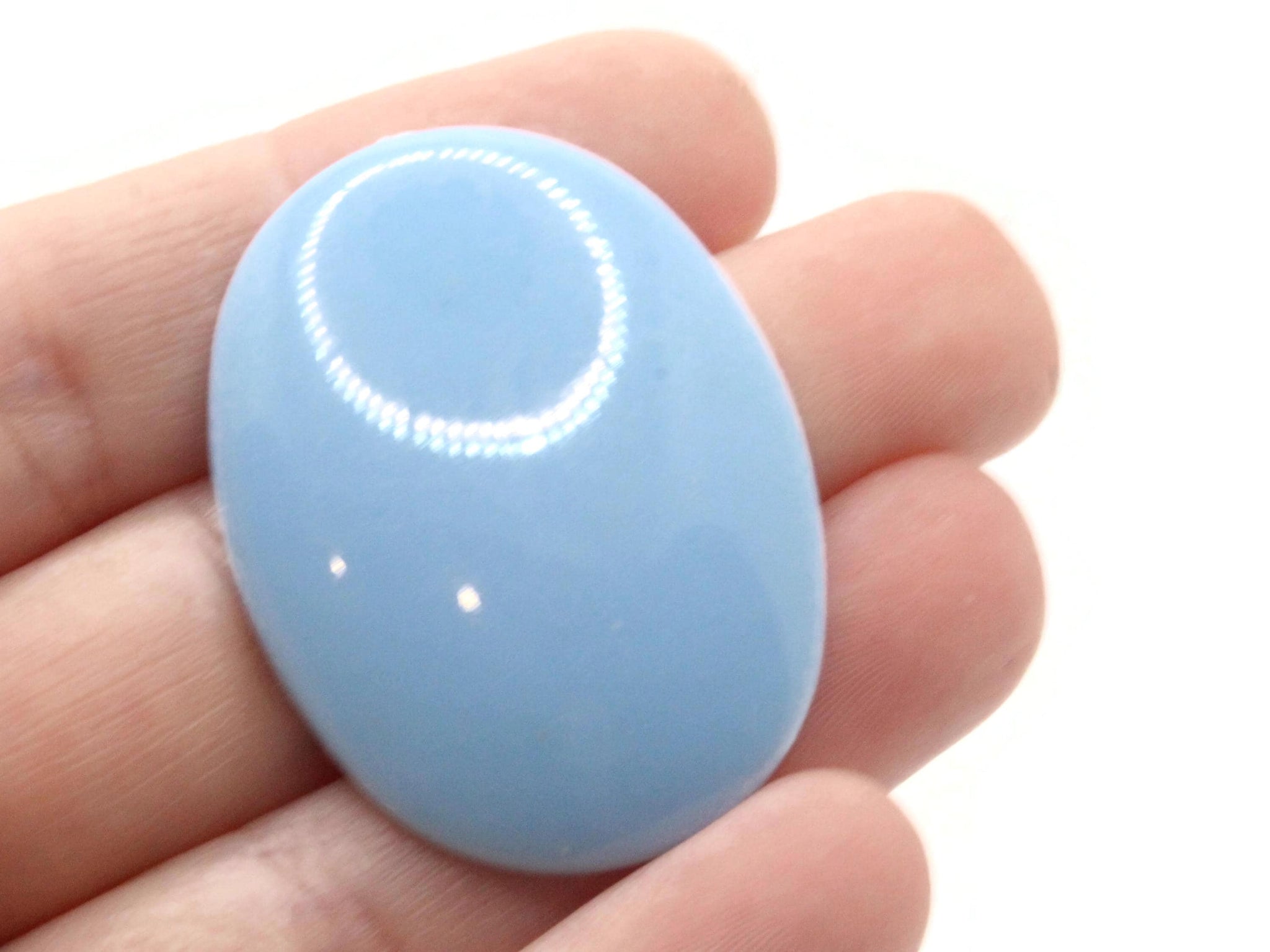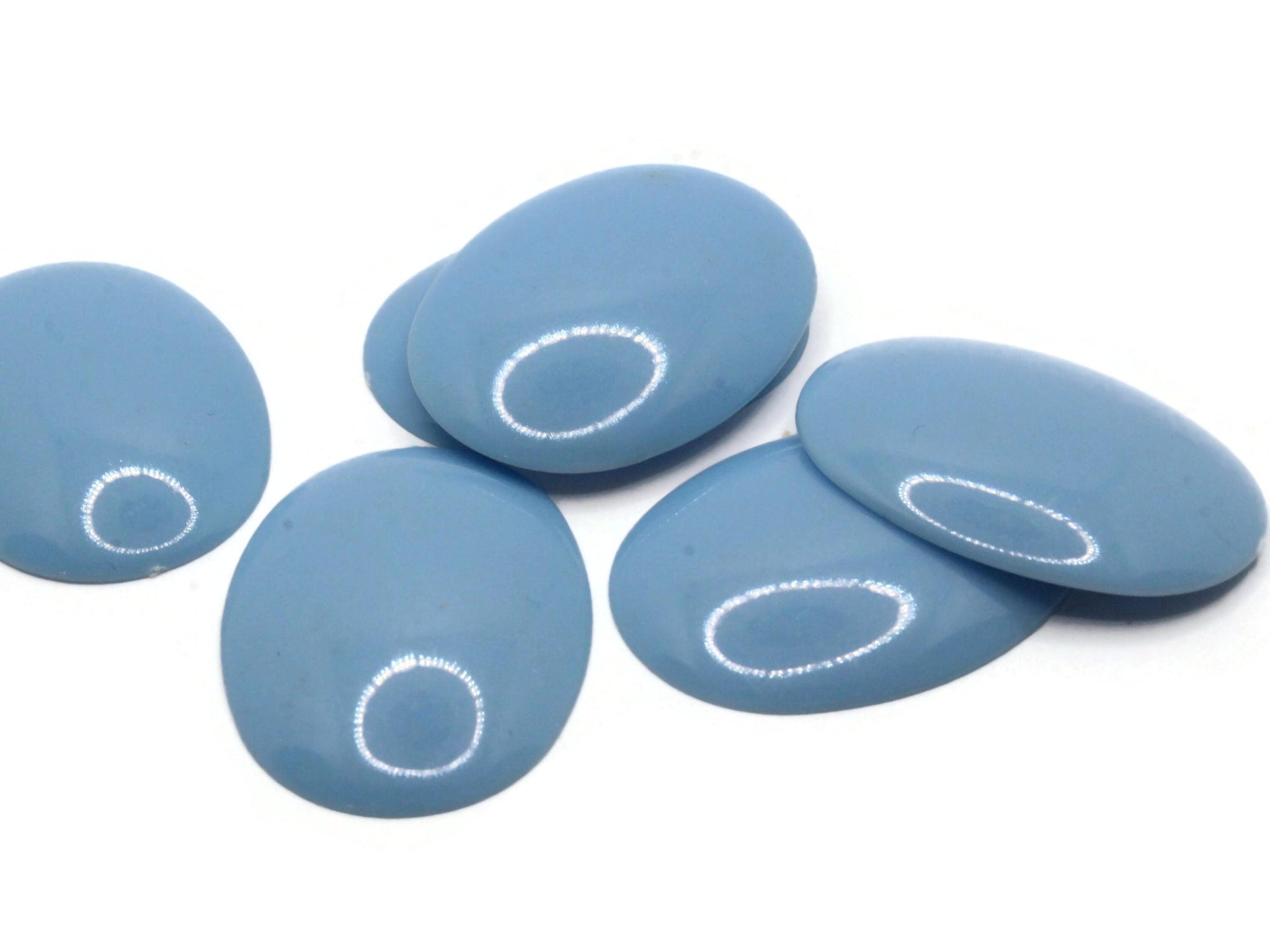6 40mm x 30mm Sky Blue Swirling Oval Vintage Lucite Plastic Flat Back Cabochons