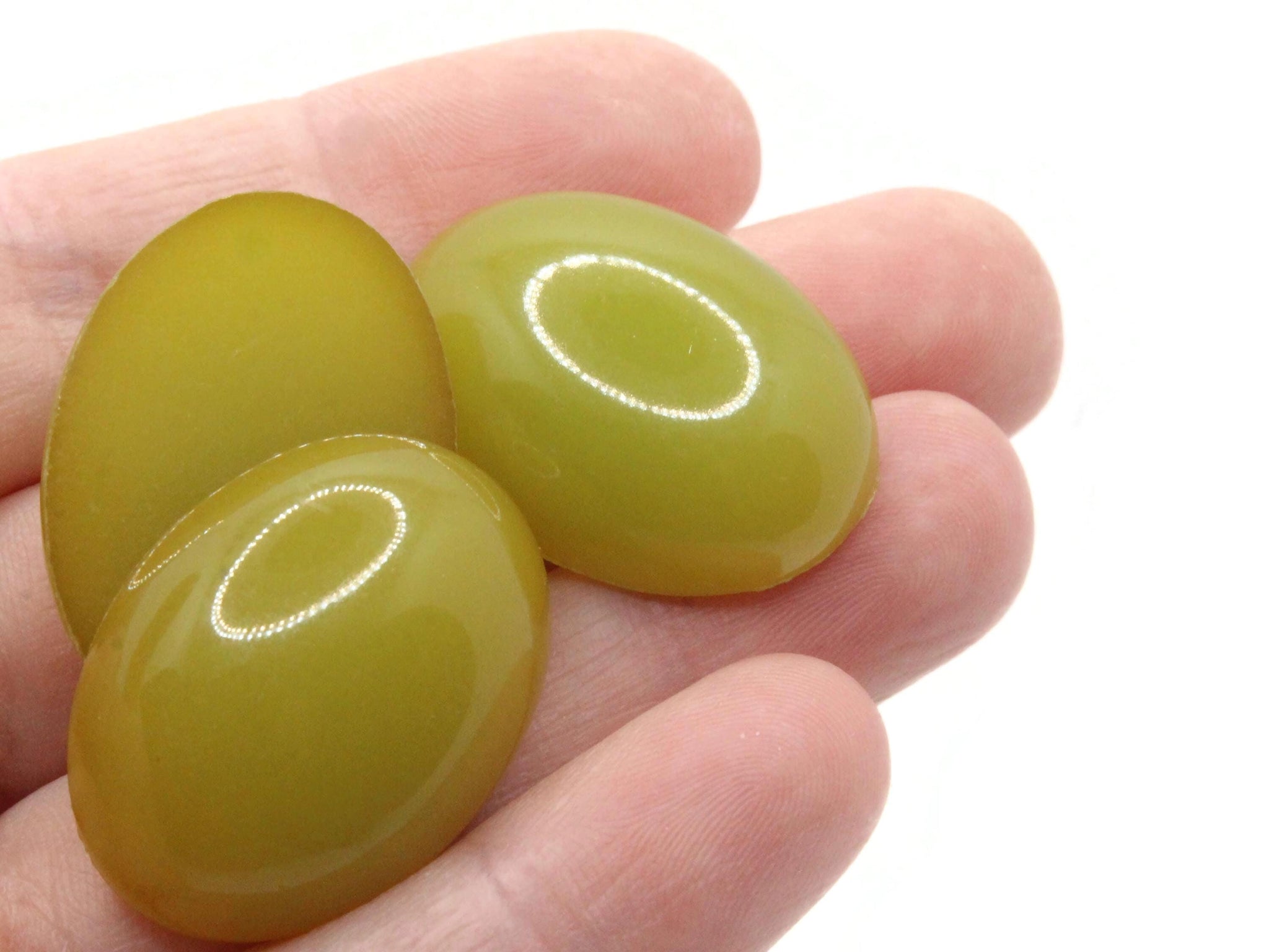 7 28mm Yellow Vintage Lucite Oval Flatback Cabochons
