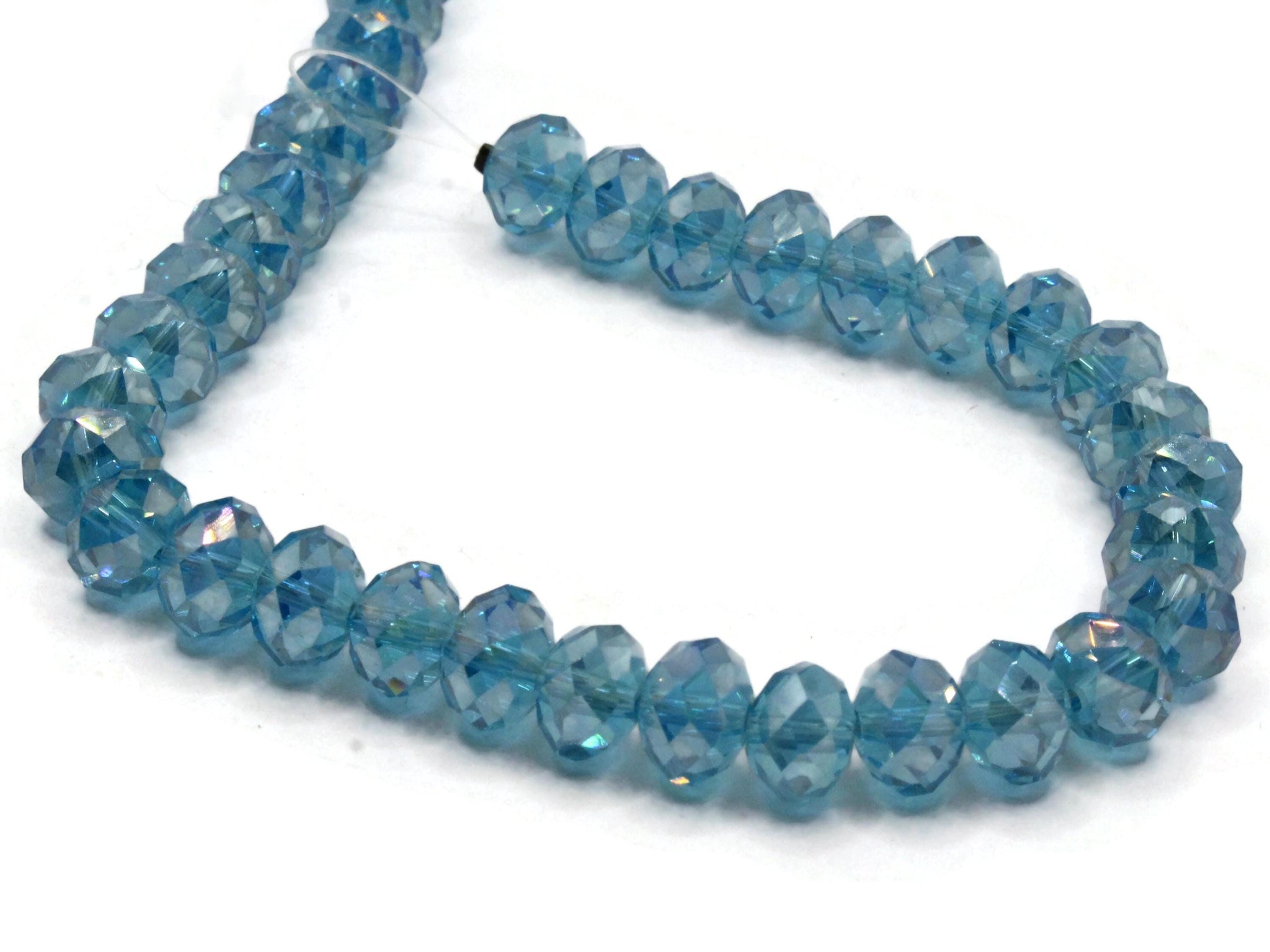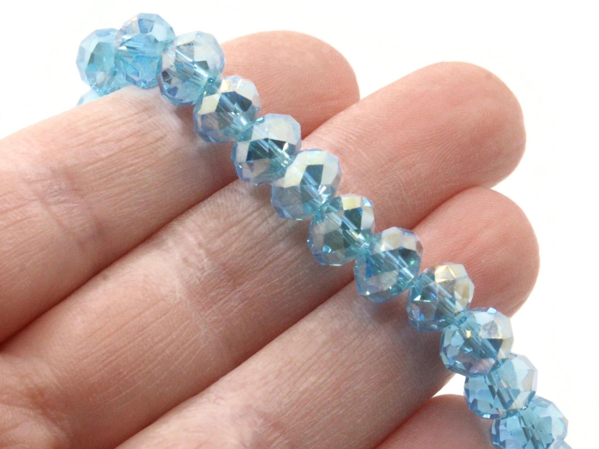 33 10mm x 8mm Sky Blue Faceted Rondelle Glass Beads
