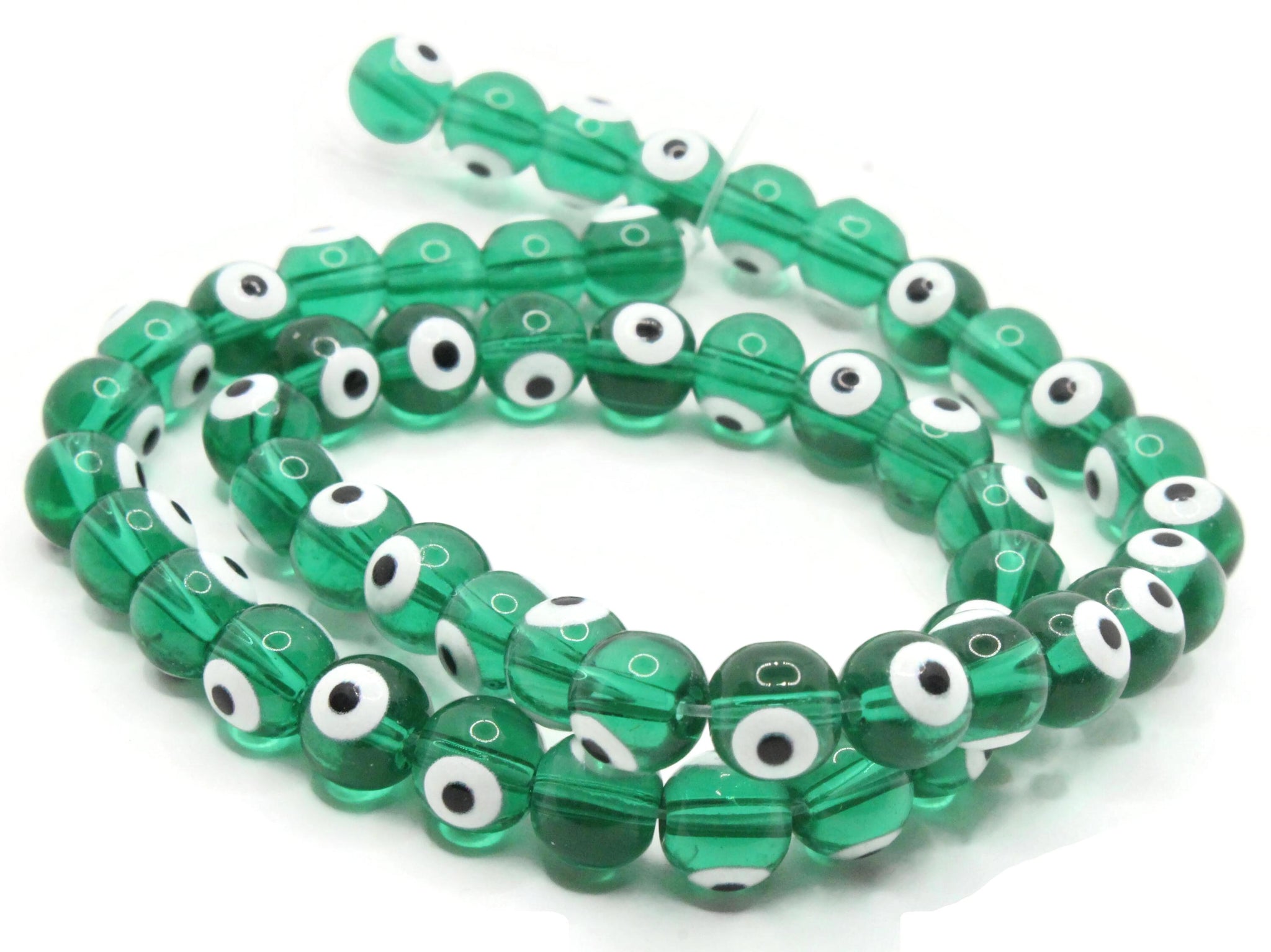 49 8mm Green Evil Eye Small Smooth Round Glass Beads