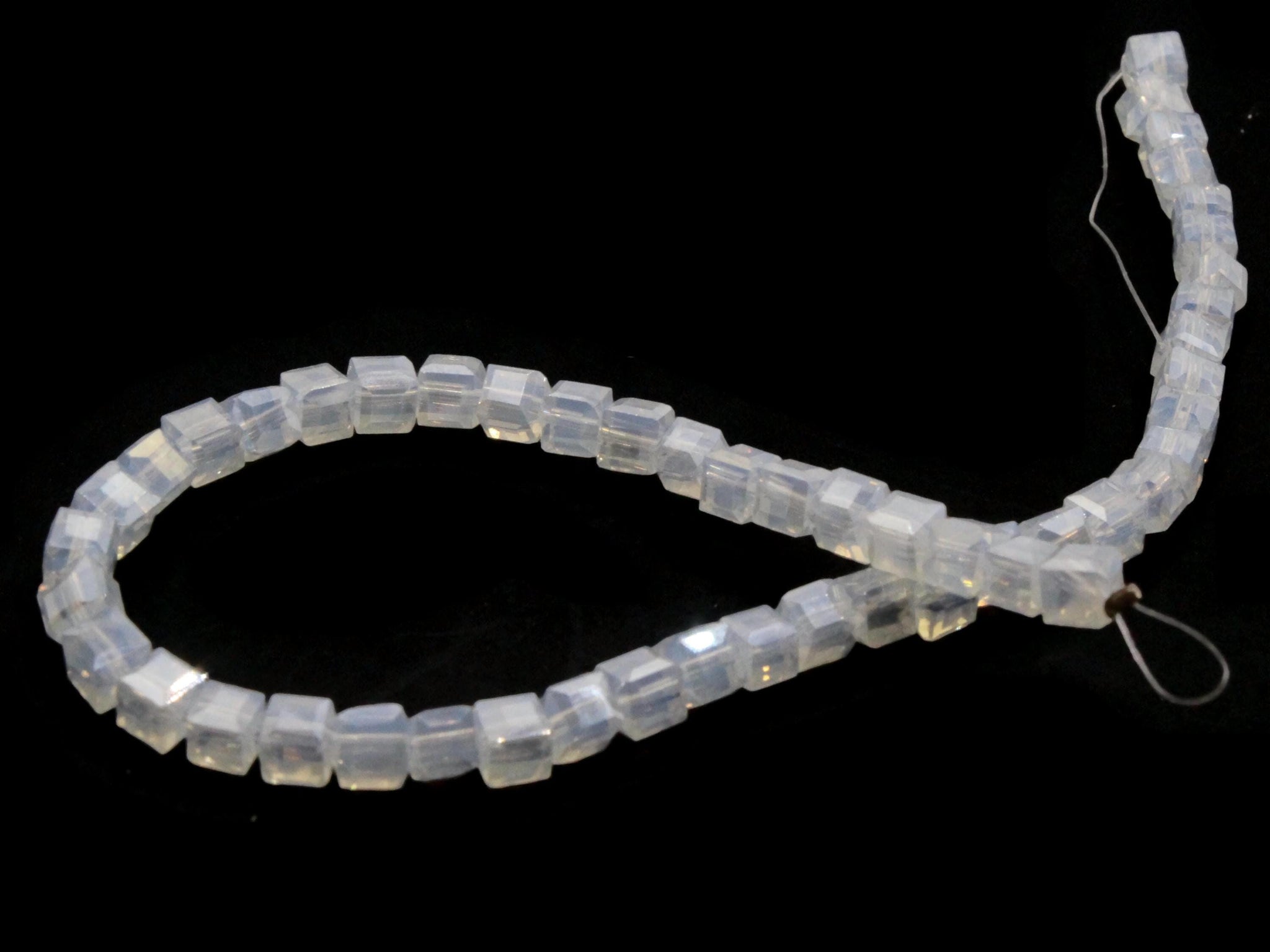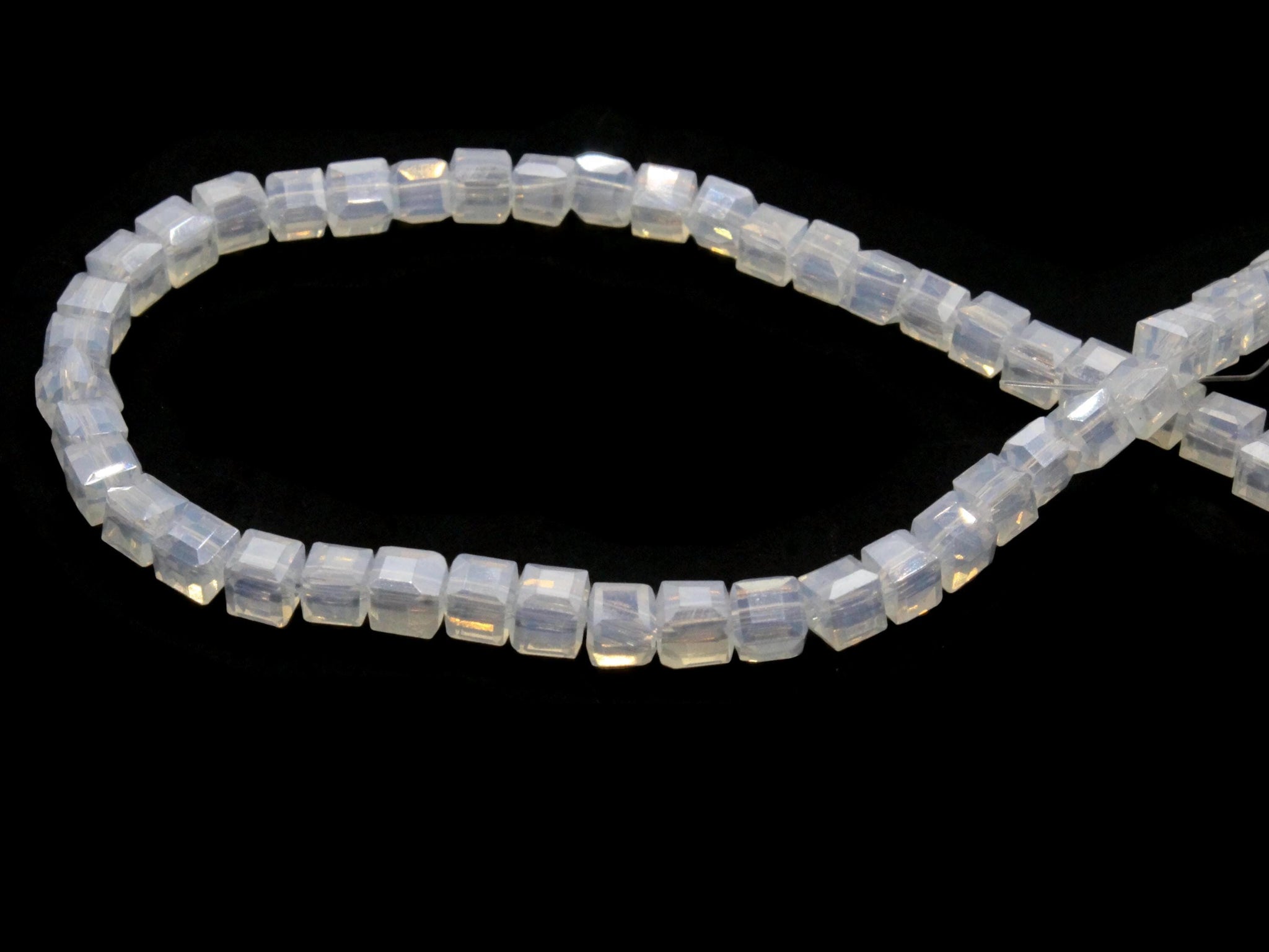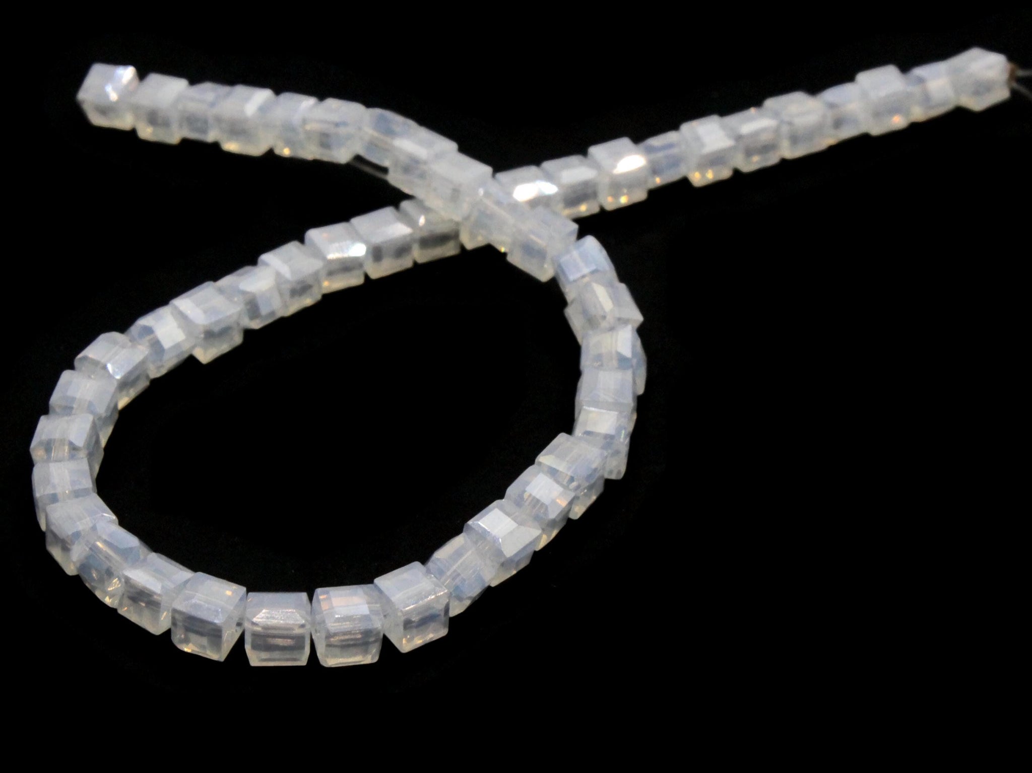 50 4mm Transluscent White Clear Cube Crystal Glass Beads