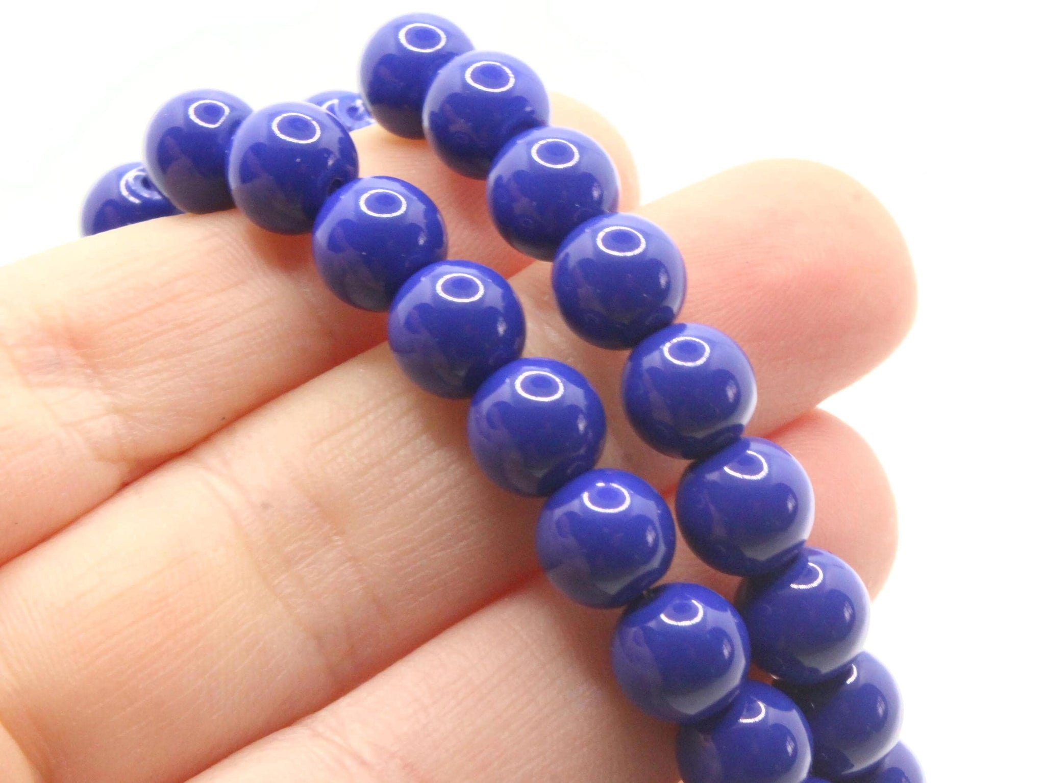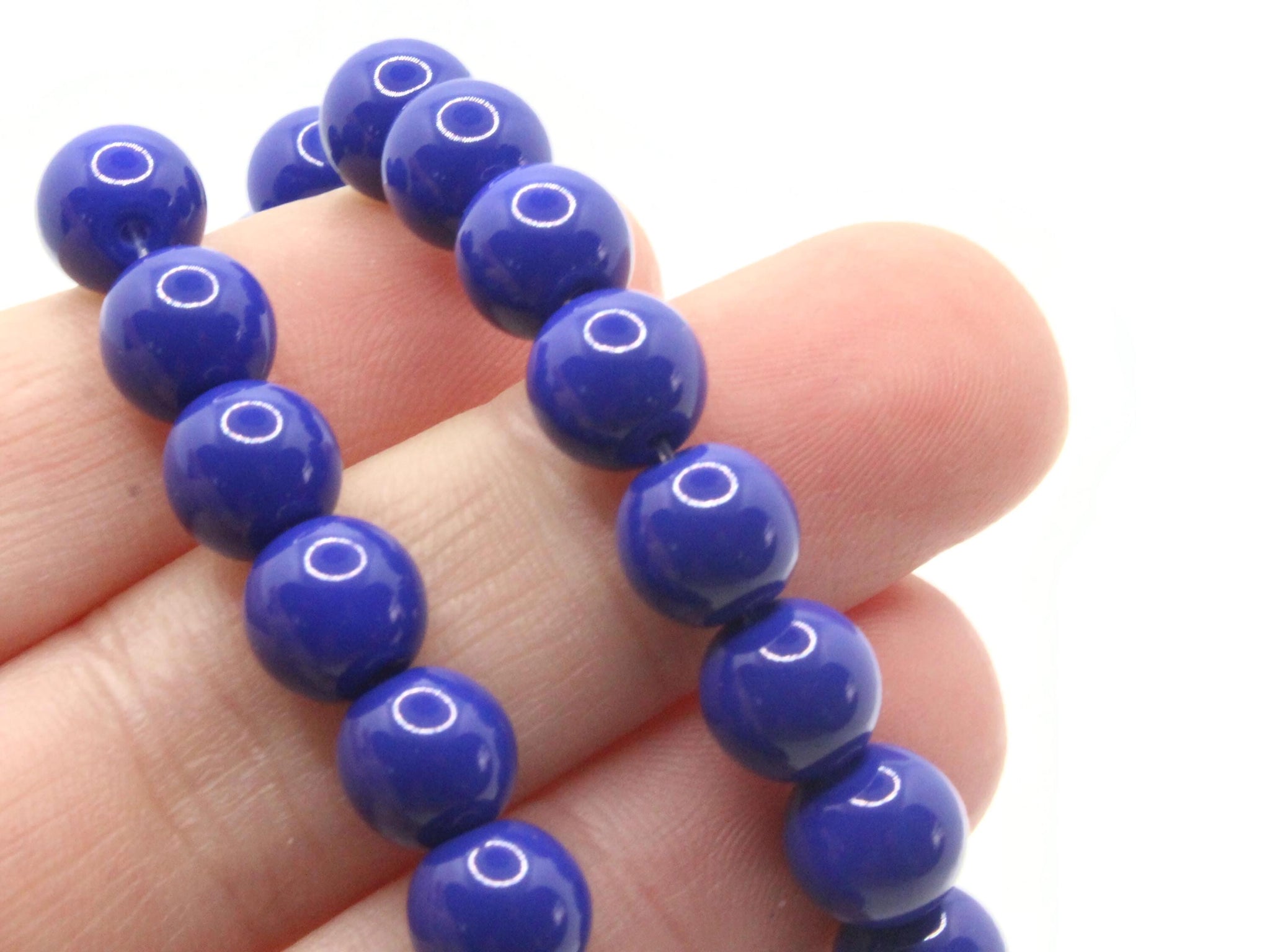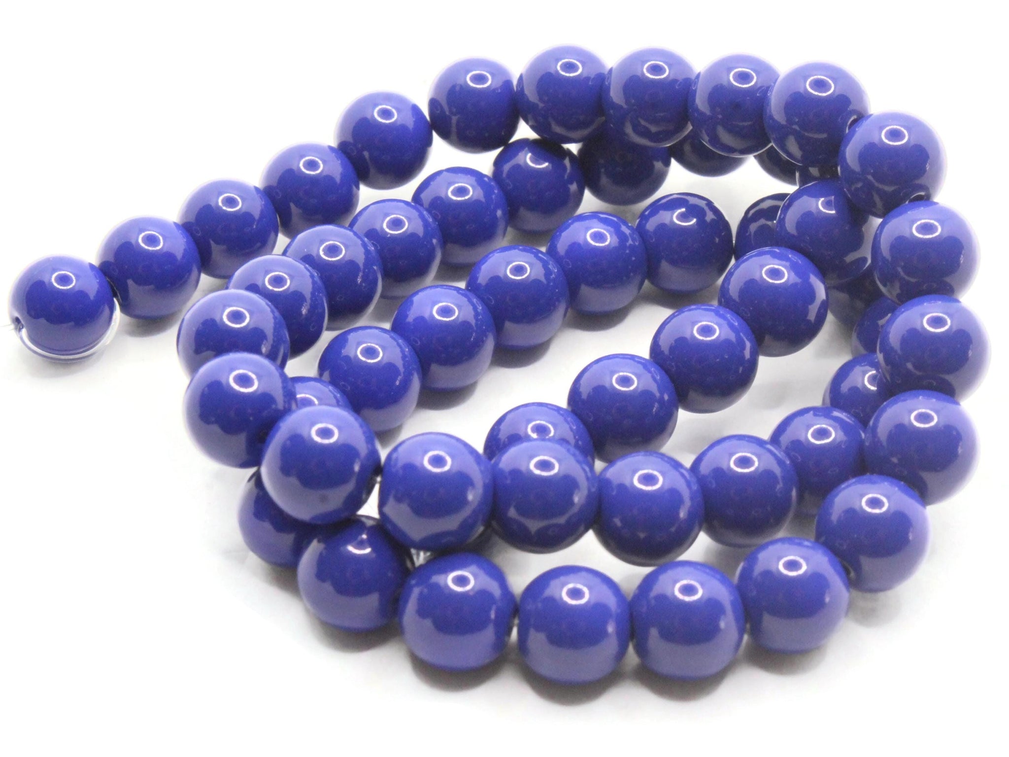 50 8mm Opaque Blue Smooth Round Glass Beads