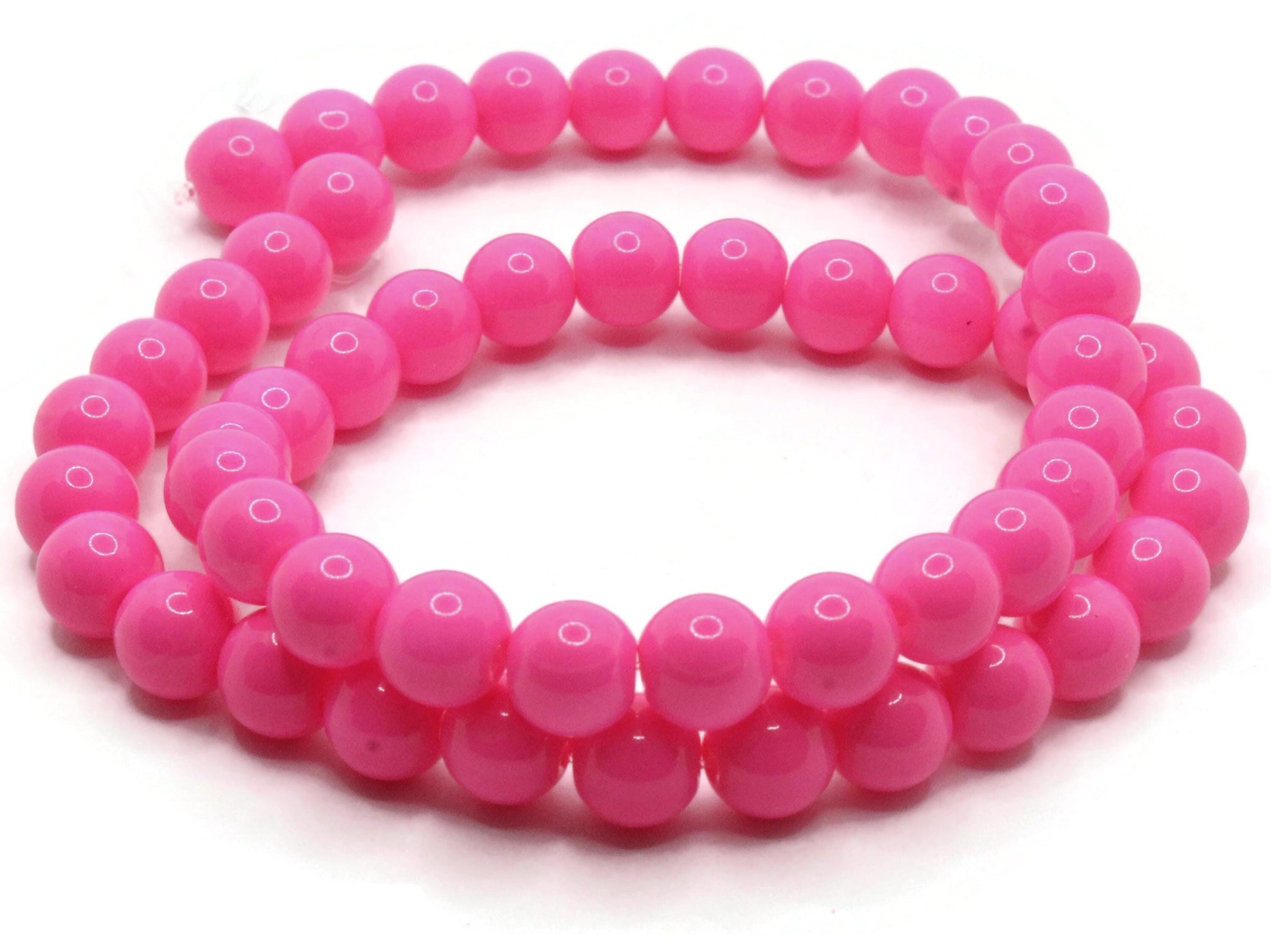 50 8mm Opaque Hot Pink Smooth Round Glass Beads