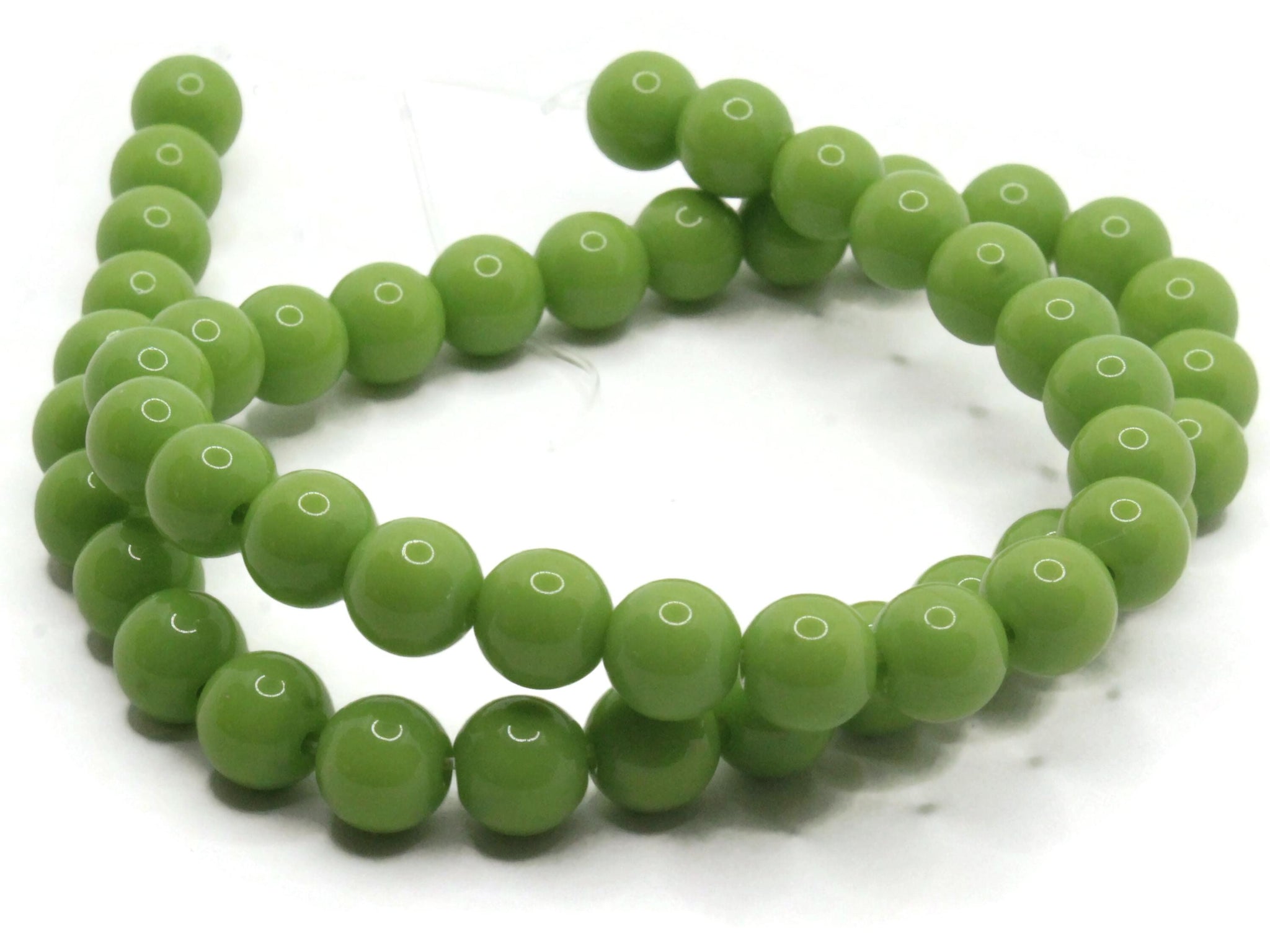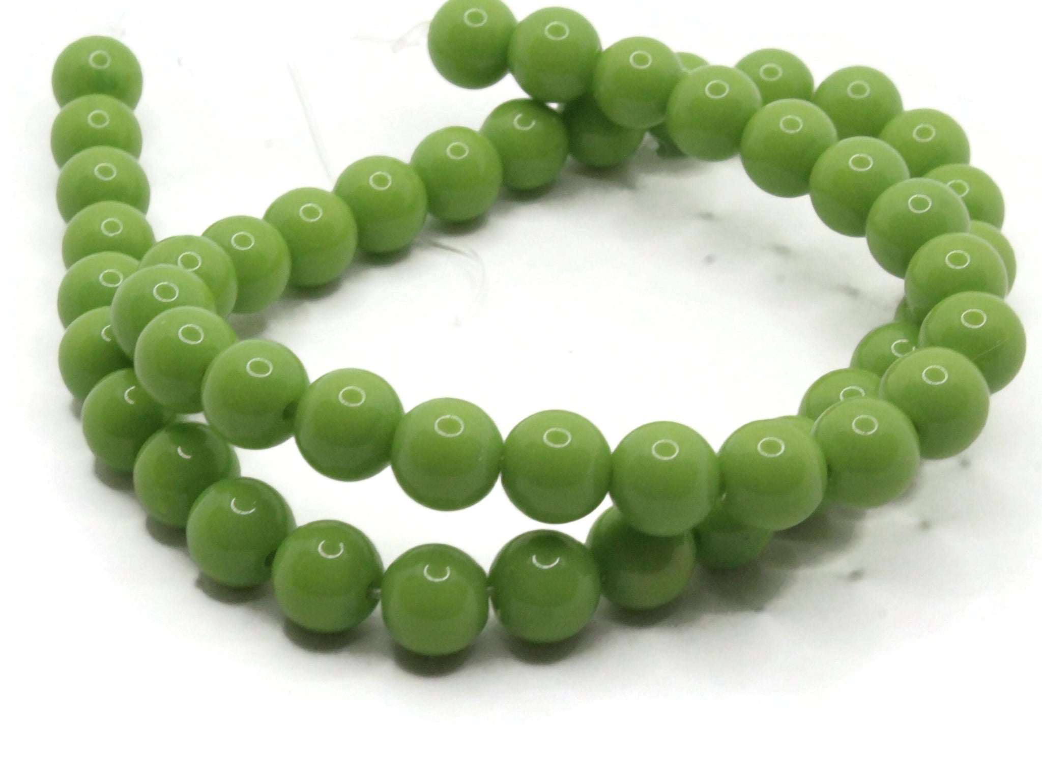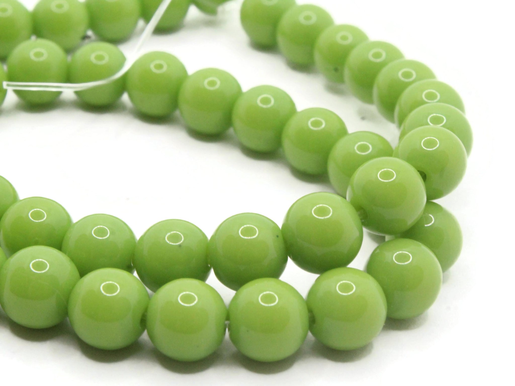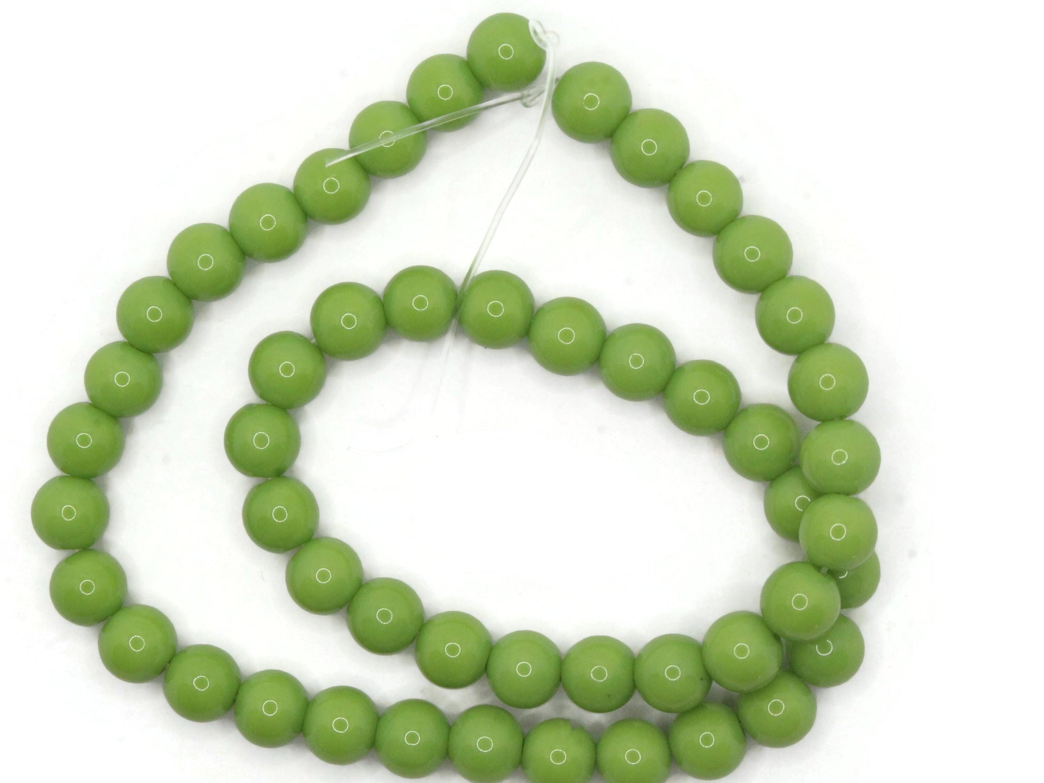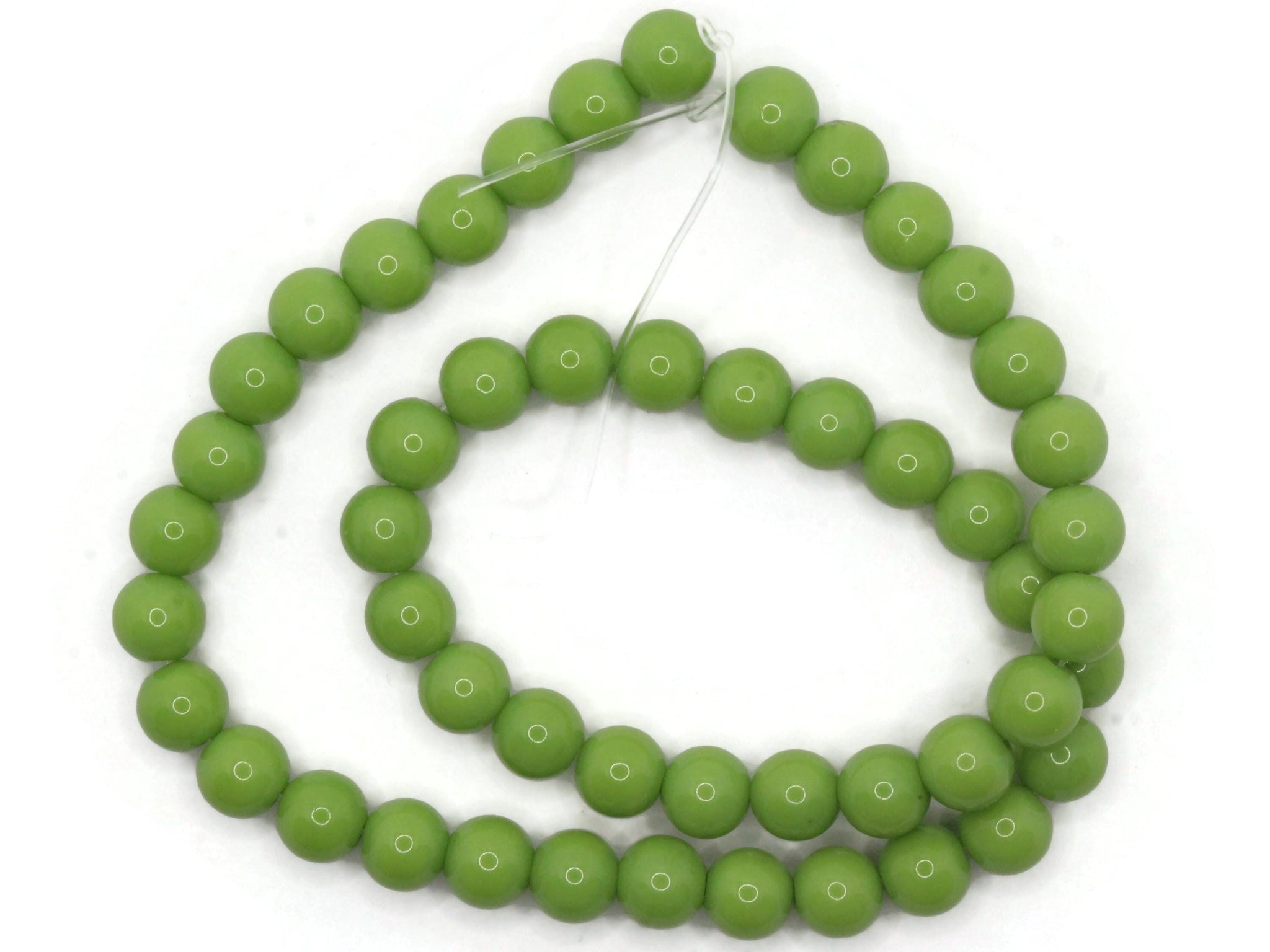 50 8mm Opaque Light Green Smooth Round Glass Beads