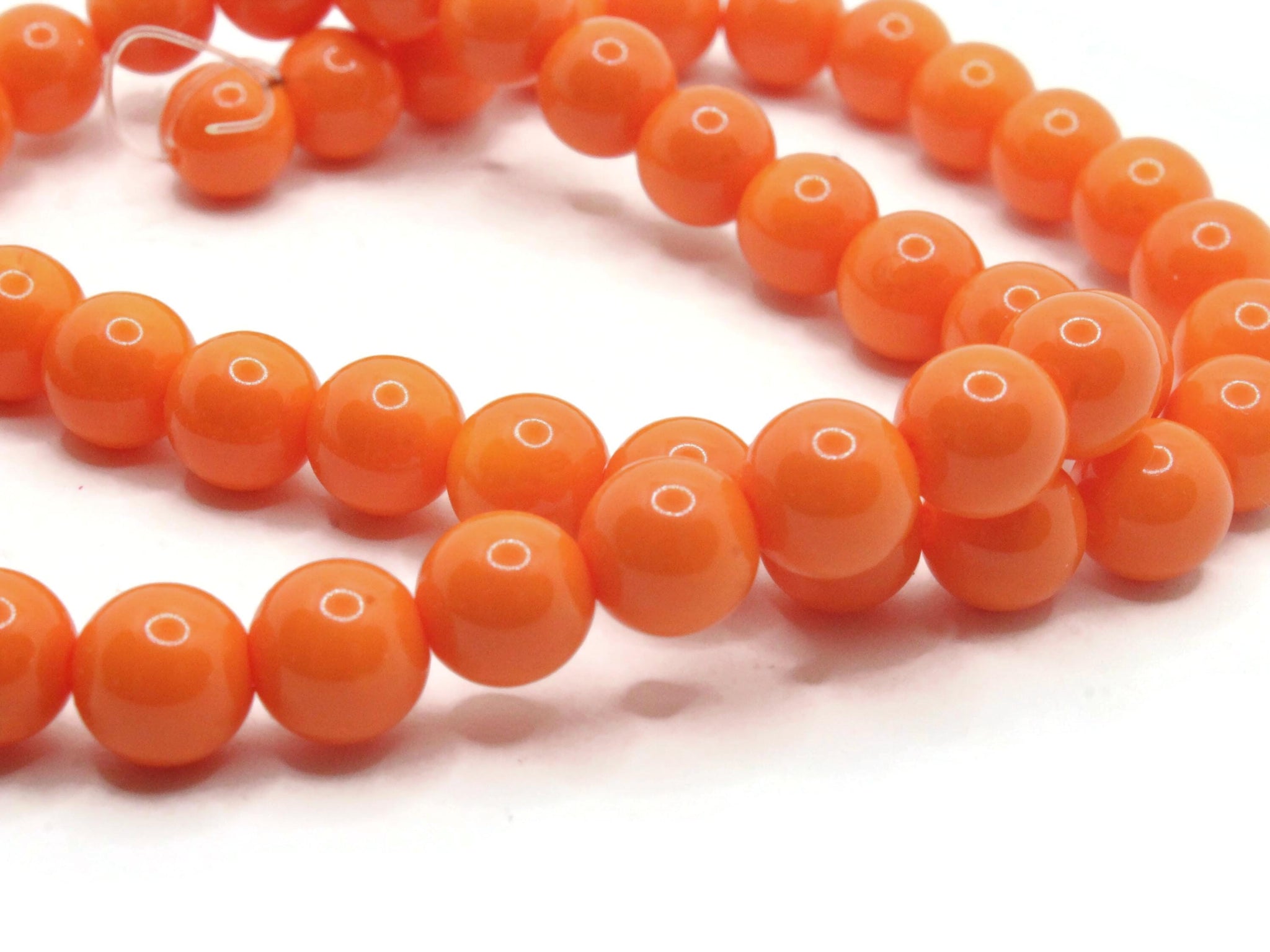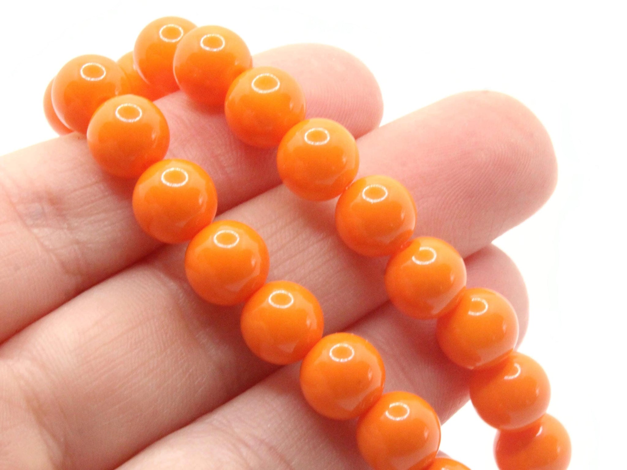 50 8mm Opaque Orange Smooth Round Glass Beads