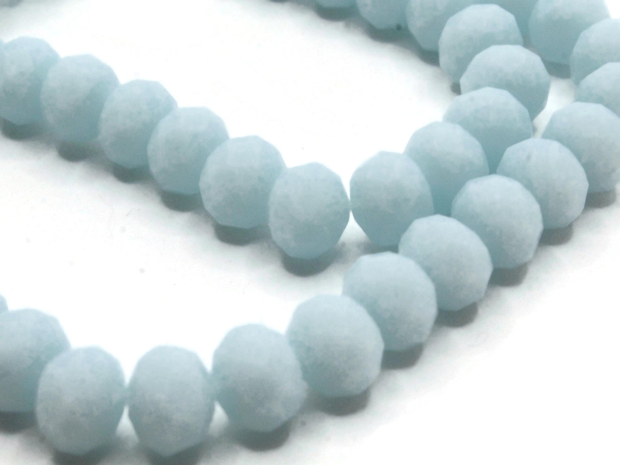 64 8mm x 6mm Opaque Blue Faceted Glass Rondelle Beads