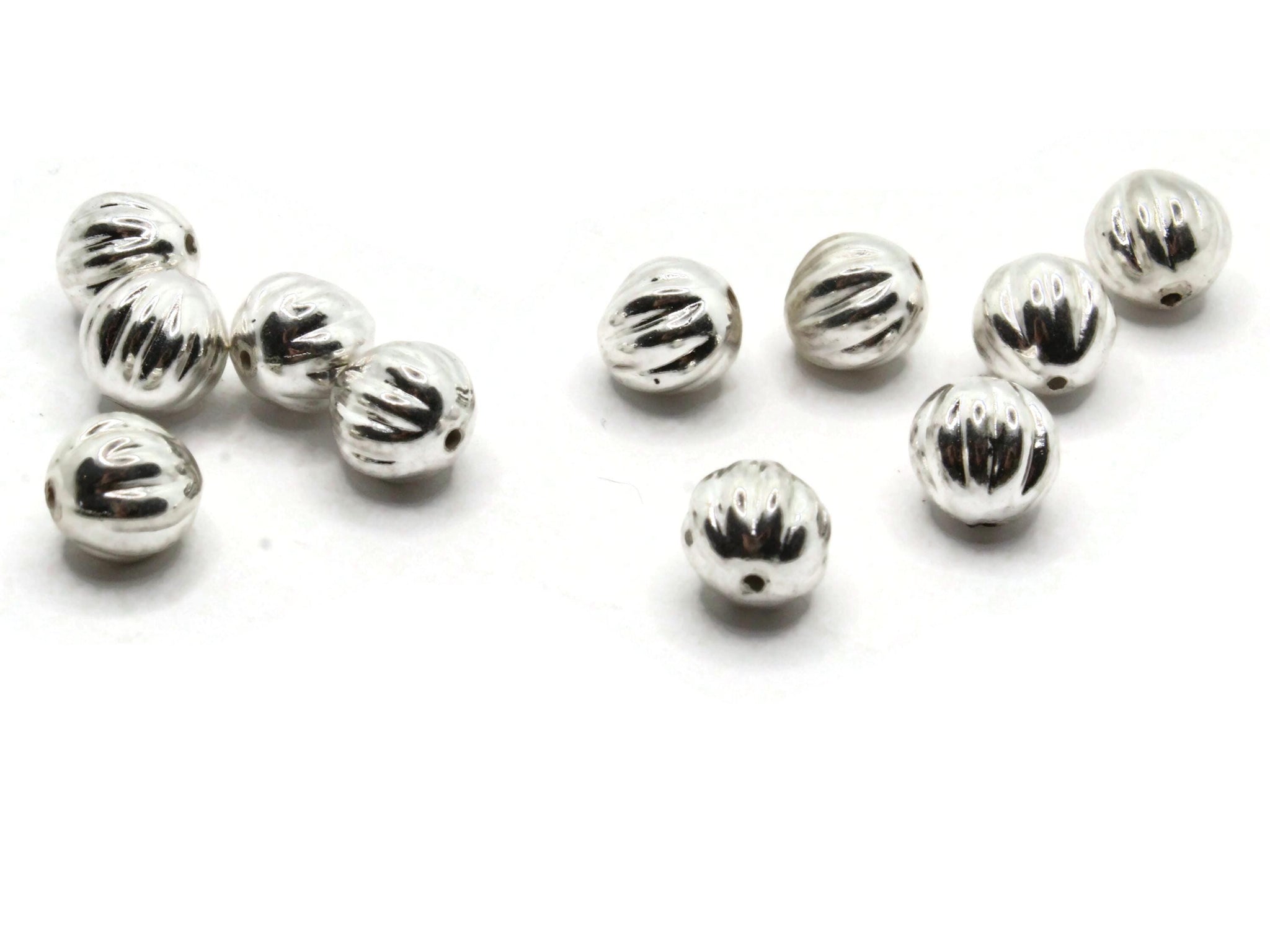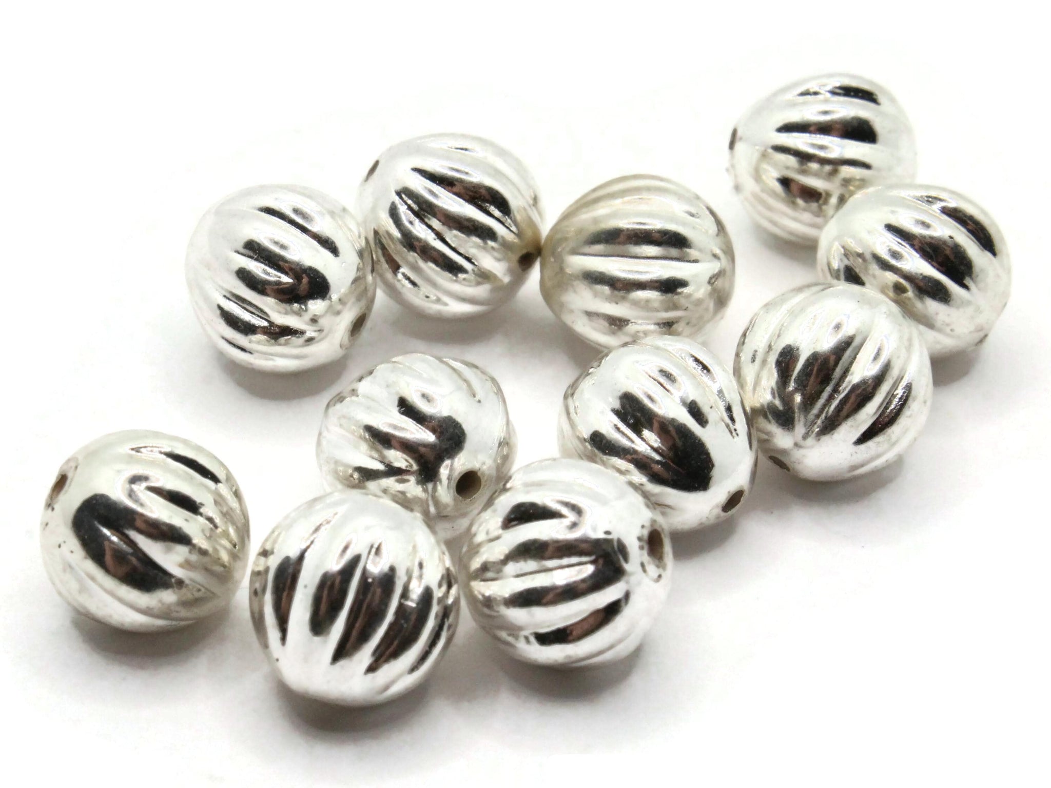 11 10mm Fluted Round Vintage Silver-Plated Plastic Beads