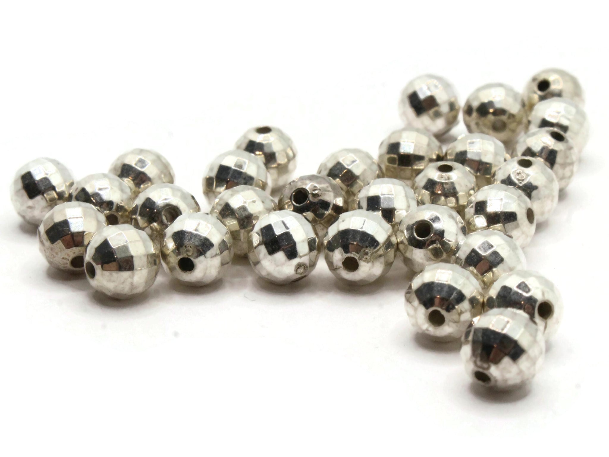 30 8mm Faceted Round Vintage Silver Plated Plastic Beads