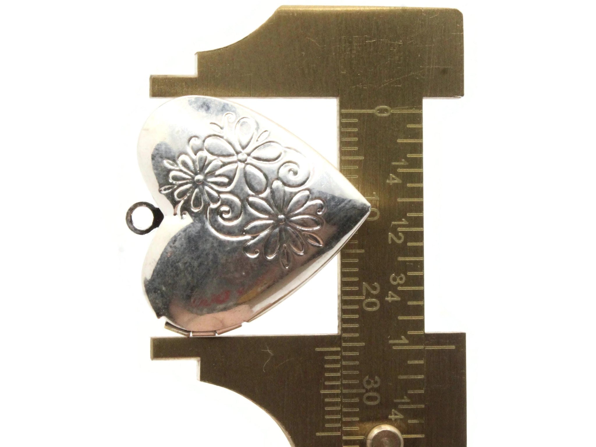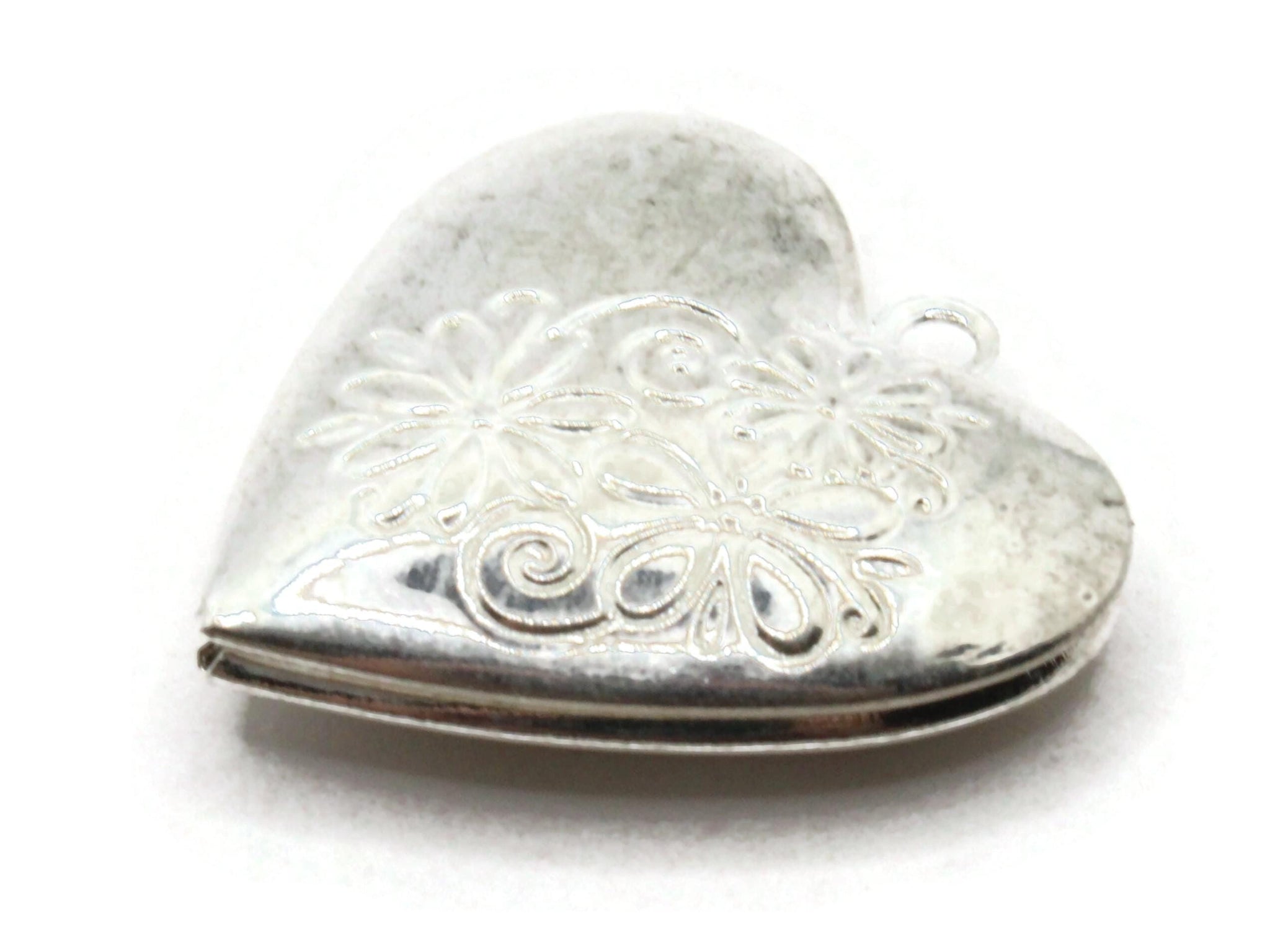26mm Heart with Daisy Flowers Silver Tone Brass Locket Charm