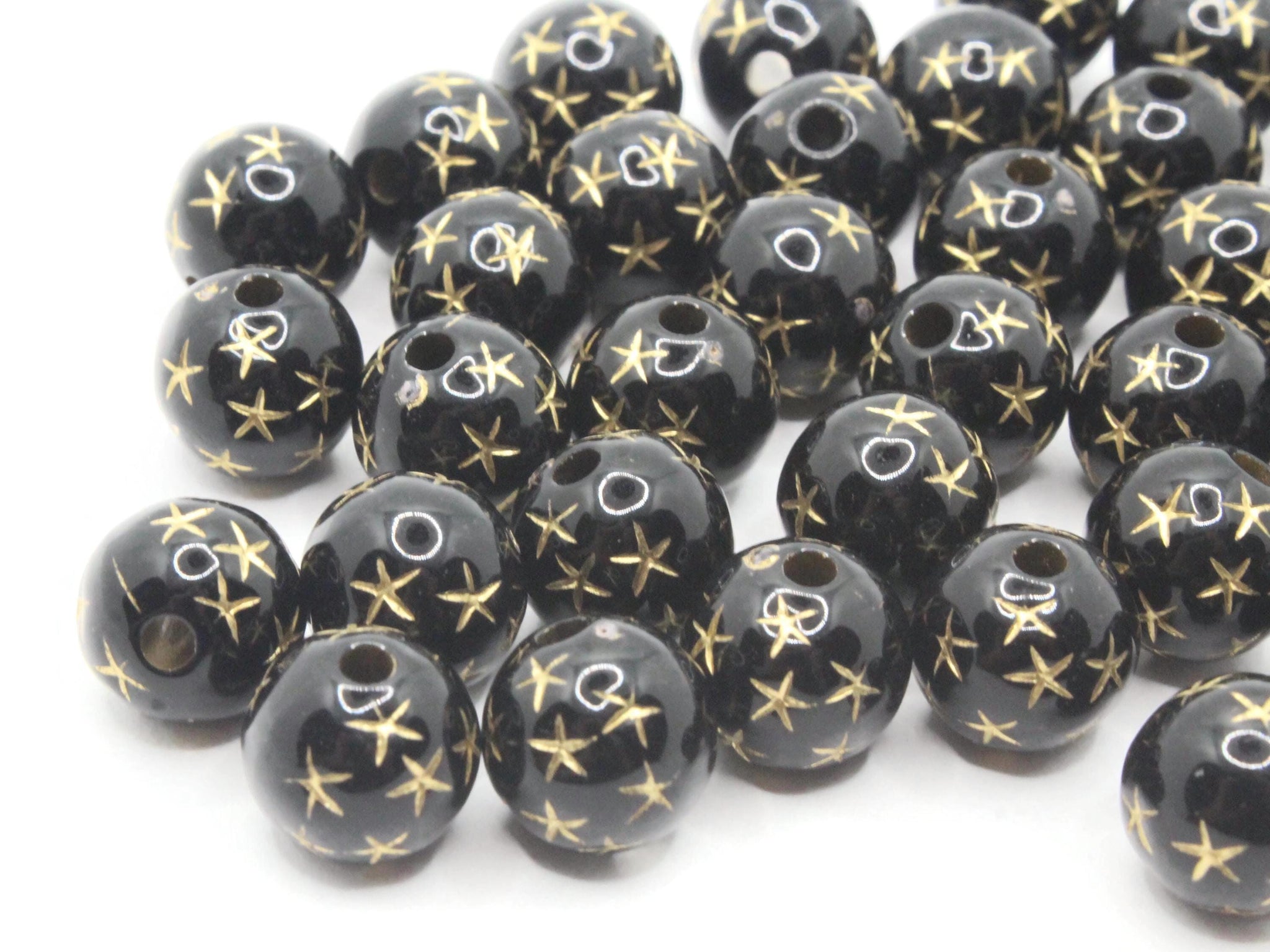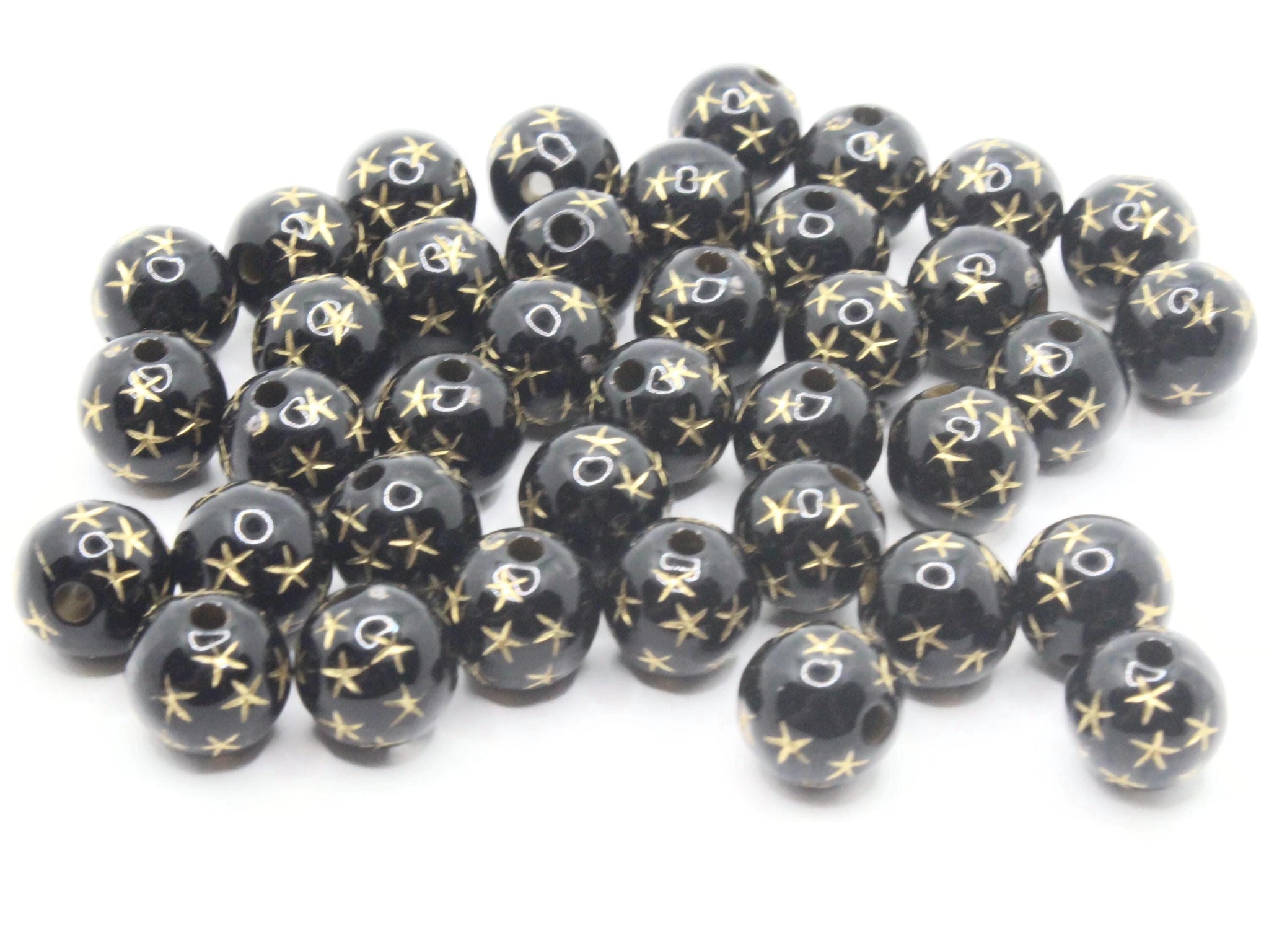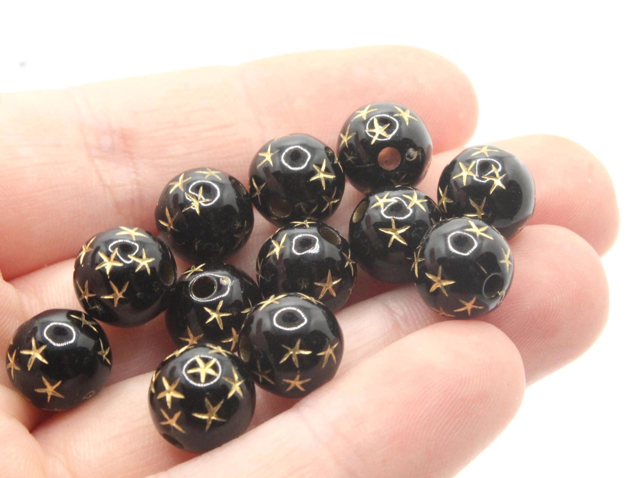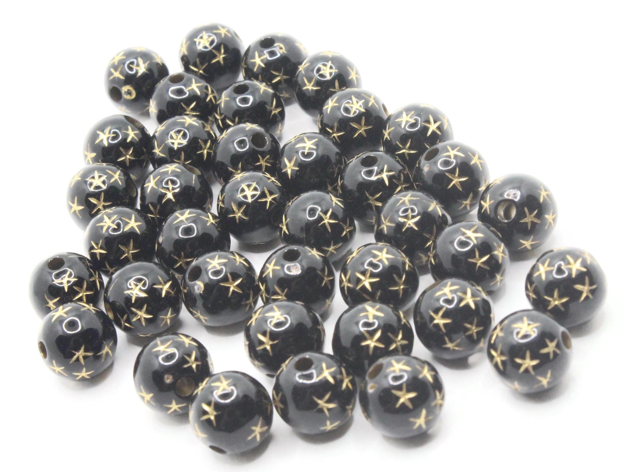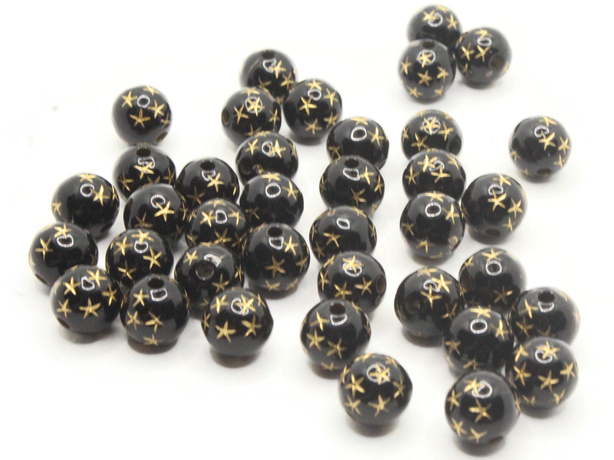 These lovely beads have a star design on each side embossed with golden metal detailing.