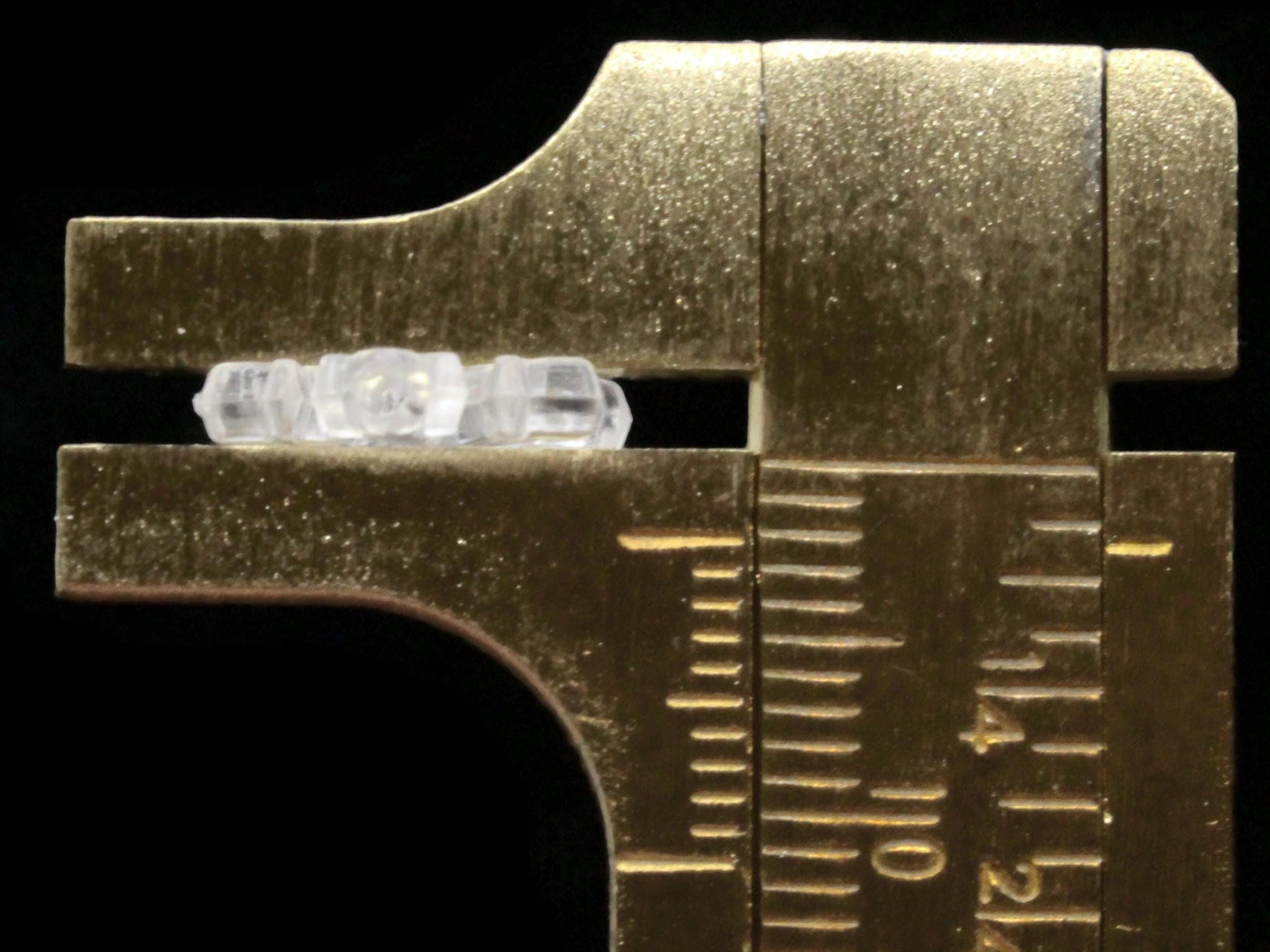 About 13mm Across from point to point, 12mm Across from side to side, 2.5mm thick, 1.2mm hole size