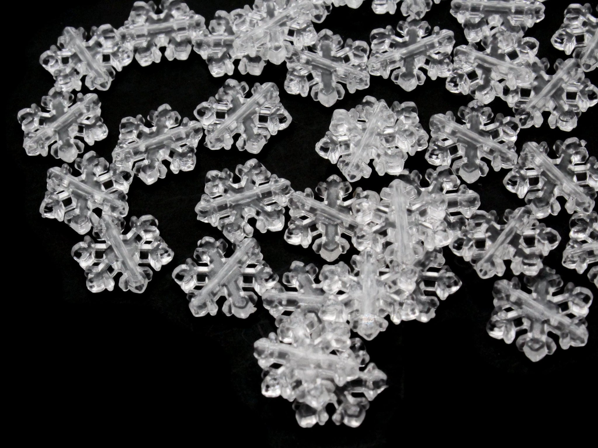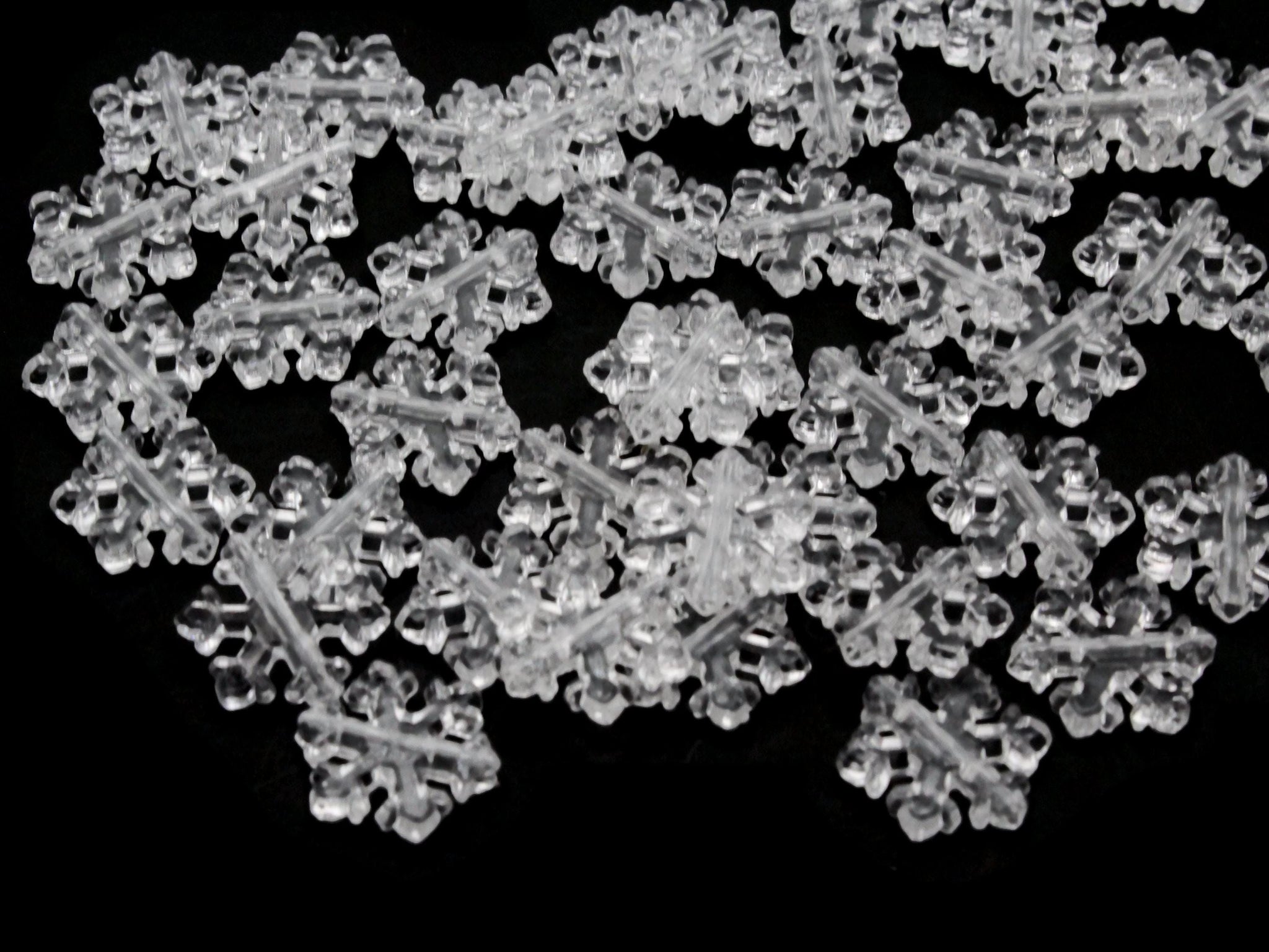 50 13mm Clear Flat Snowflakes Plastic Beads Snow Beads