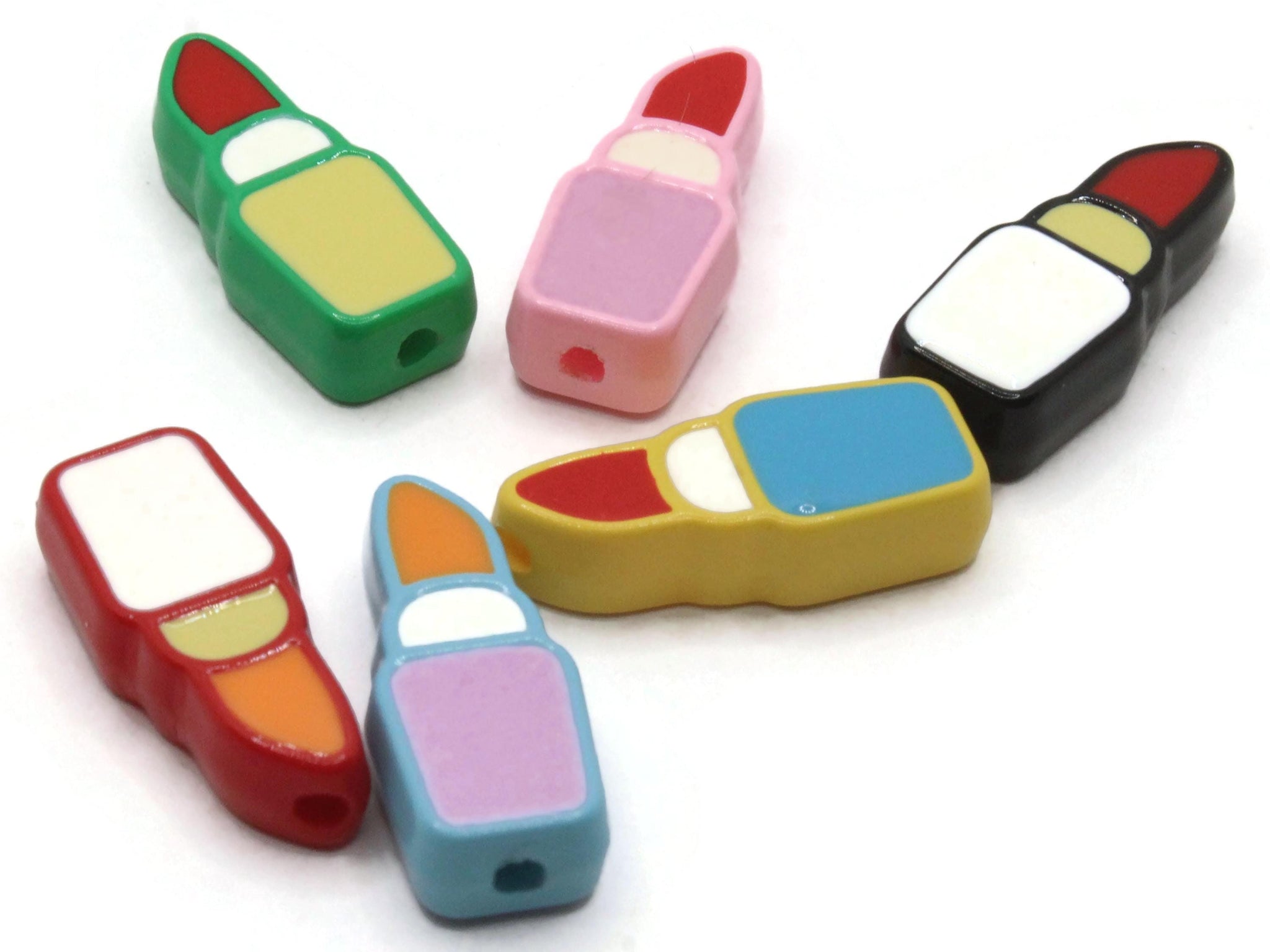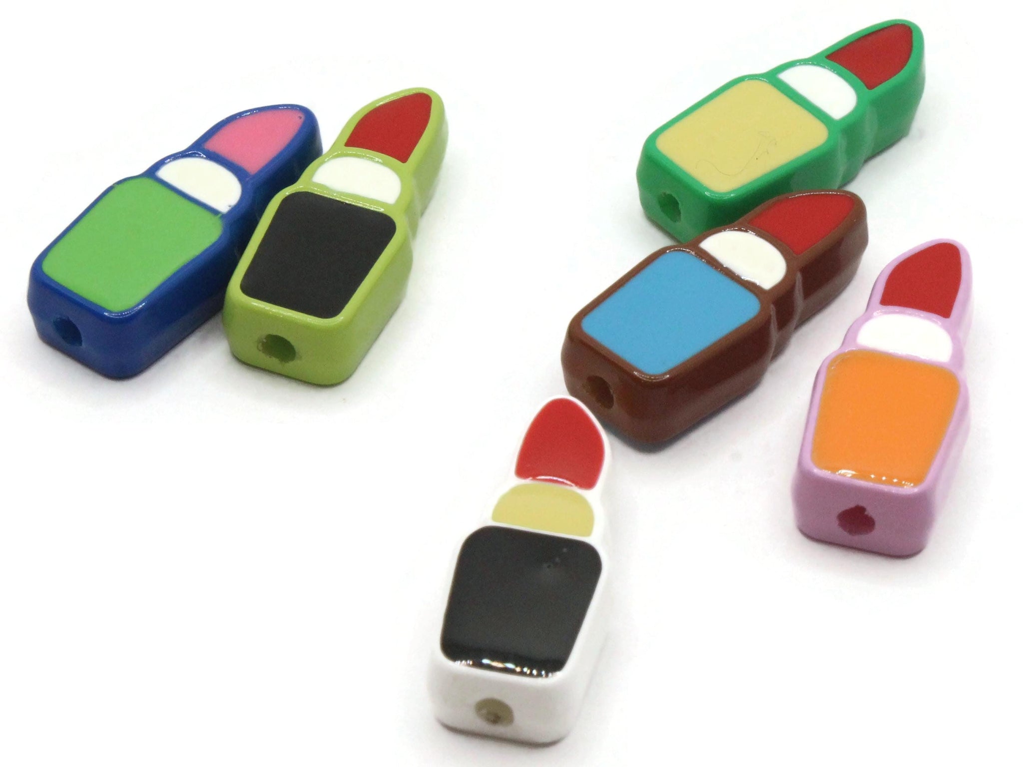6 24mm Multi-Color Lipstick Mixed Color Pack Enamel on Plastic Beads