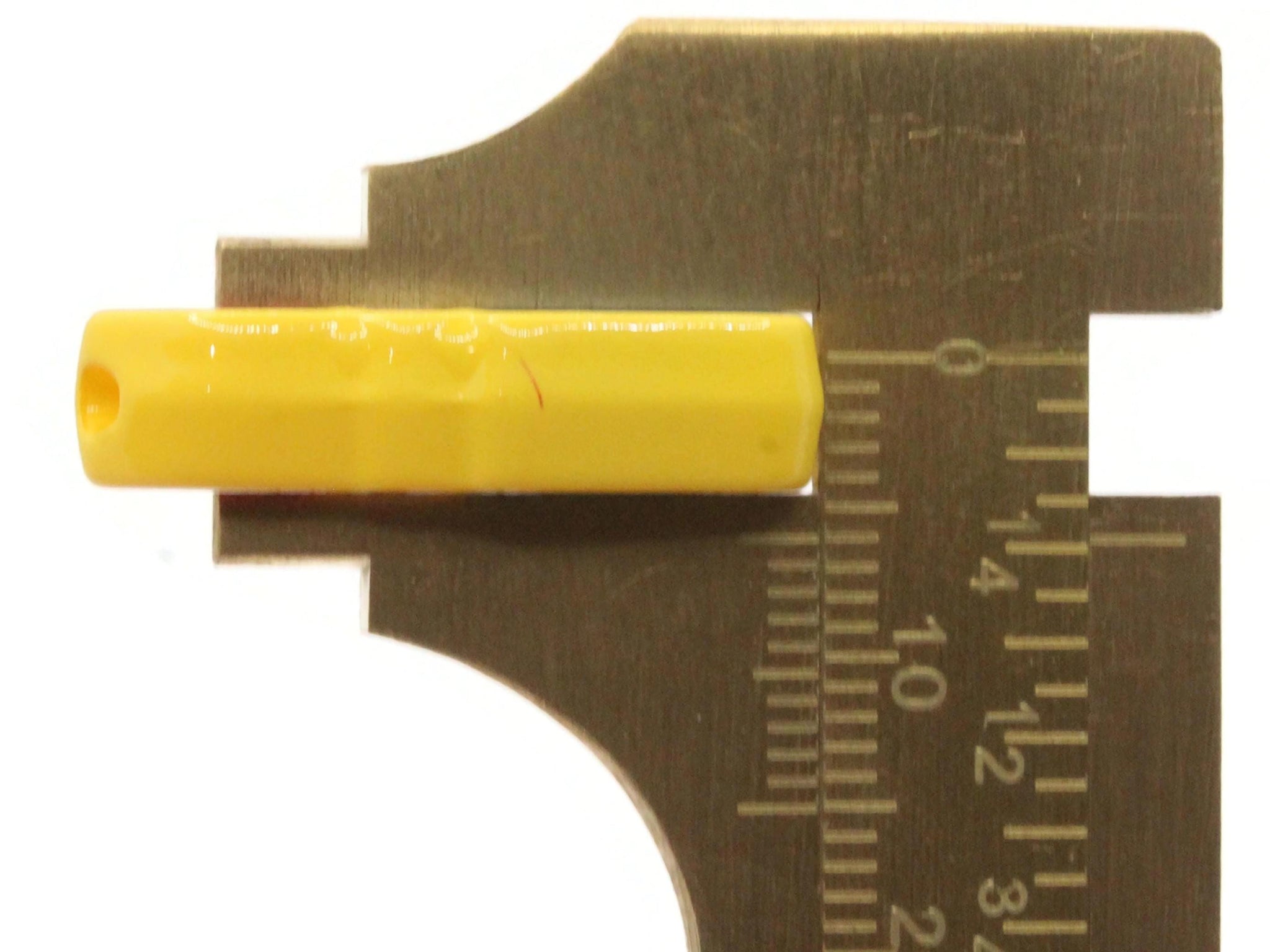 Adorable tubes of lipstick. So fun and fabulous. These have a hole that go through the center from top to bottom. A plastic bead with three colors of enamel applied to make the fun tube shape. The enamel is not always perfect, sometimes colors run together a bit or there's a mark. They're still adorable.