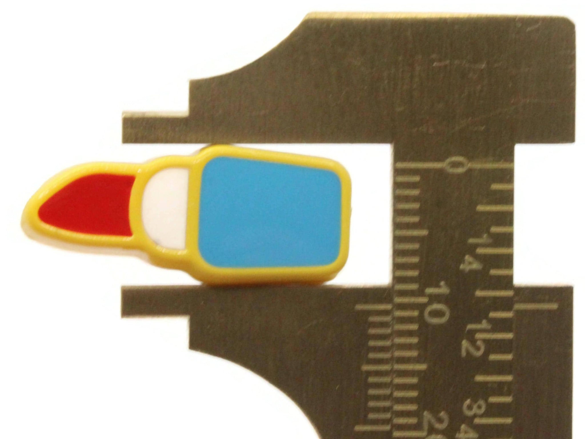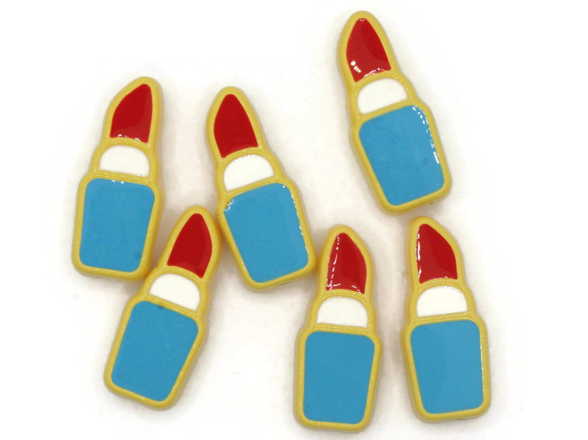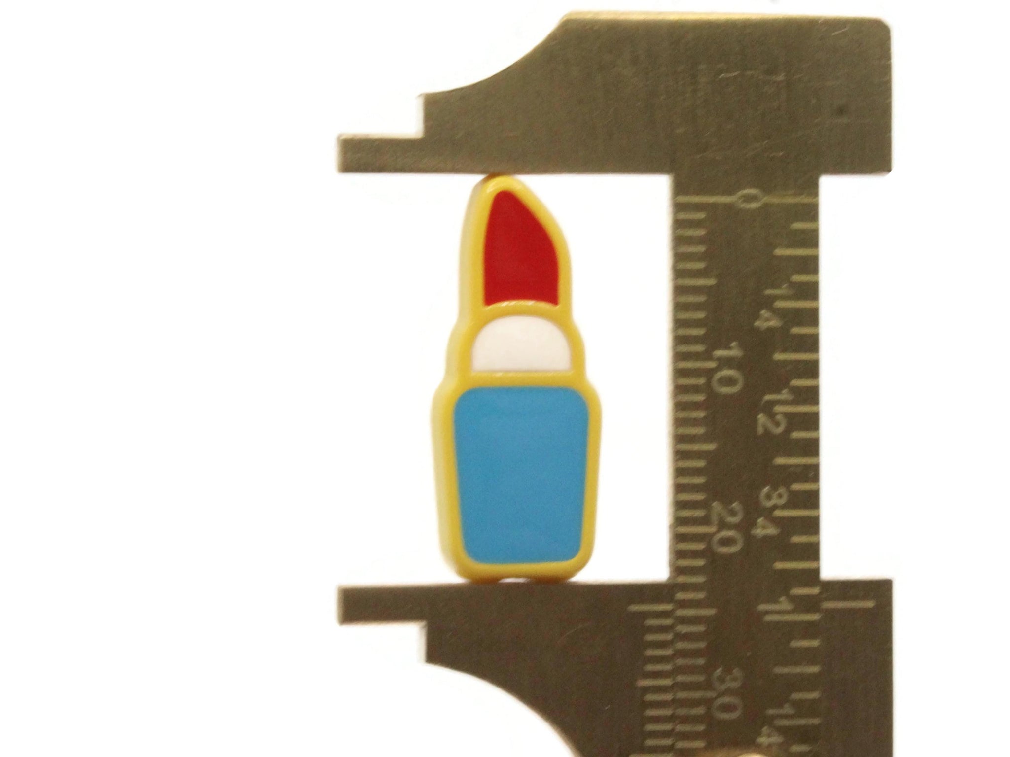 6 24mm Red Lipstick Beads Blue and White Enamel Tube on Yellow Plastic Beads