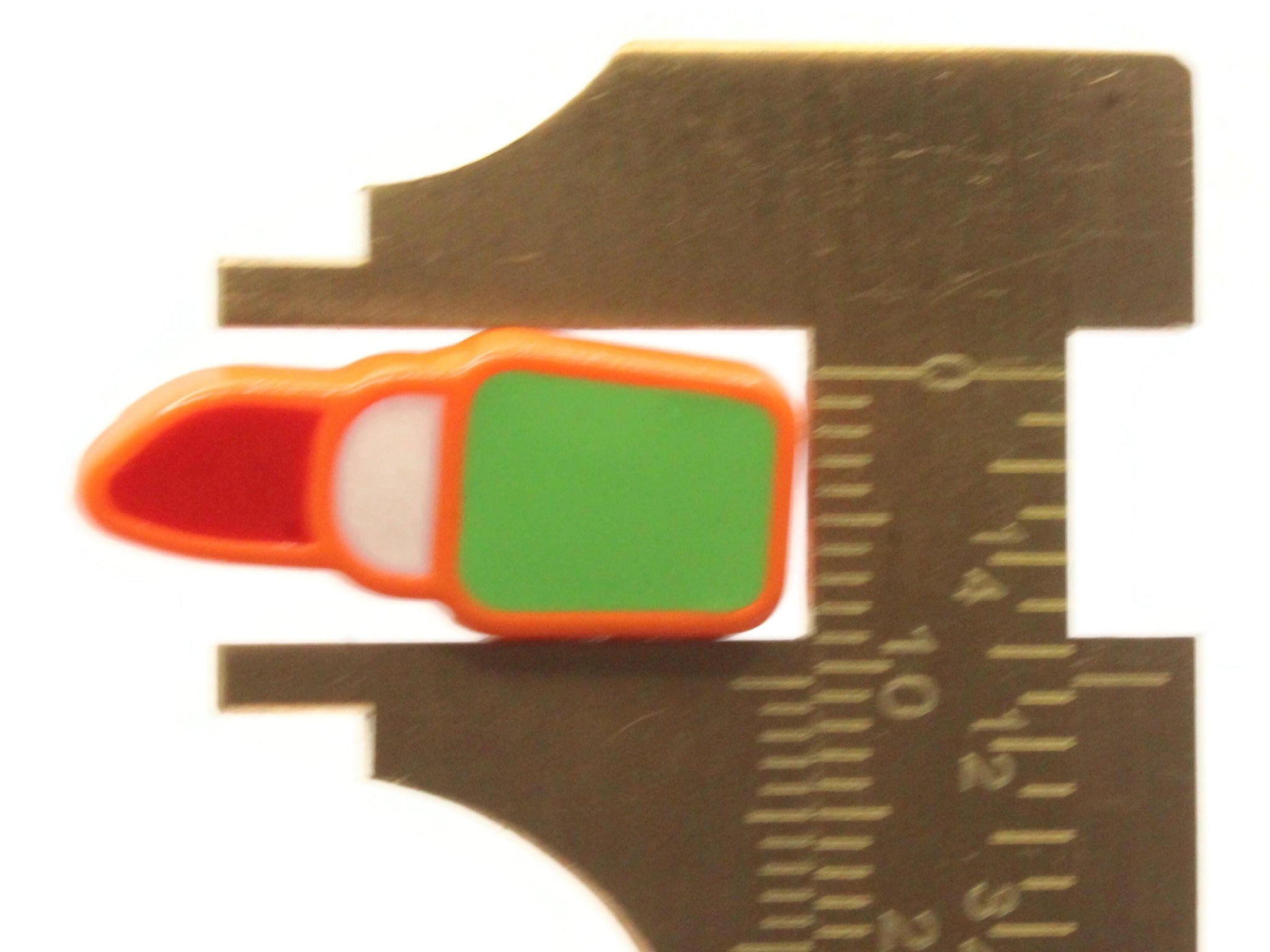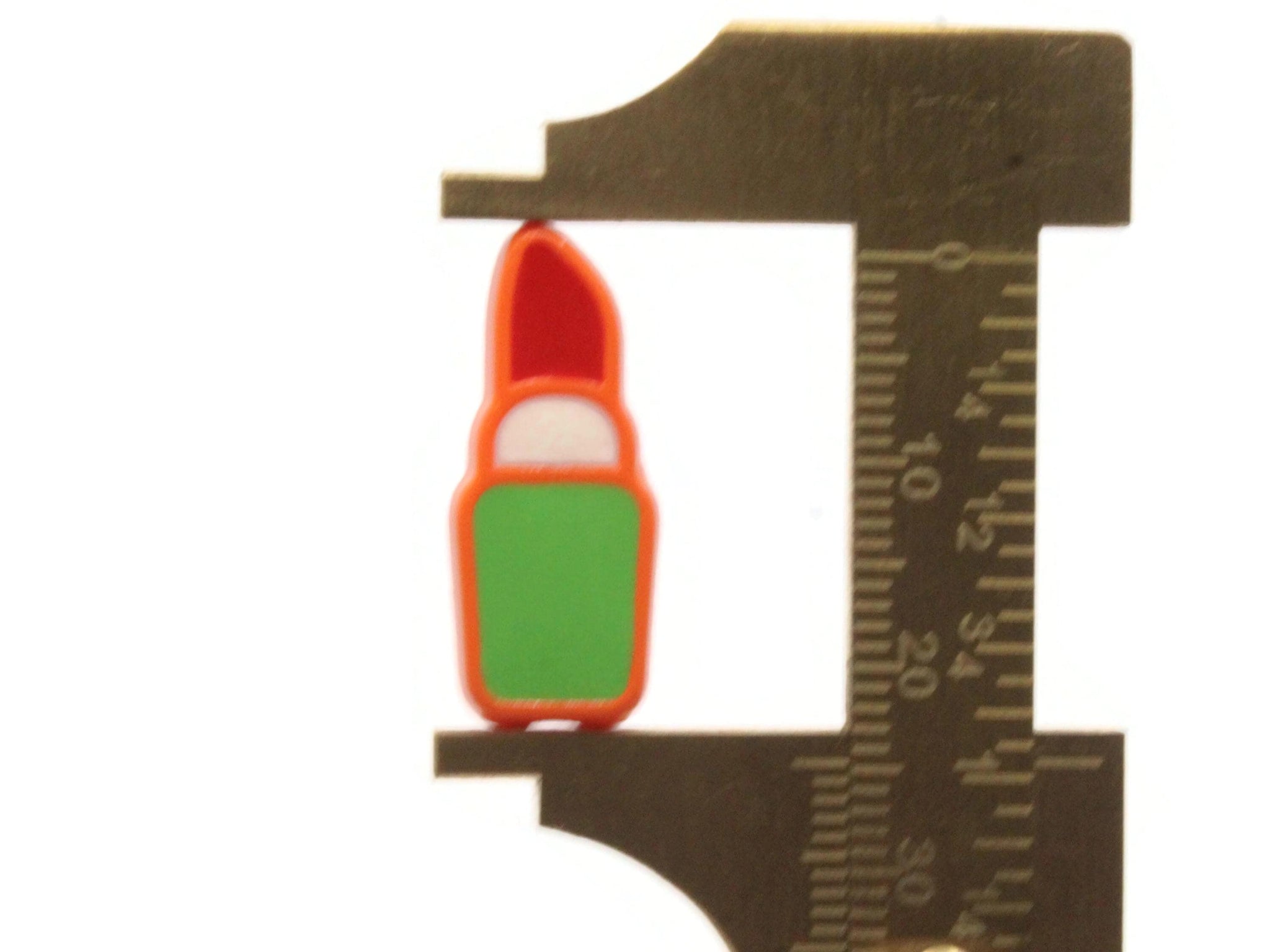 6 24mm Red Lipstick with Green and White Enamel Tube on Orange Plastic Beads