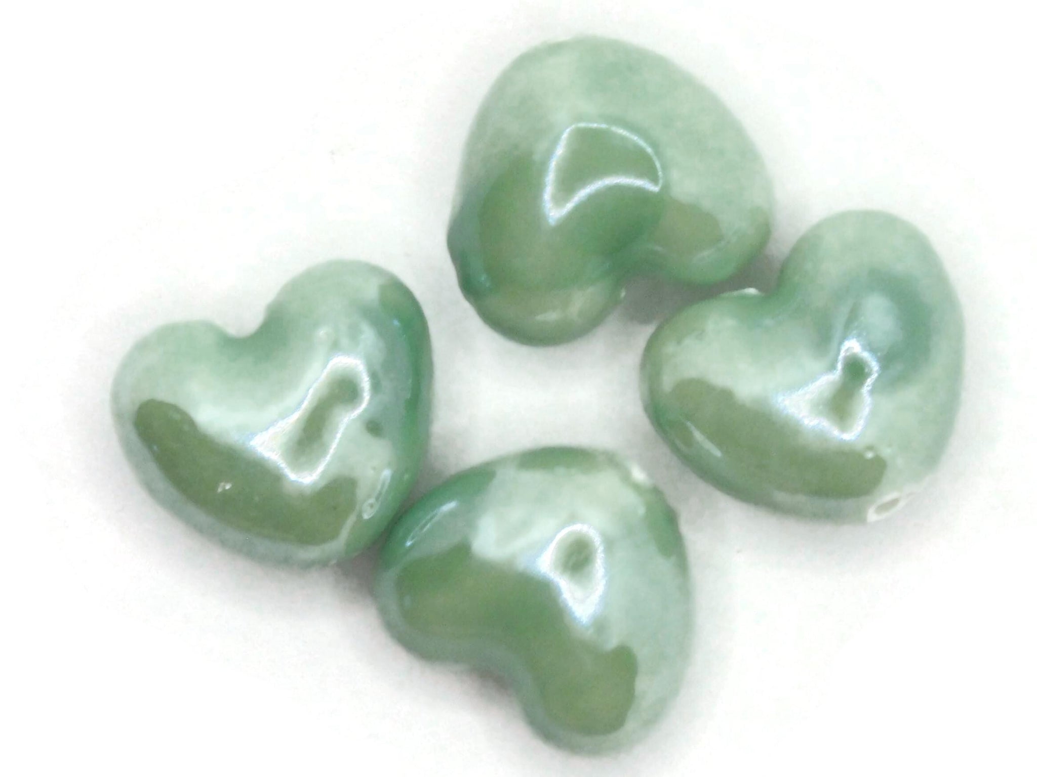 4 16mm Green Porcelain Heart Beads Valentine's Day Beads