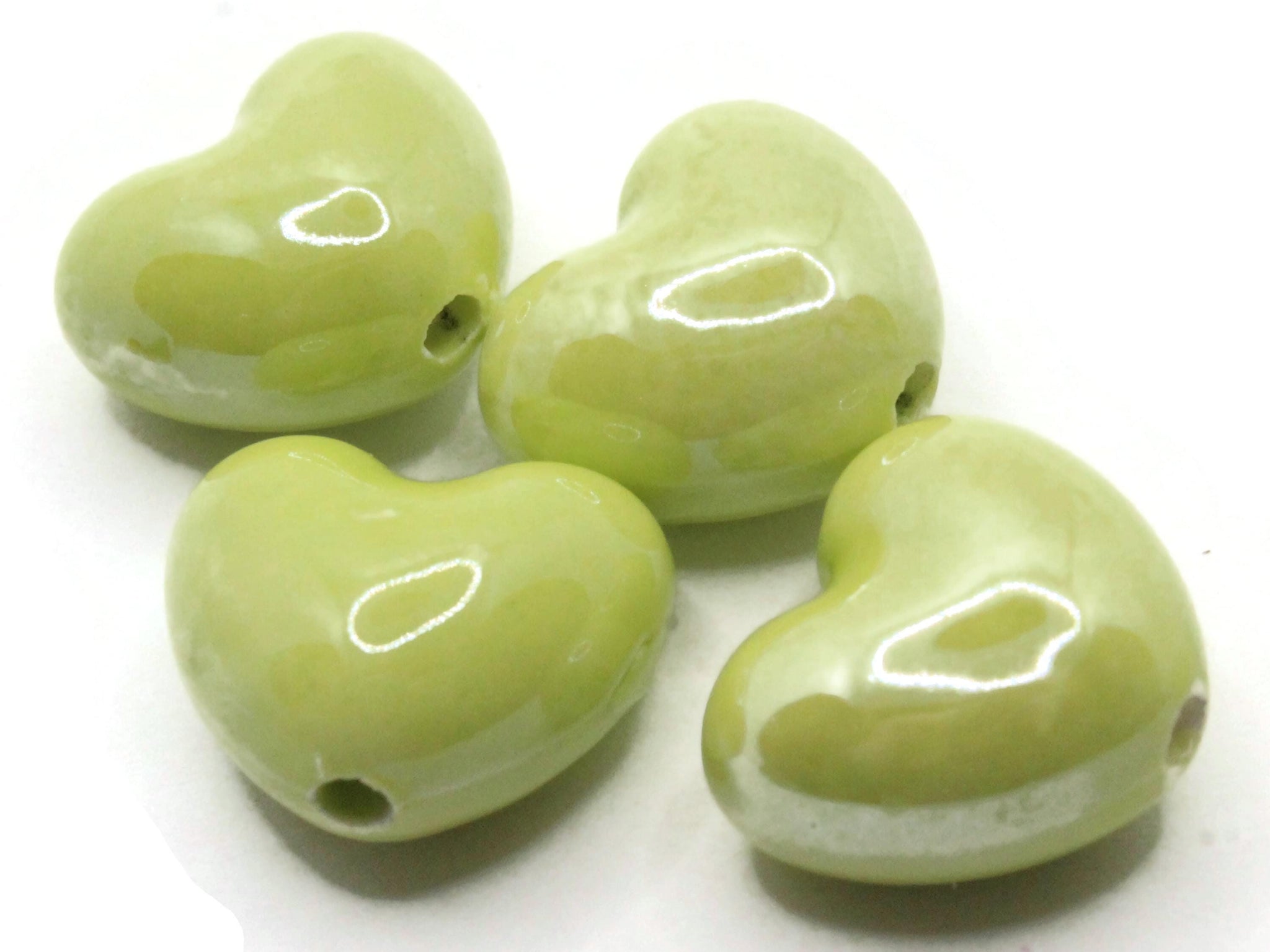 4 16mm Lime Green Porcelain Heart Beads Valentine's Day Beads