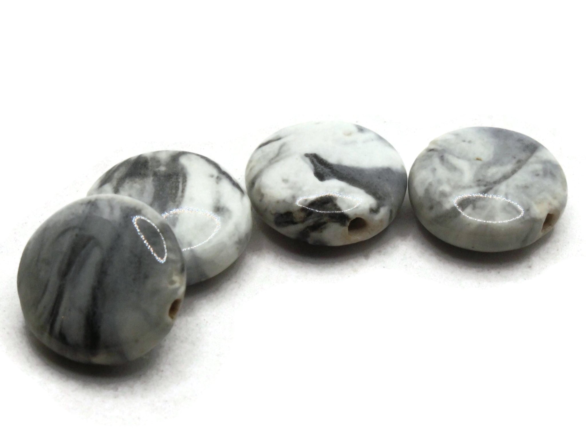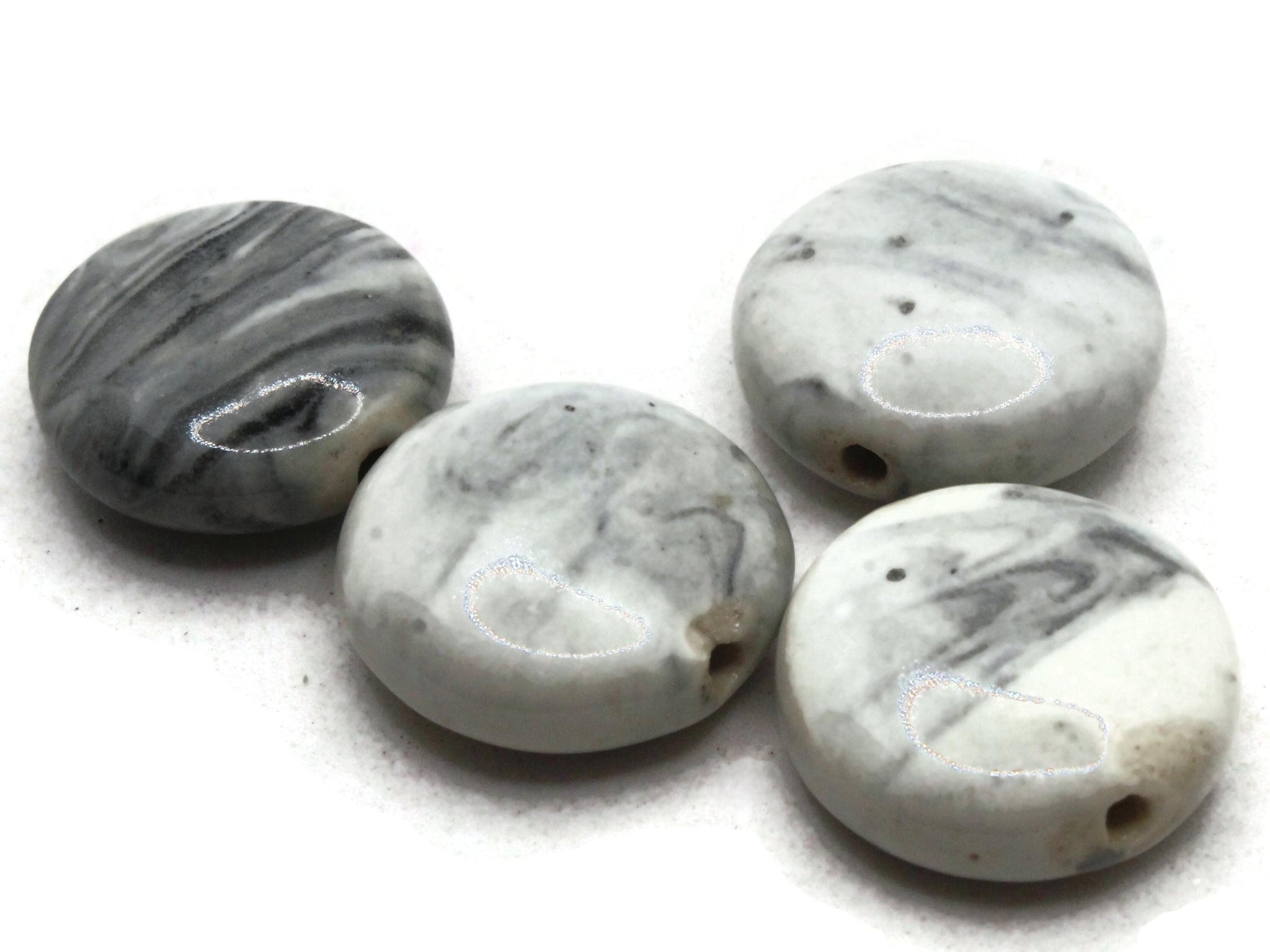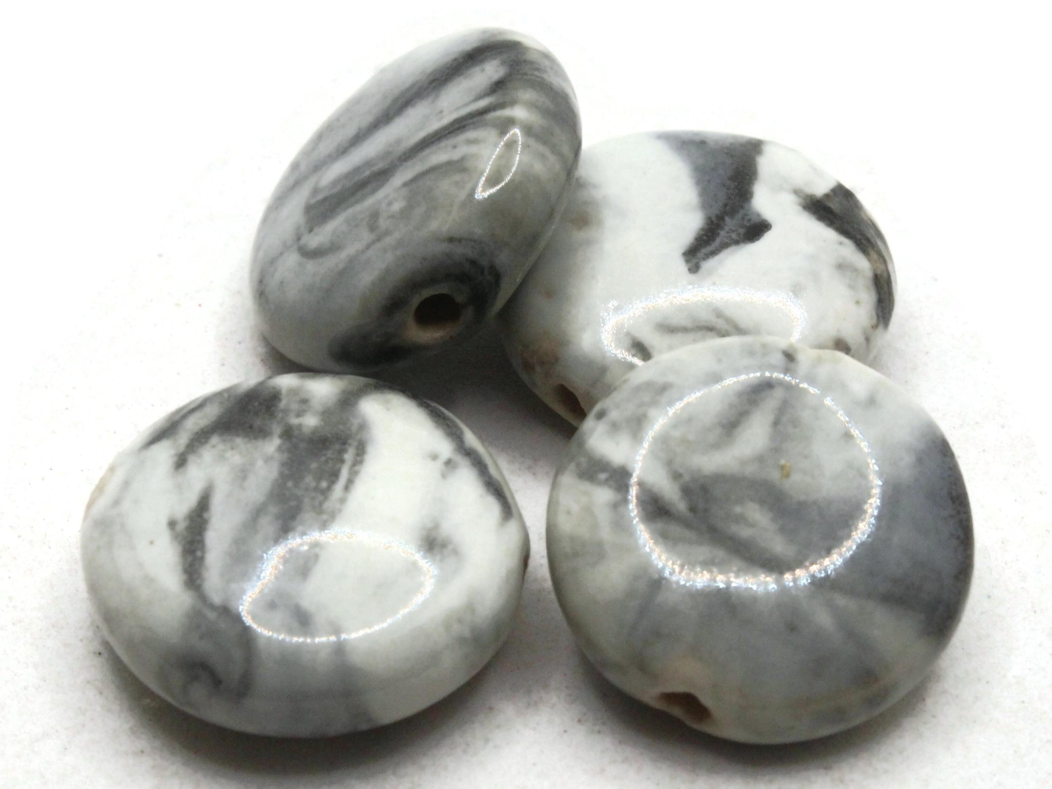 4 21mm Light and Dark Gray Ceramic Coin Beads