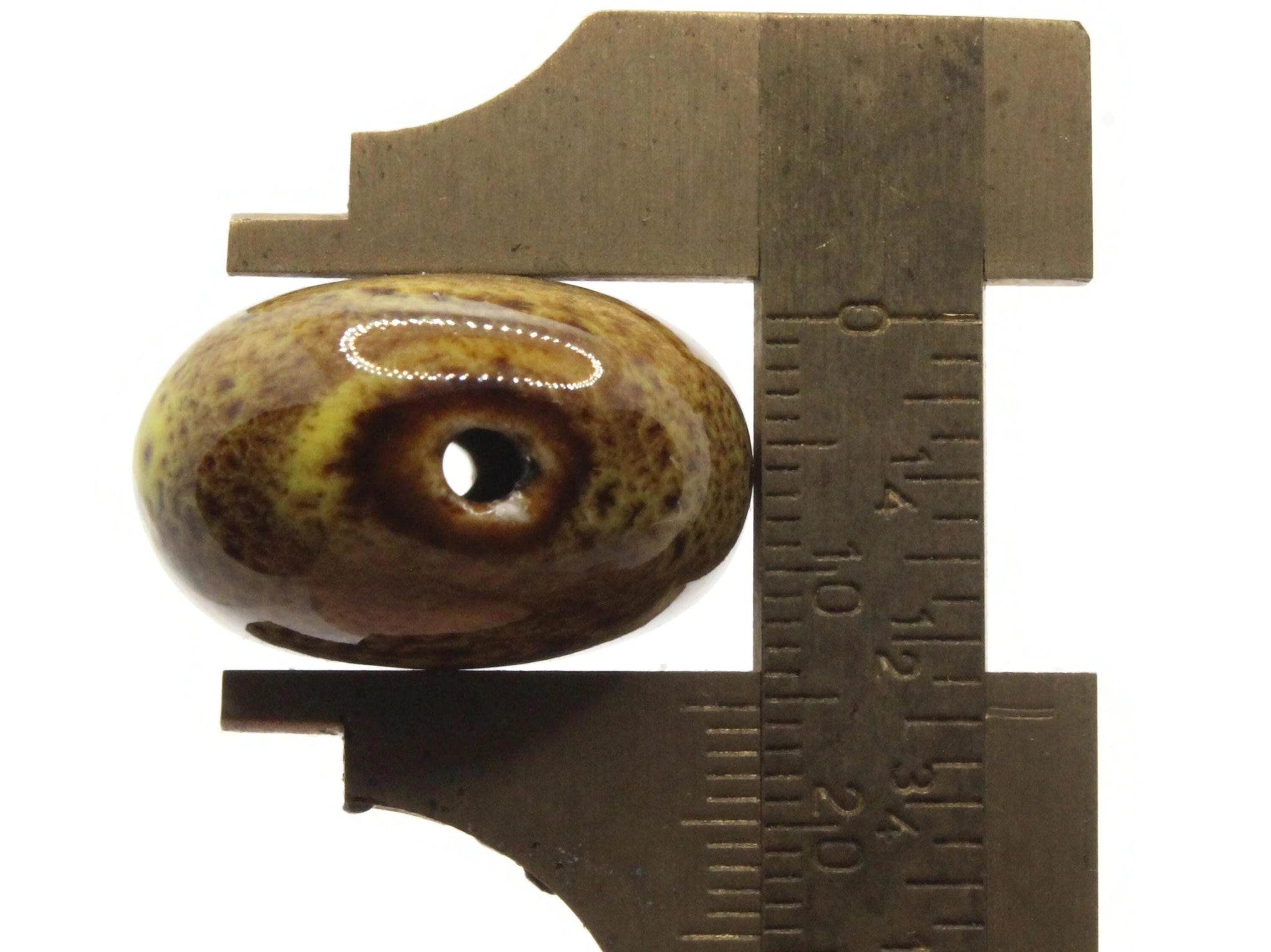 7 23mm Yellow and Brown Speckled Ceramic Coin Large Hole Beads
