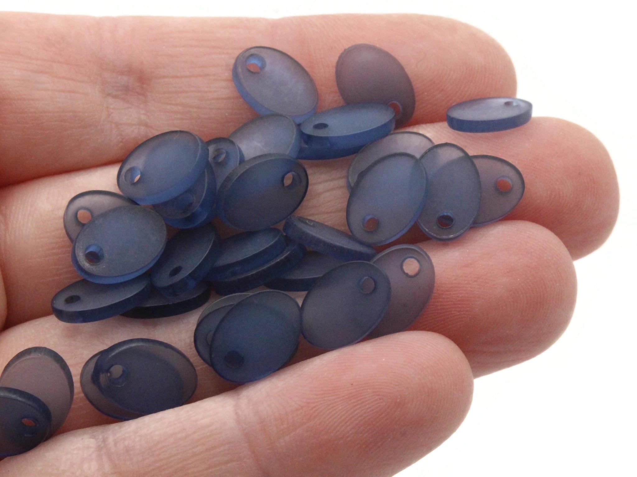 These beads are a gorgeous, frosted blue. The oval shape has a hole on one end to make a great dangle.