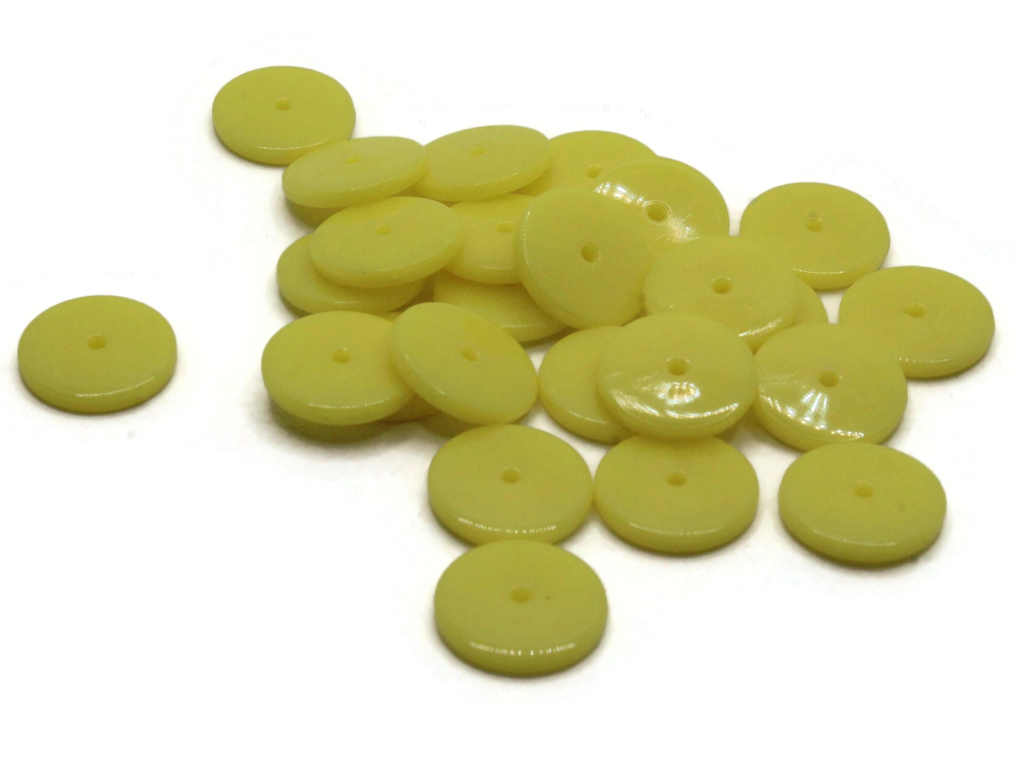 25 14mm Yellow Vintage Plastic Flat Round Disc Beads