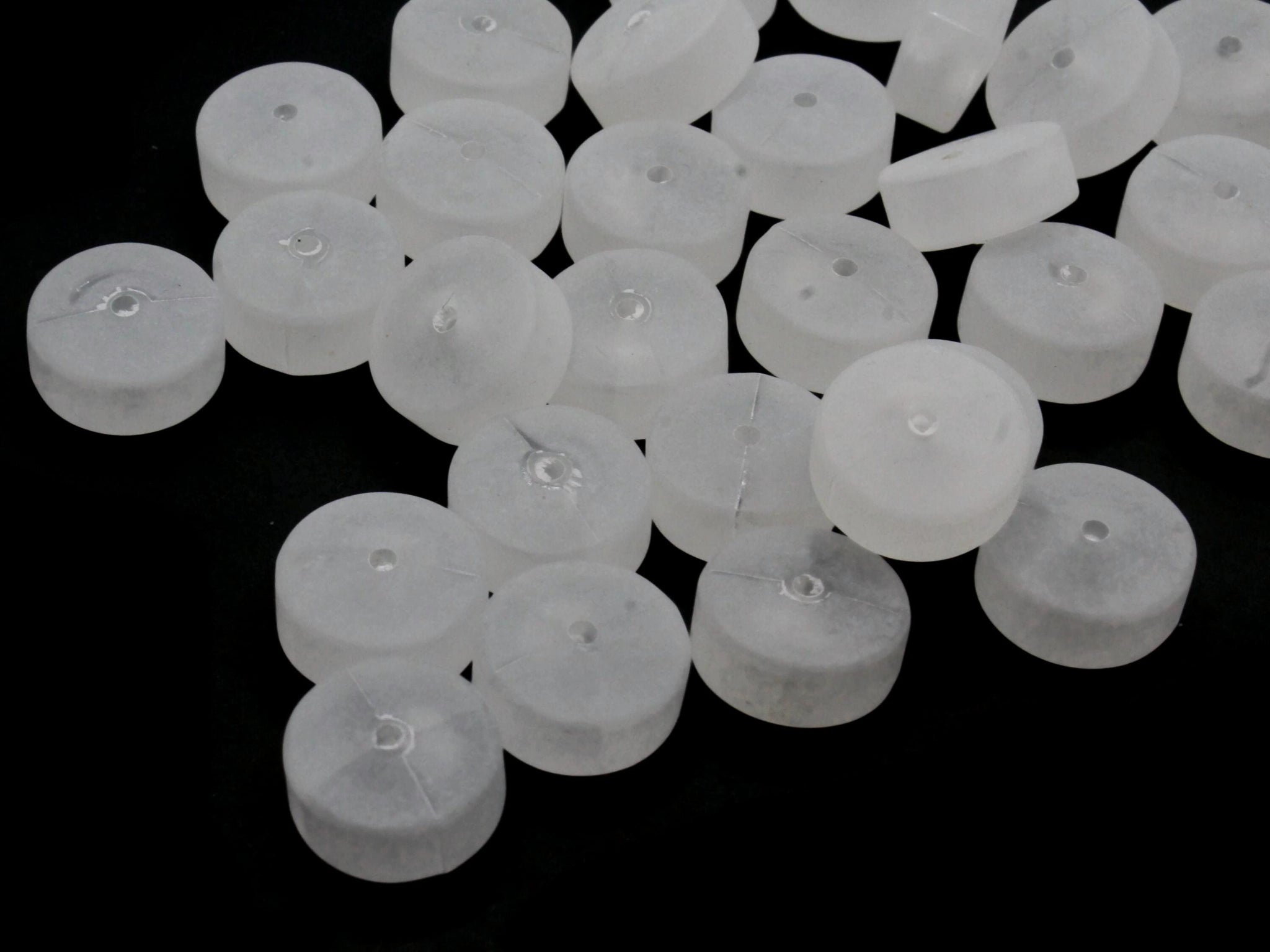 30 14mm Flat Round Disc Vintage Frosted White Acrylic Beads