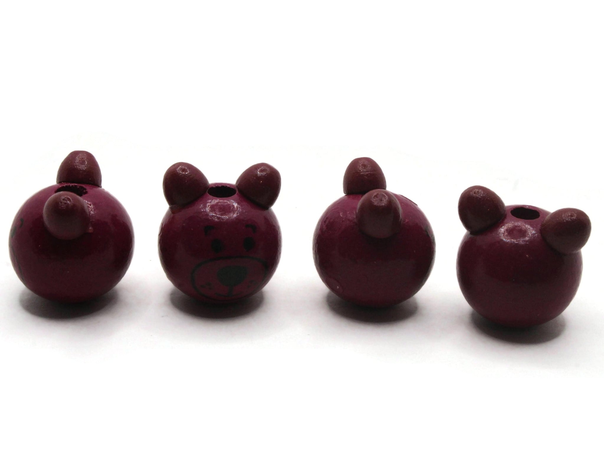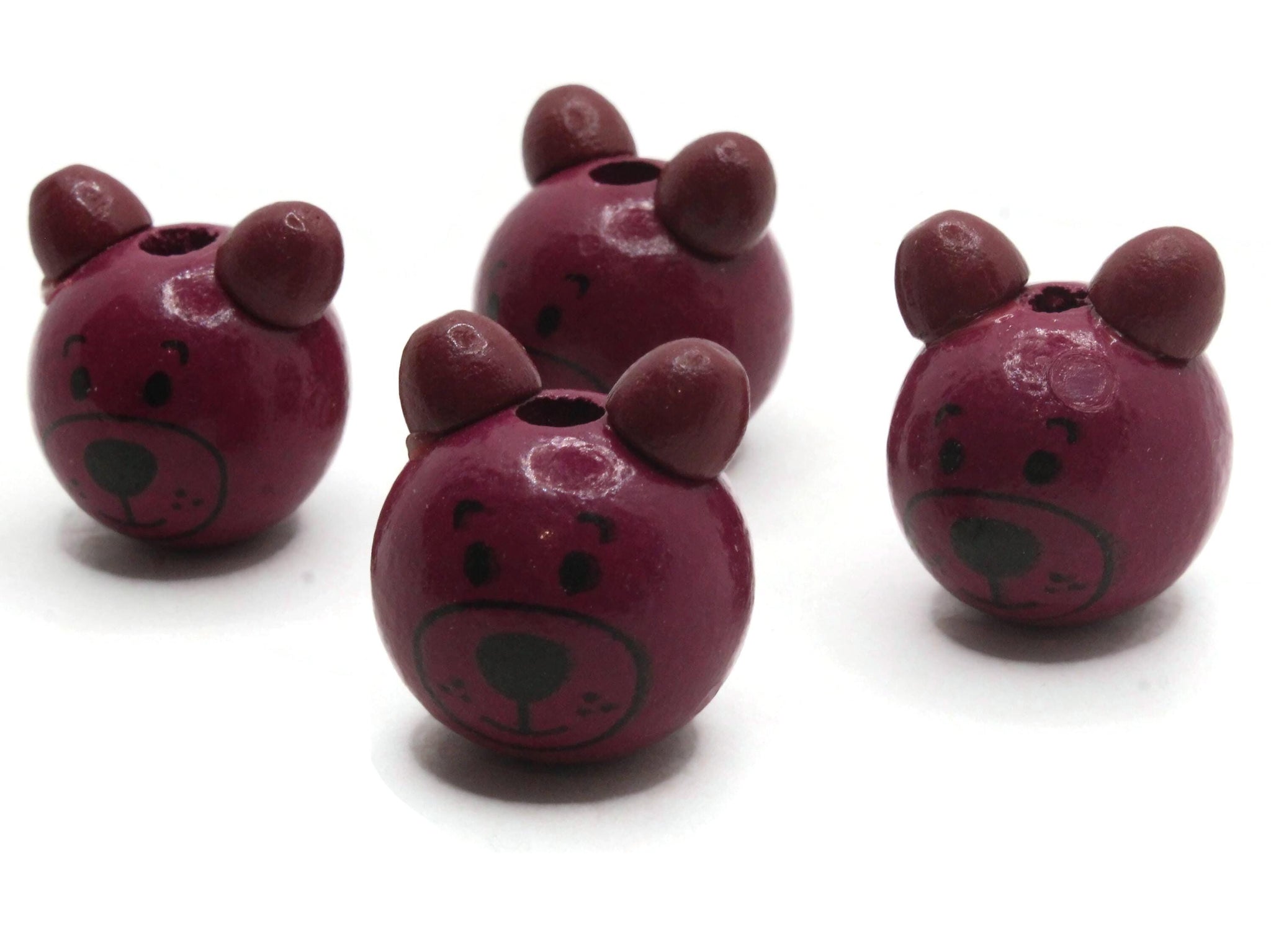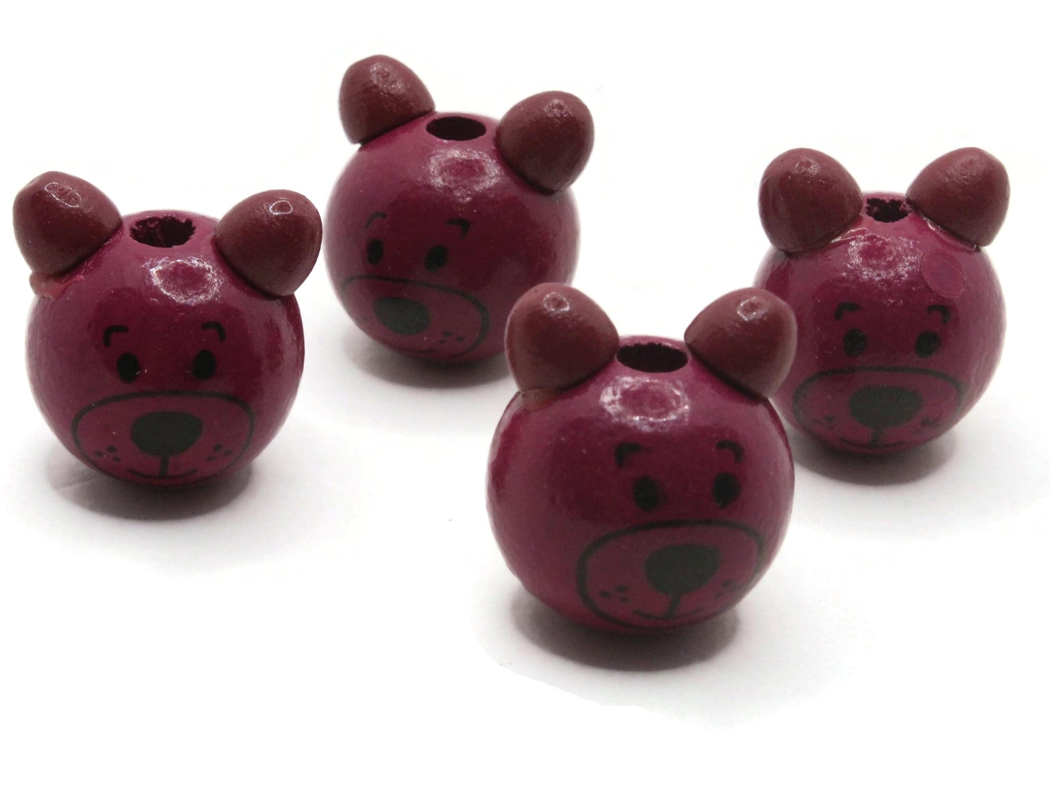 4 26mm Round Purple Wood Bear Head Beads Large Hole Wooden Beads