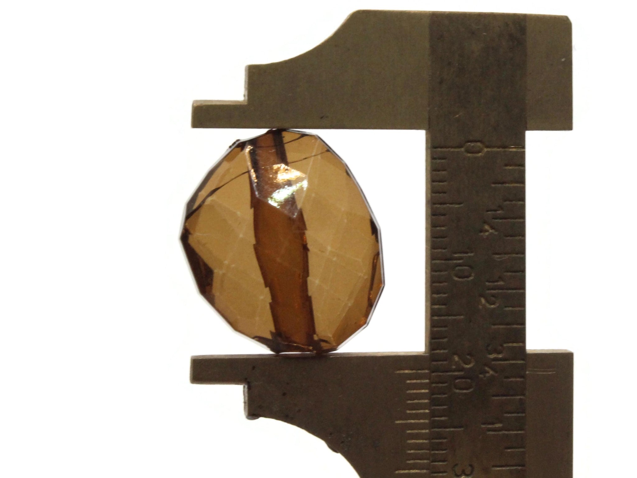 Great faceted flat oval beads. Very lightweight and lovely. Pretty clear brown.