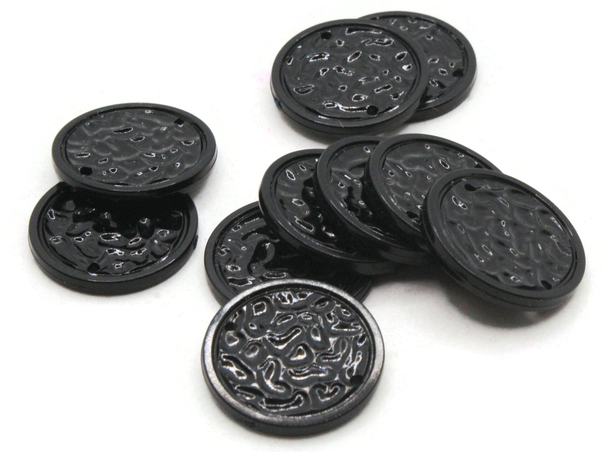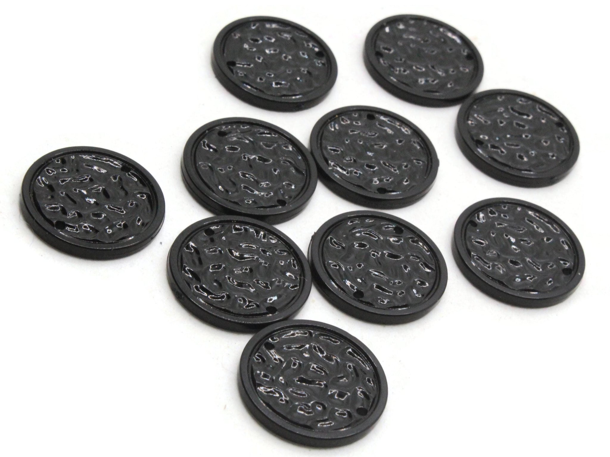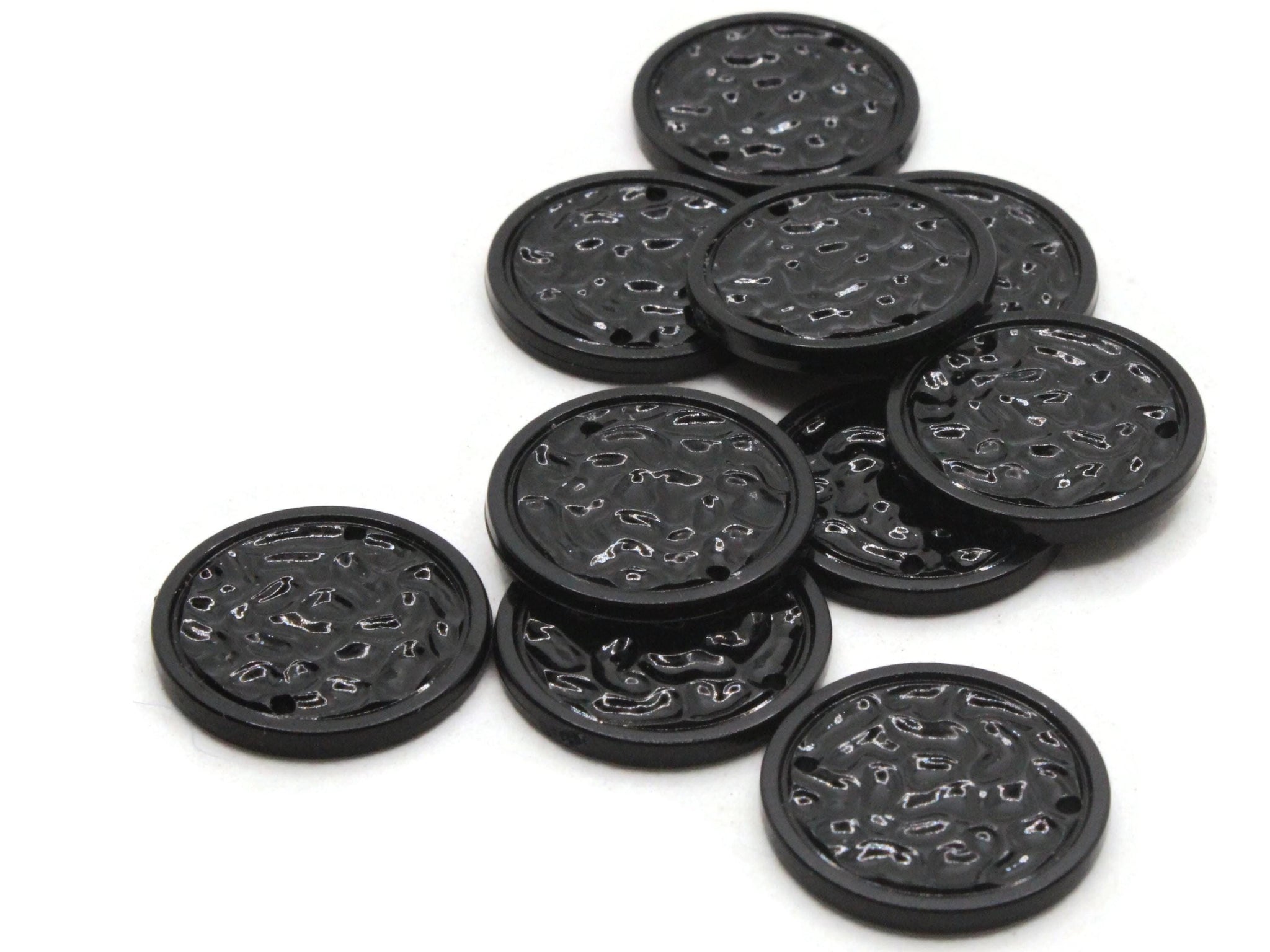 10 20mm Vintage Black Two Hole Flat Round Plastic Coin Beads