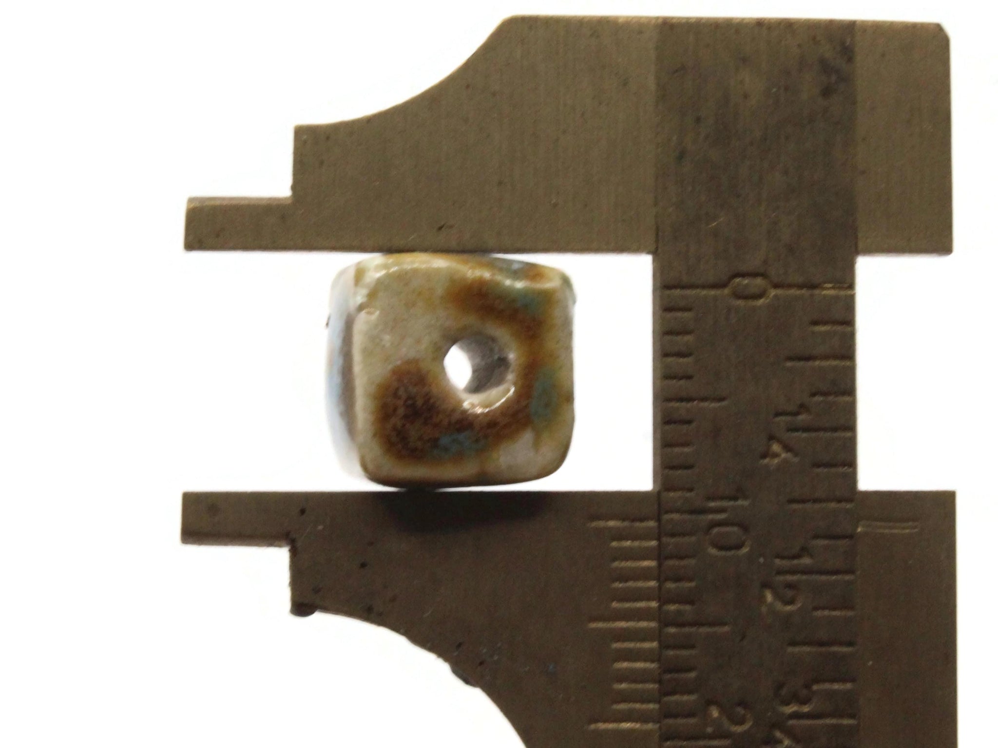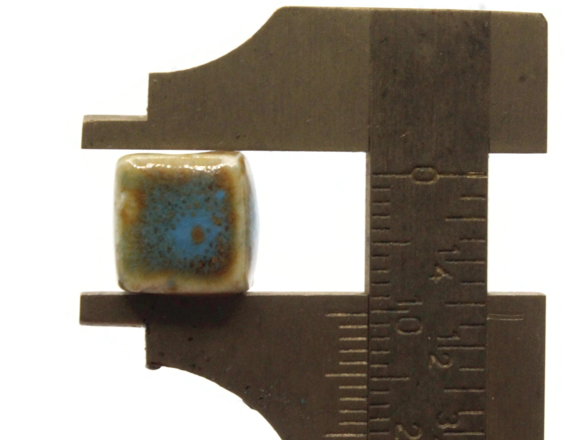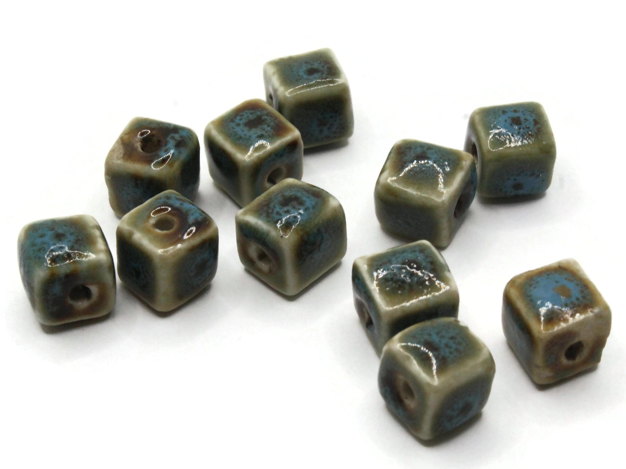 11 10mm Green, Blue and Brown Spotted Porcelain Ceramic Cube Beads