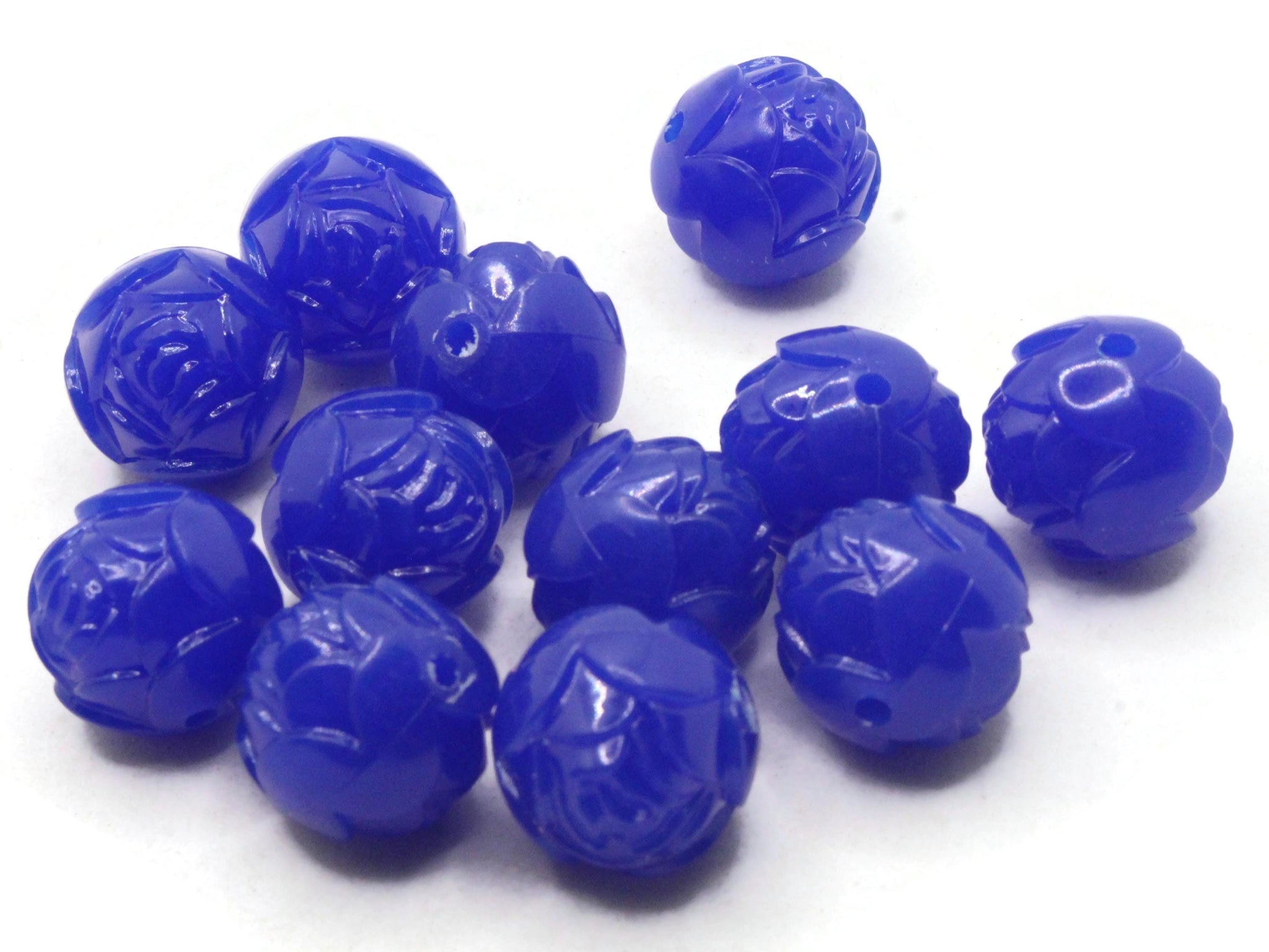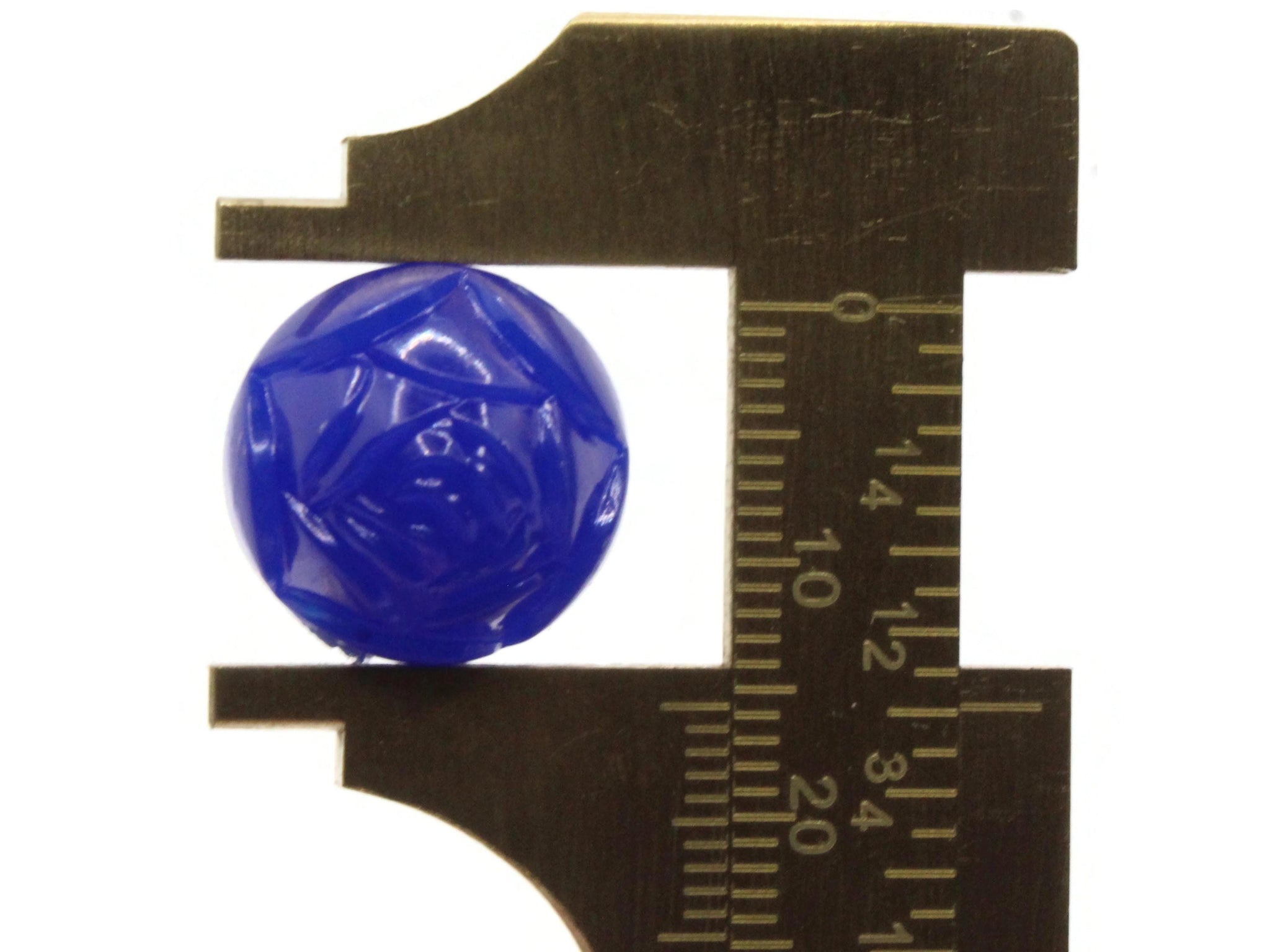 12 16mm Blue Pressed Rose Vintage Plastic Round Floral Beads