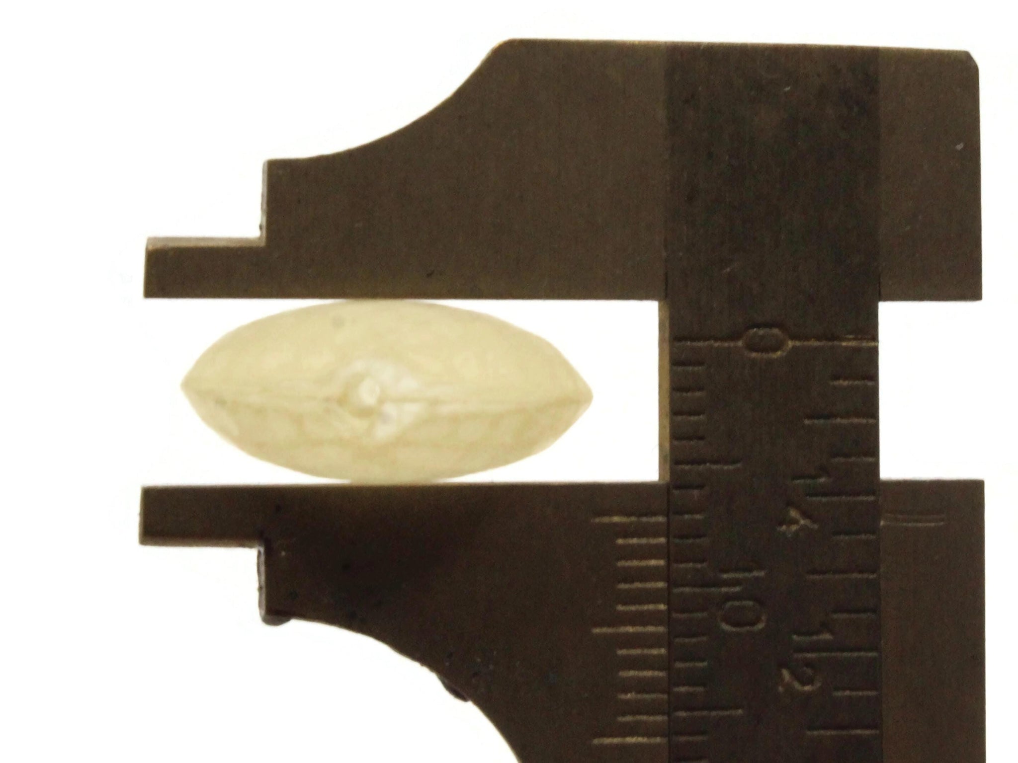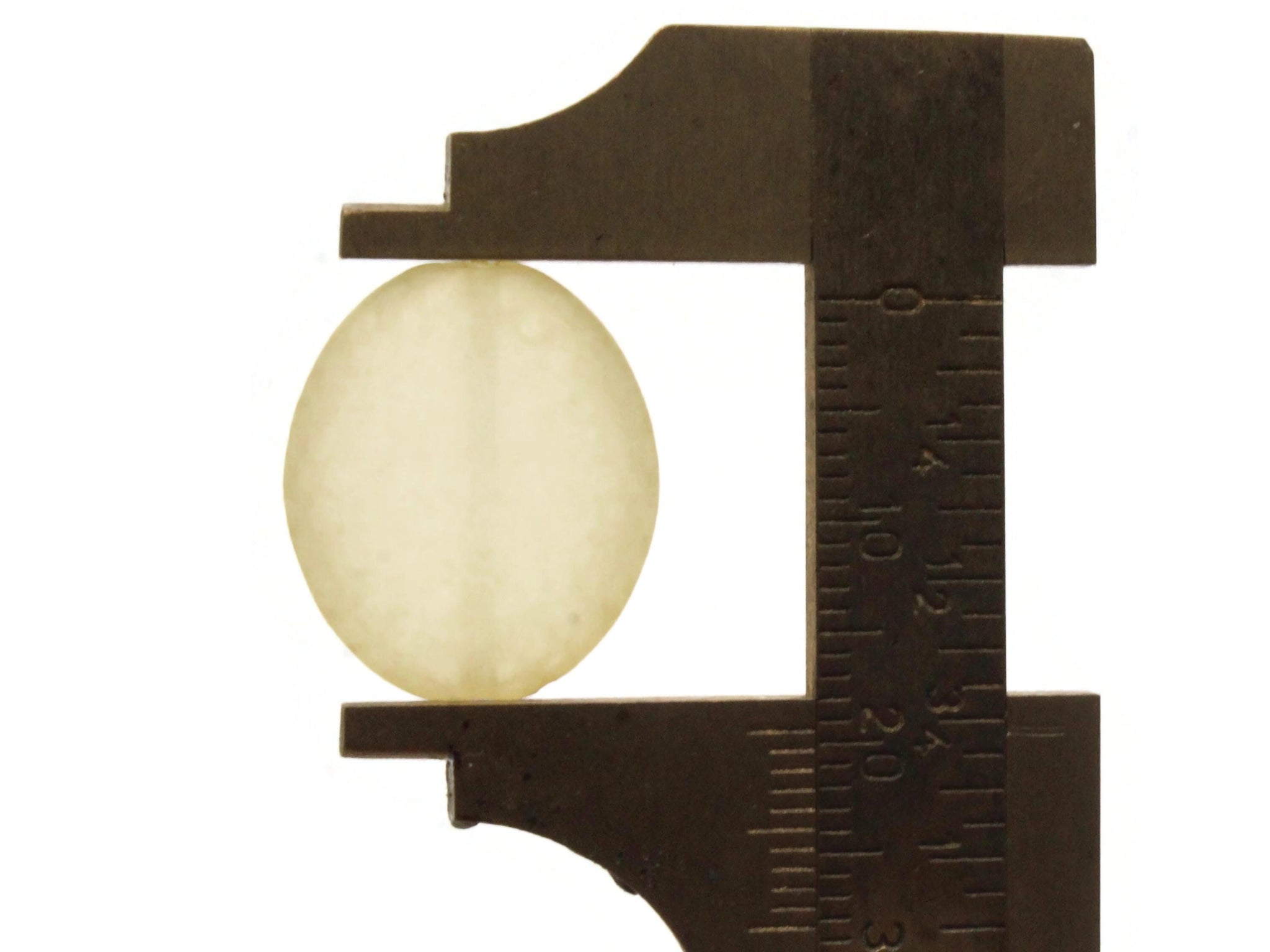 19mm long, 16mm across, 7mm Thick, About 2mm hole