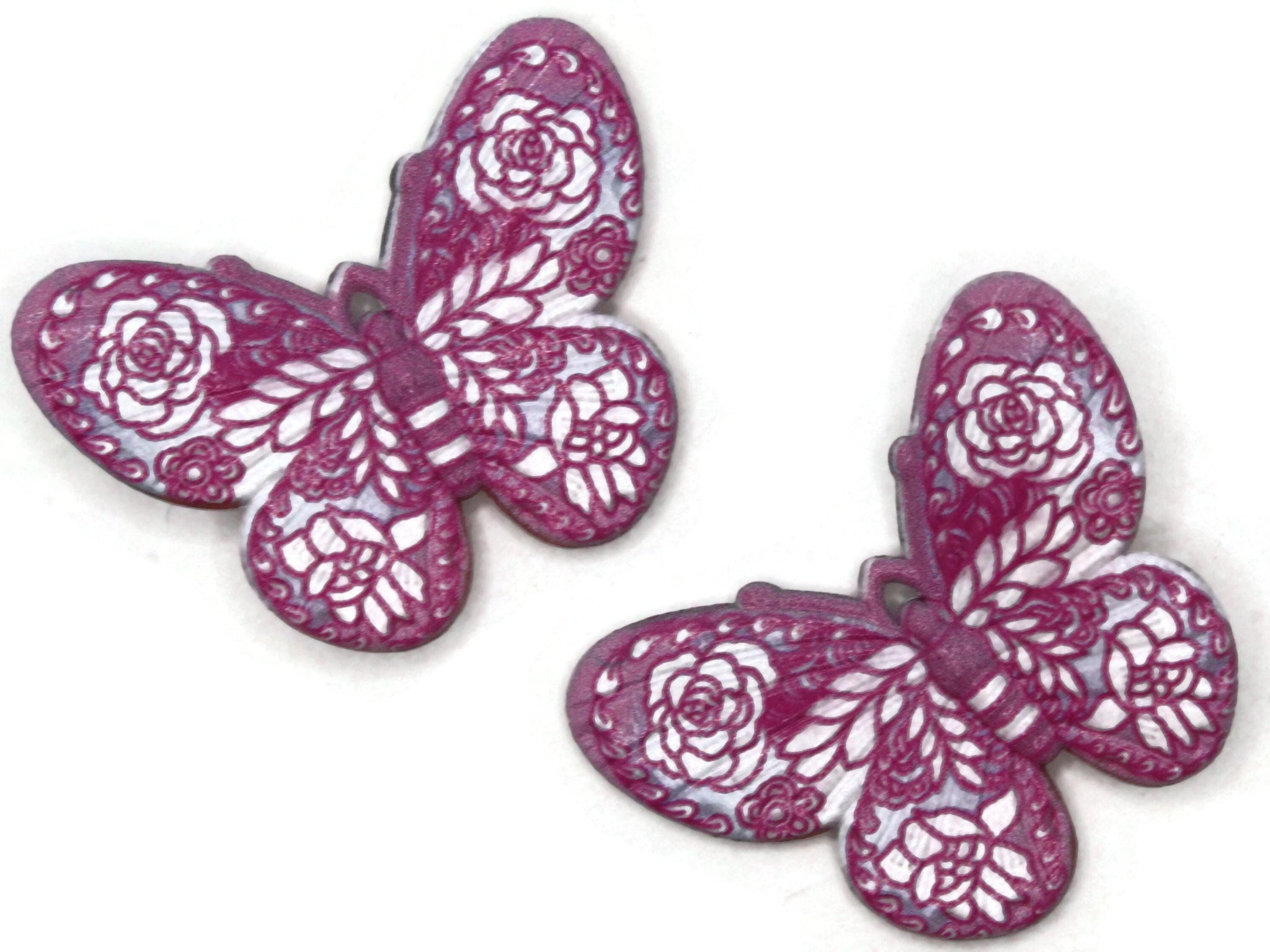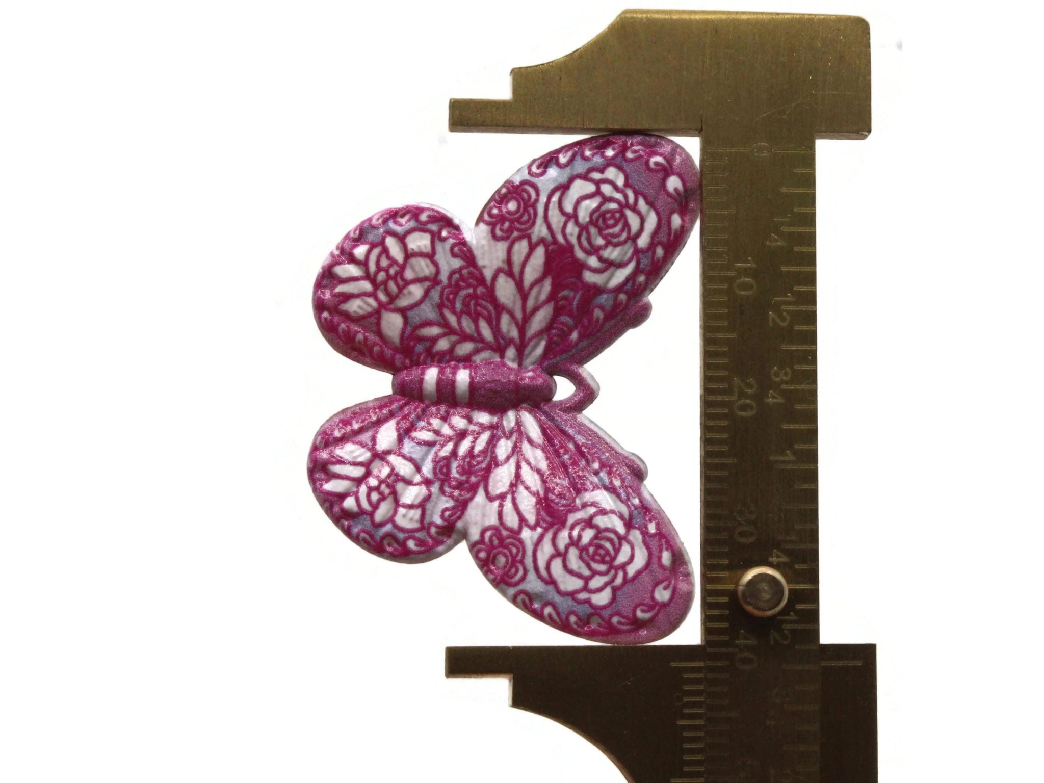 2 41mm Pink and White Plastic Butterfly or Moth Charms