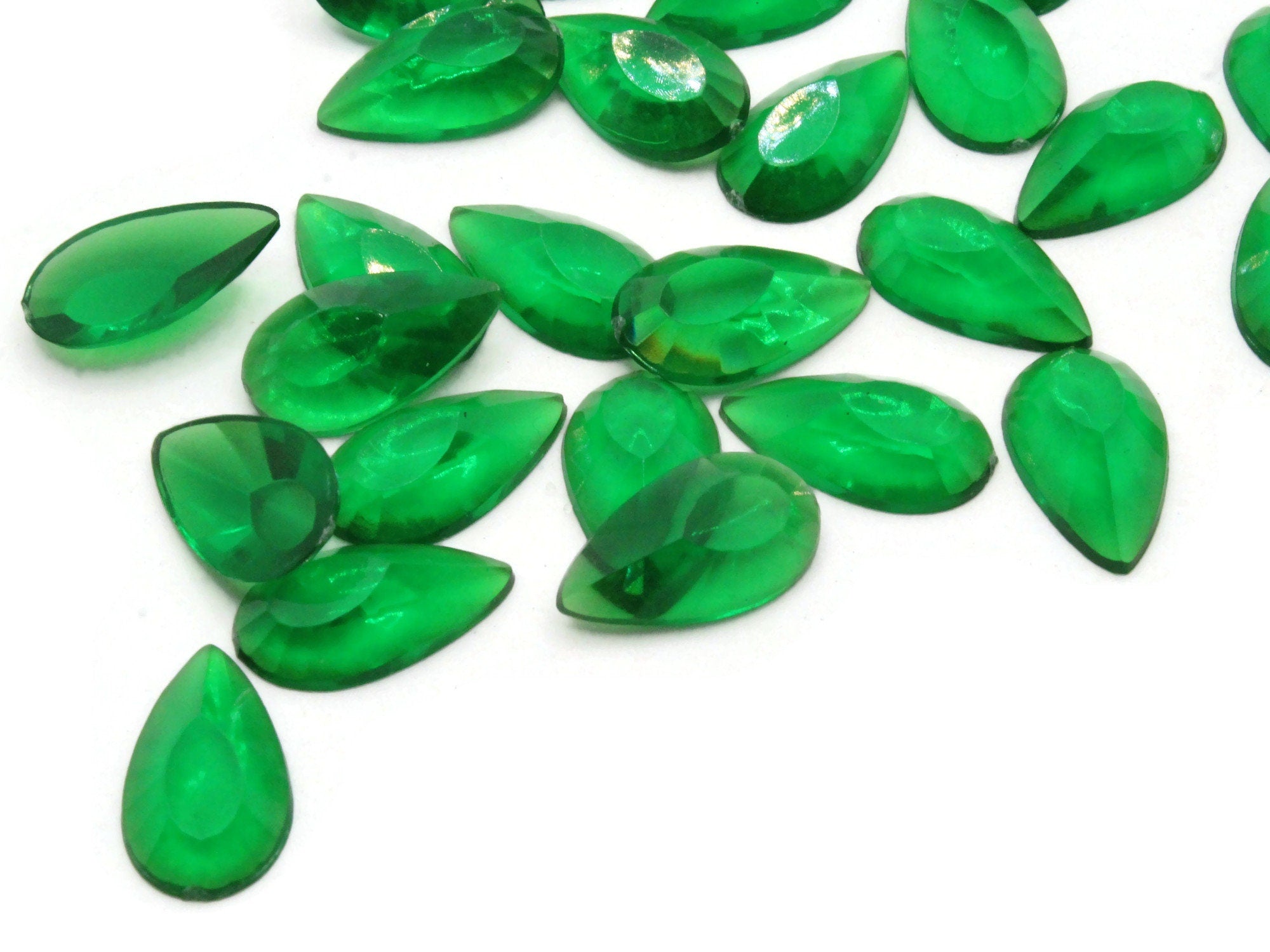 20 20mm Clear Green Faceted Teardrop Vintage Plastic Cabochons bL2