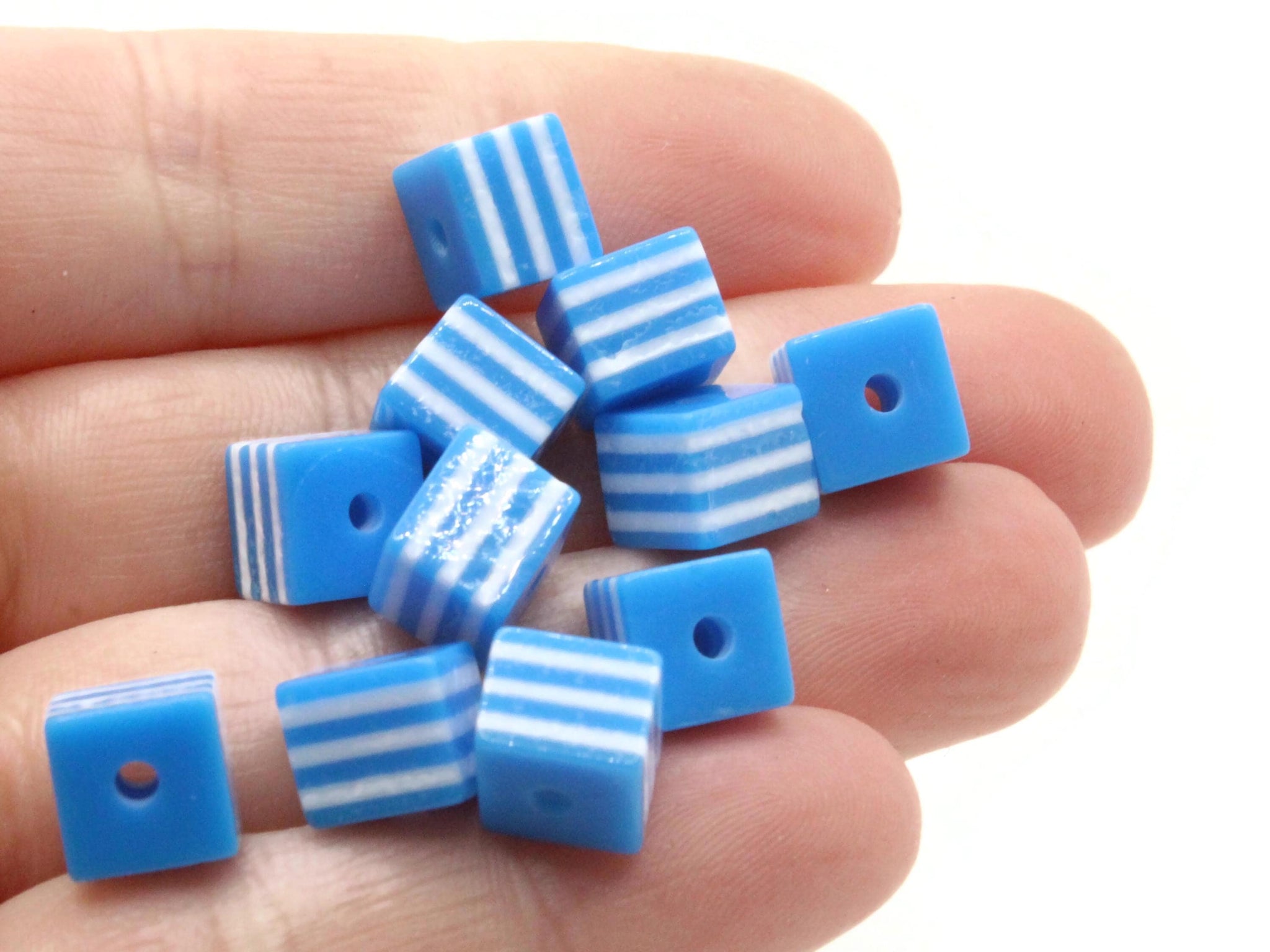 Fun resin beads are solid and sturdy. The great striped pattern makes them extra fun.