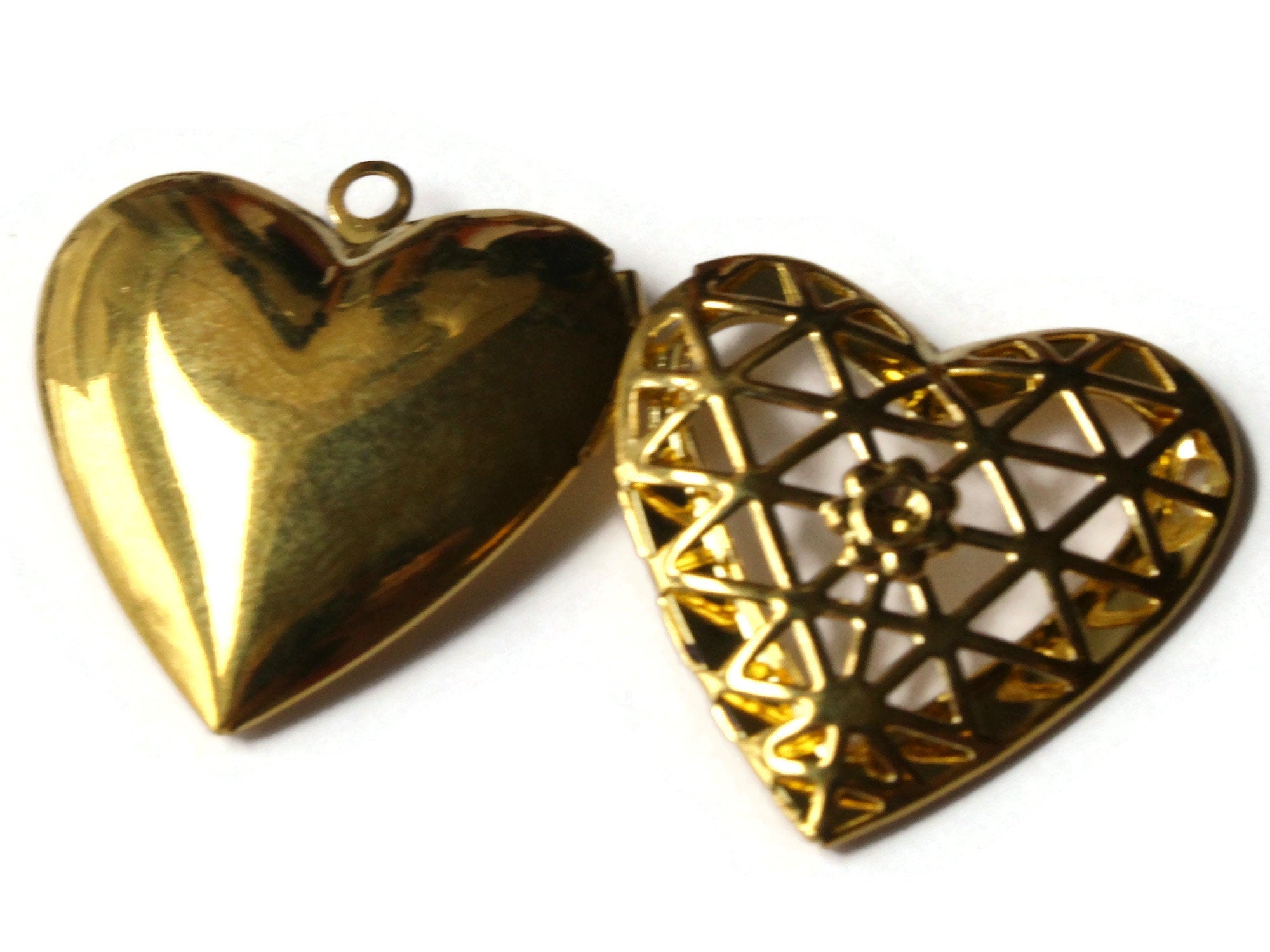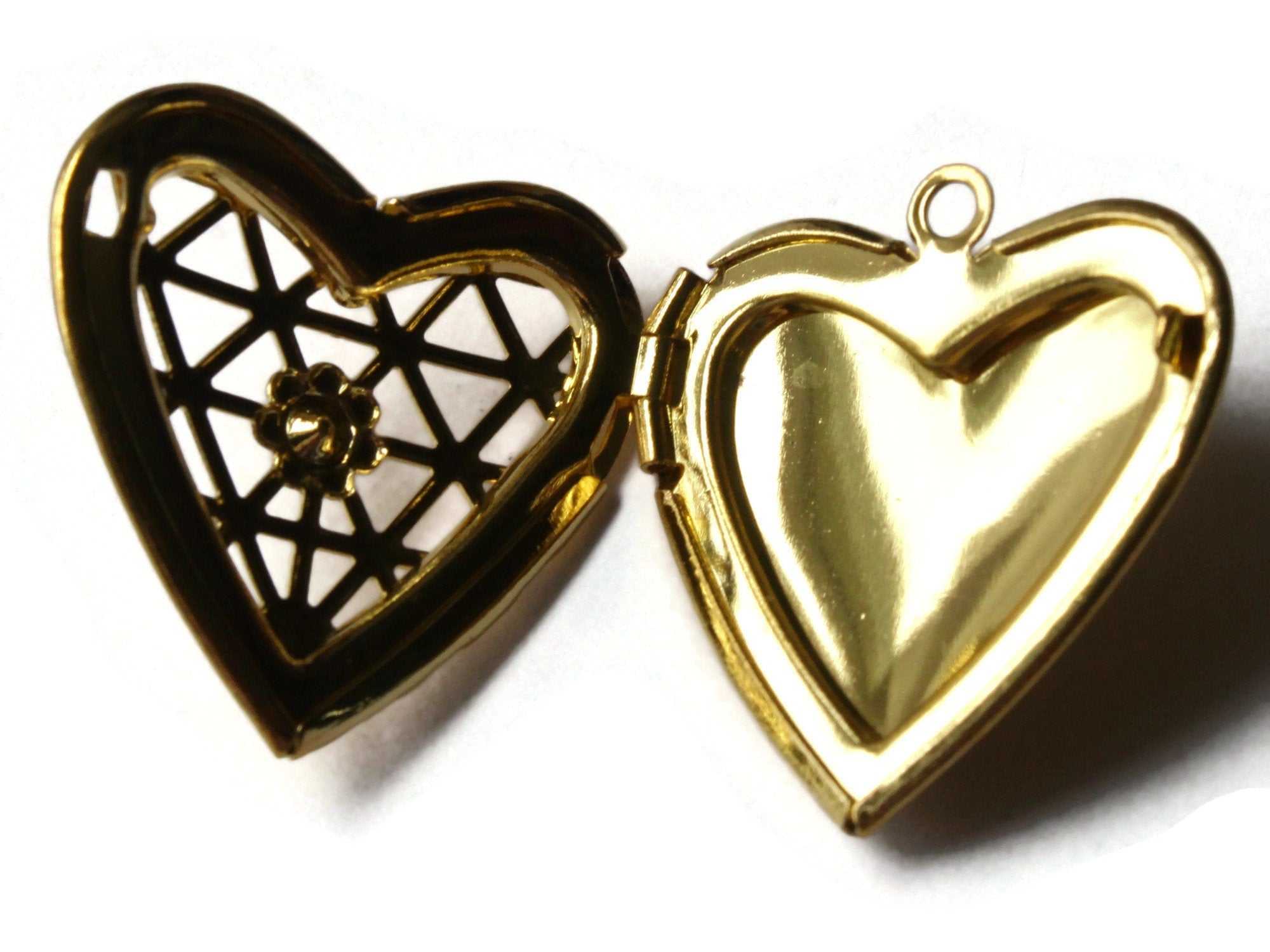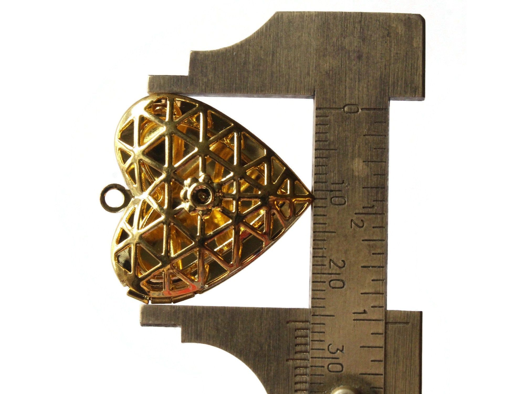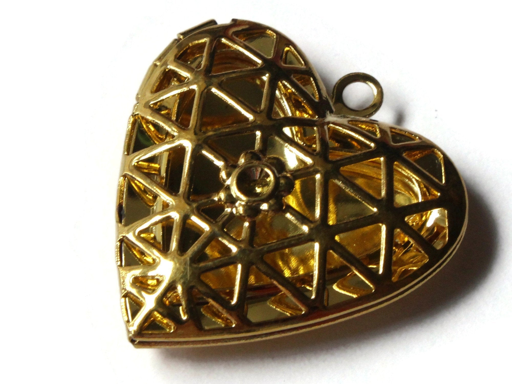 26mm Filigree Heart Locket Gold Tone Brass Diffuser Pendant