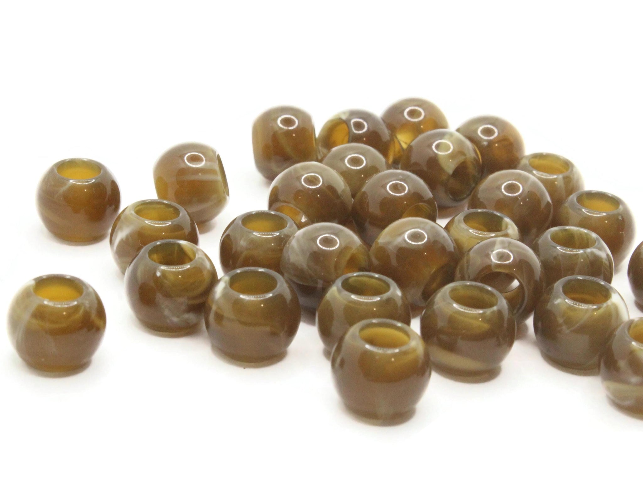 30 12mm Brown and Beige Swirl Large Hole Round Plastic Beads