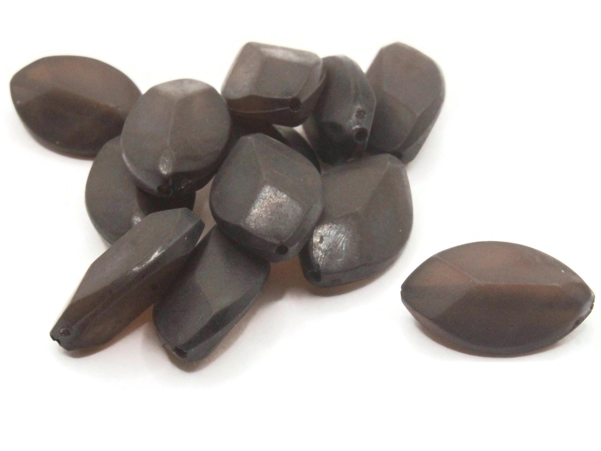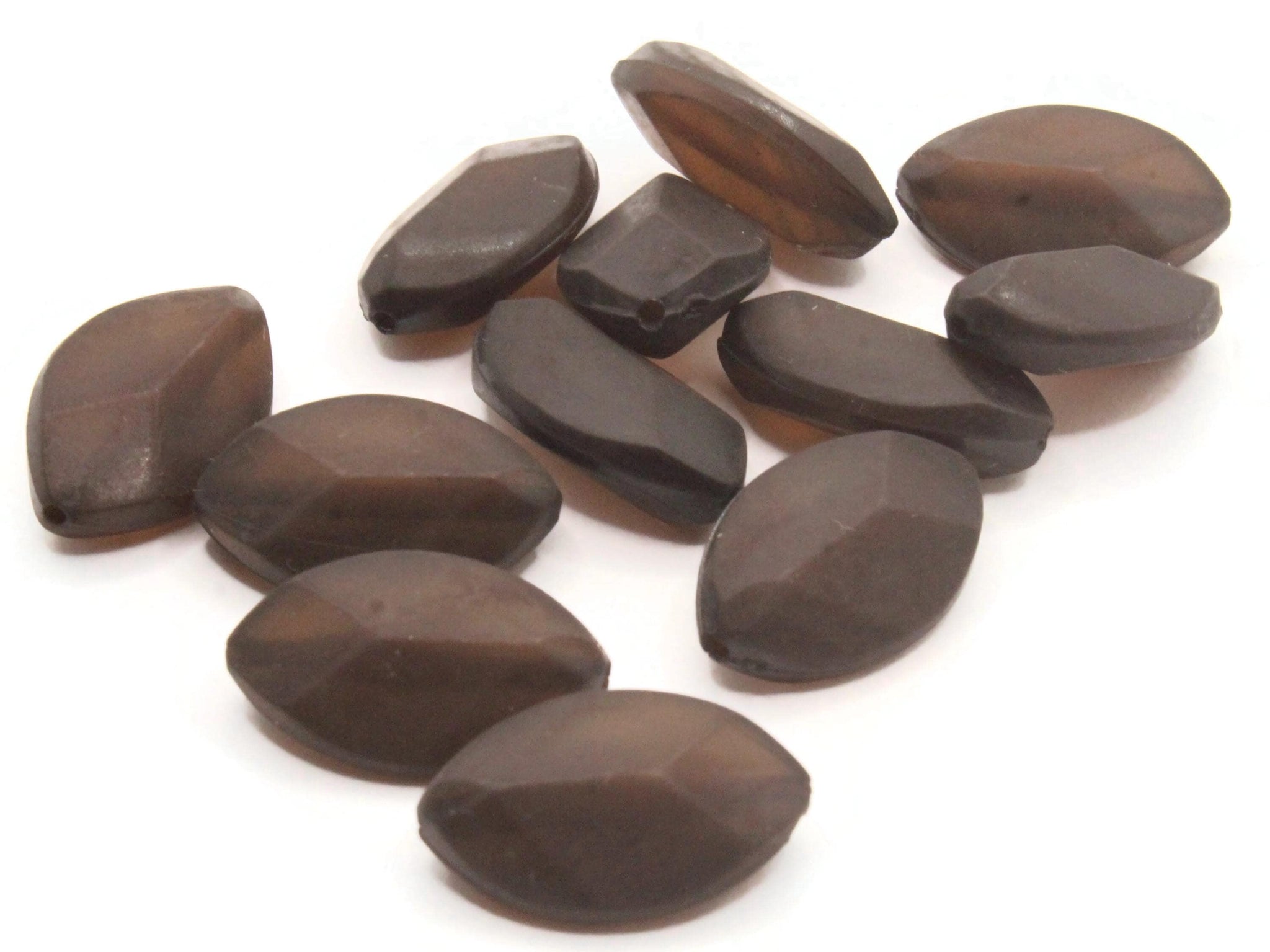 30 21mm Faceted Marquise Frosted Dark Brown Lucite Plastic Beads