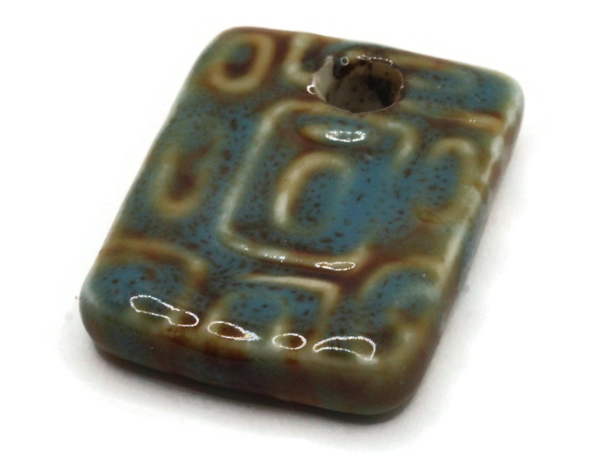 34mm Green, Brown and Blue Porcelain Ceramic Rectangle Pendant Patterned Large Hole Bead
