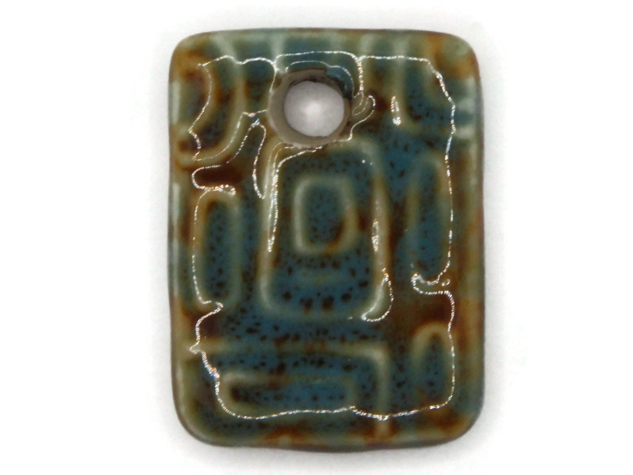Pretty Green, brown and Blue Porcelain Rectangle Pendant. This has a pretty pattern of squares and ovals on each side.