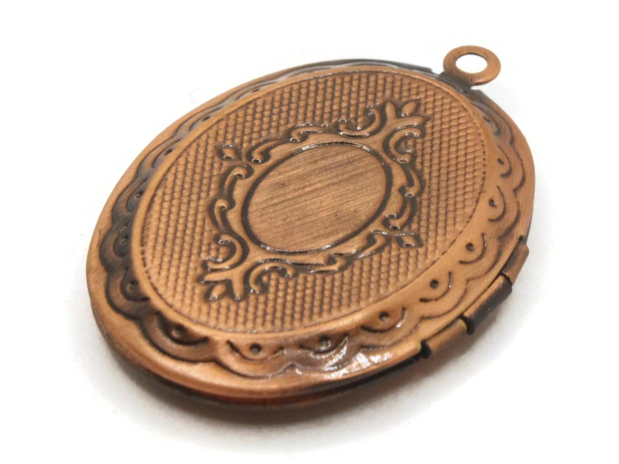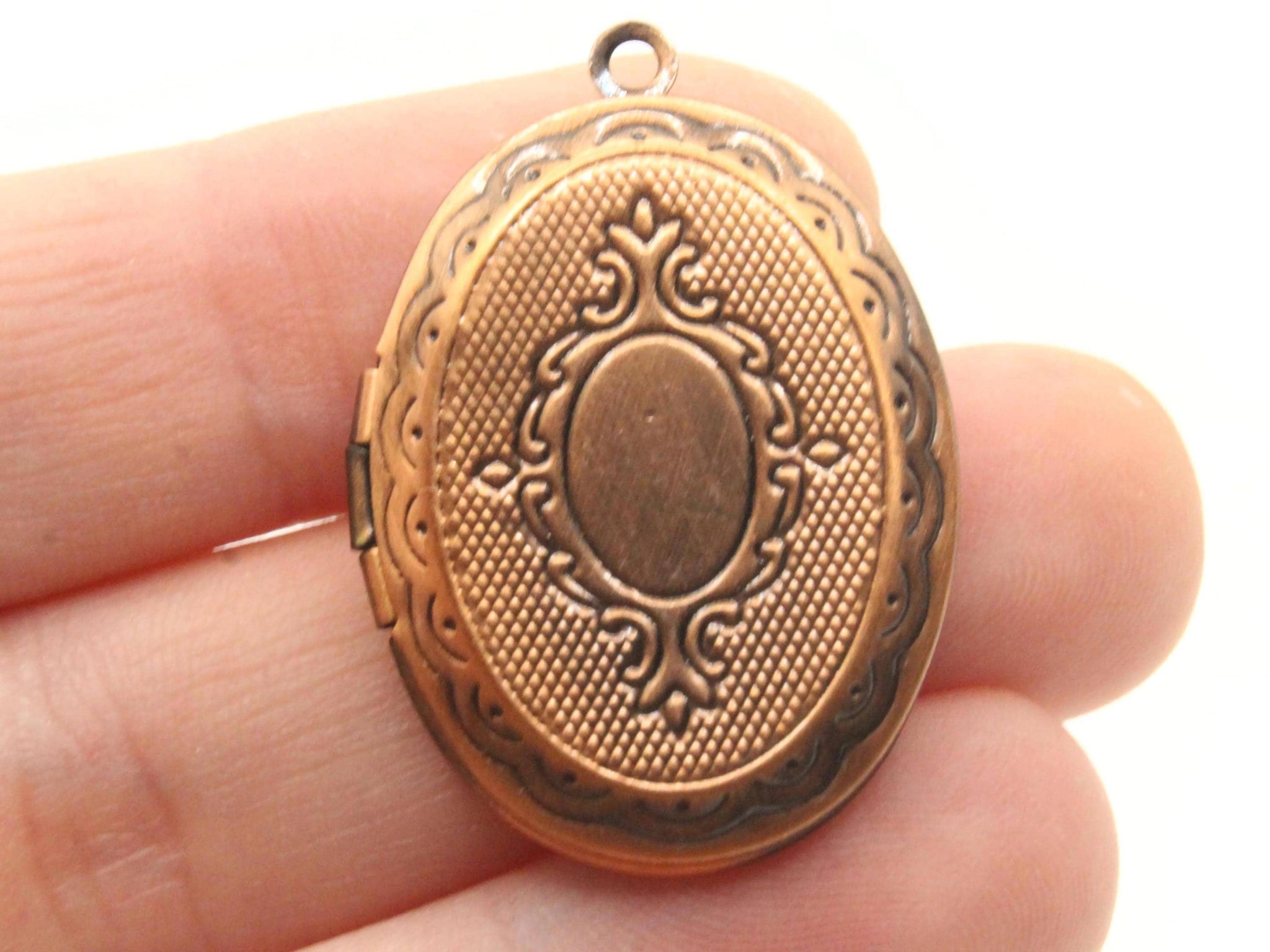 34mm Decorative Oval Copper Tone Brass Locket Charm