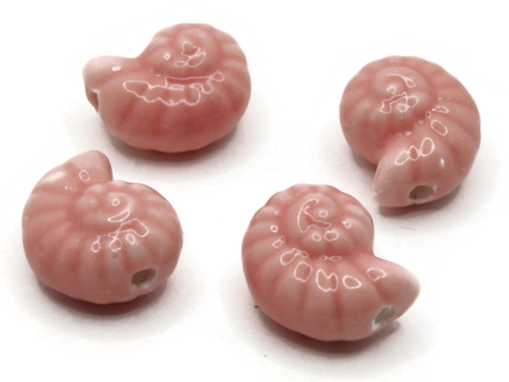 4 14mm Spiral Shell Light Red Porcelain Glass Beads