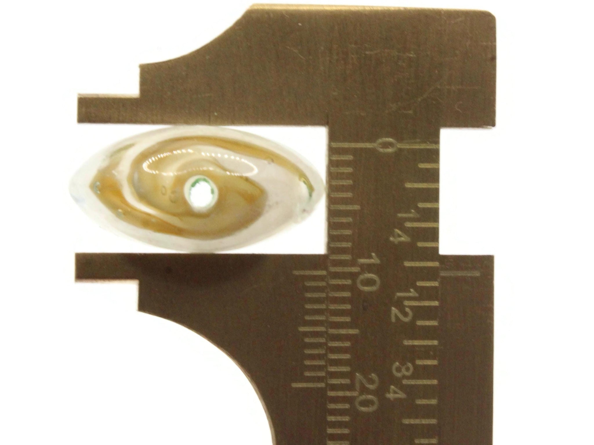 About 20mm long, 10mm thick These are handmade glass beads so size and shape may vary slightly.