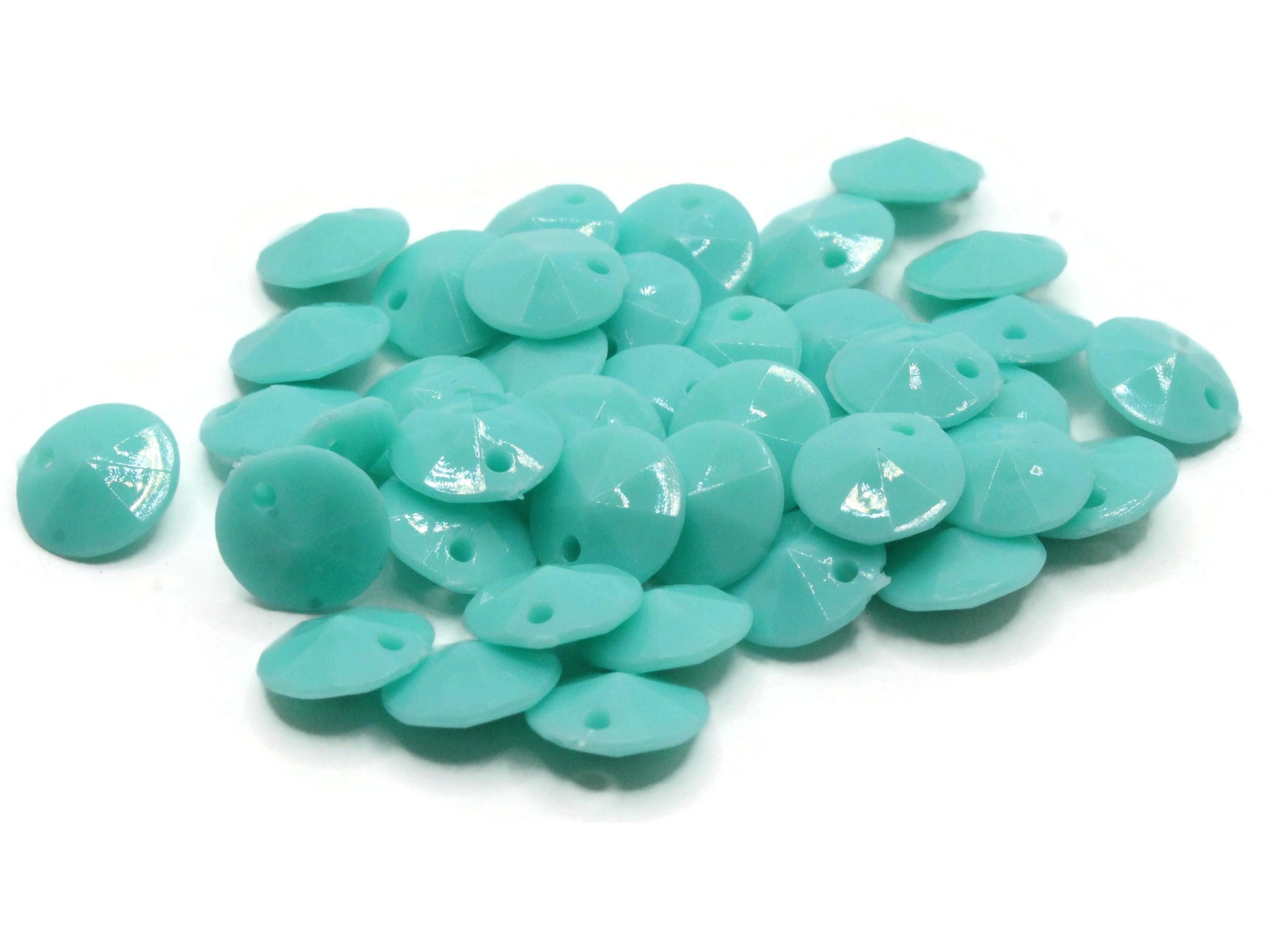 40 7.5mm Blue Vintage Plastic Faceted Coin Beads